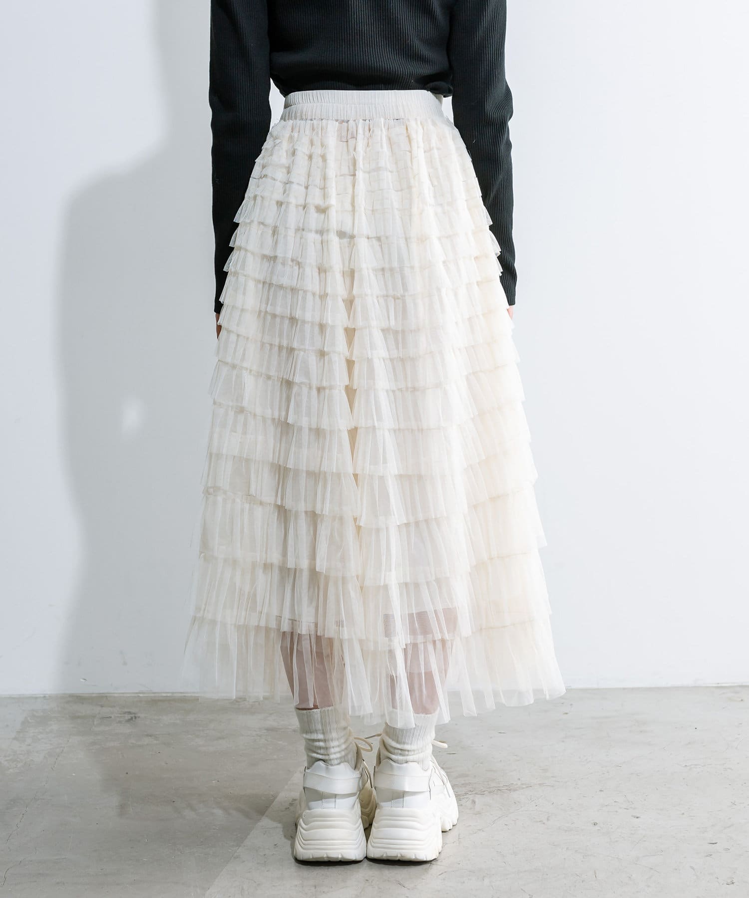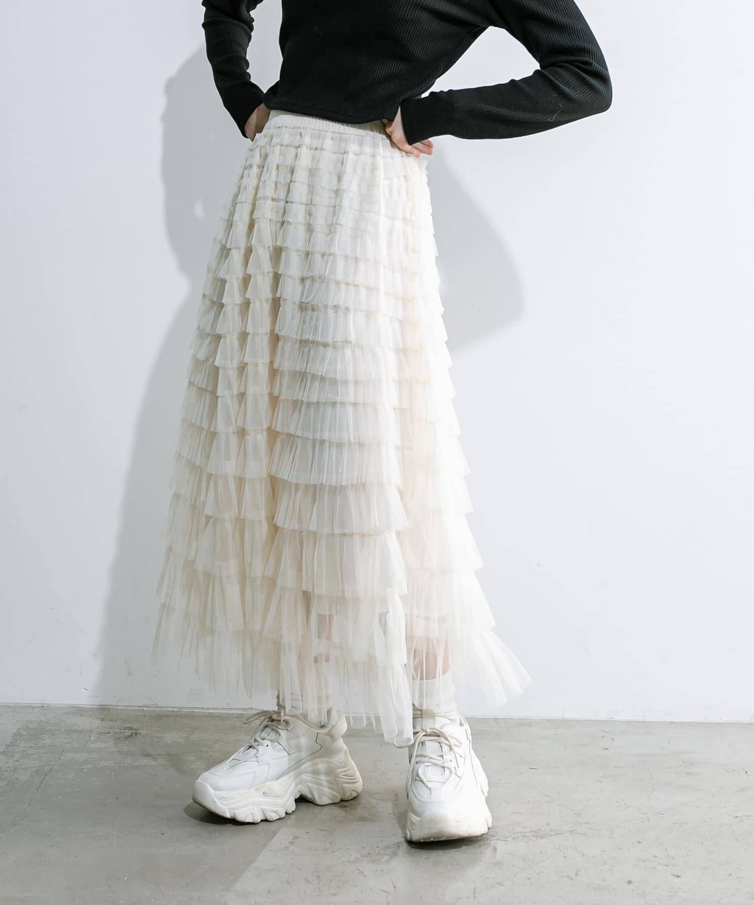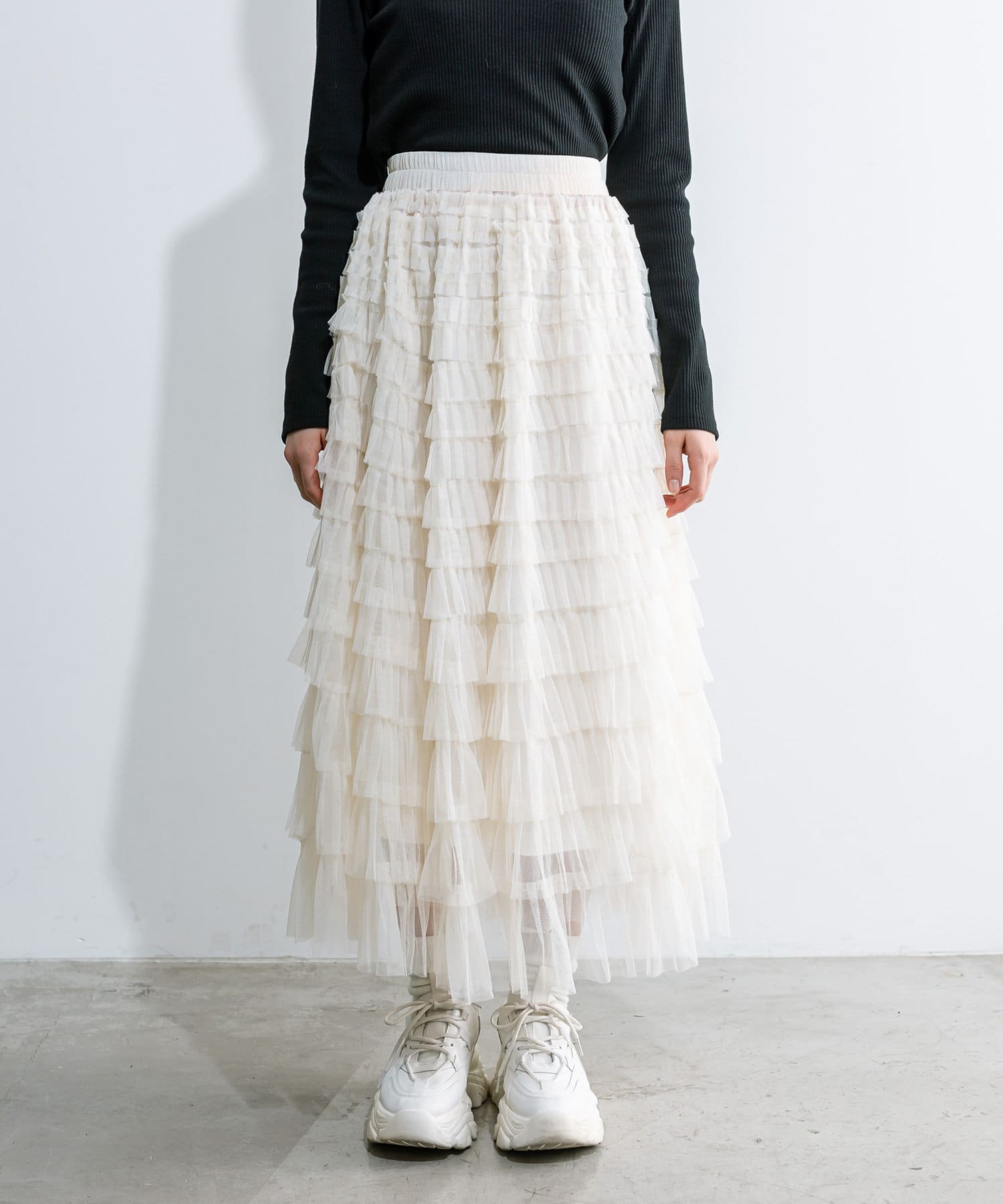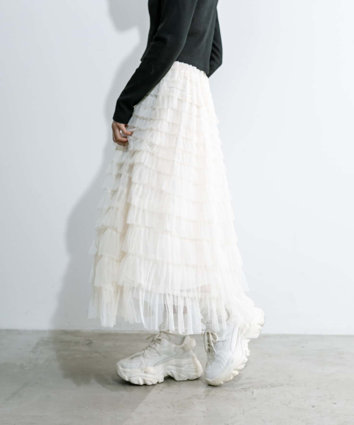 チュールフリルティアードスカート