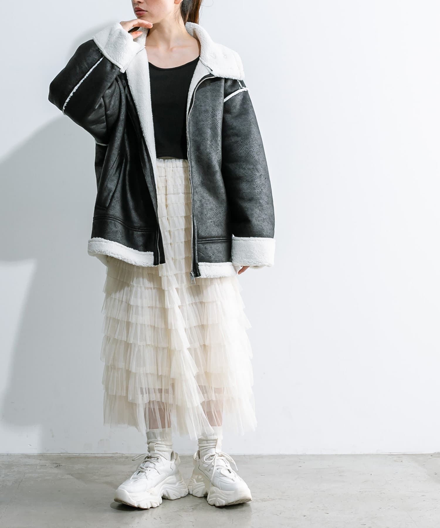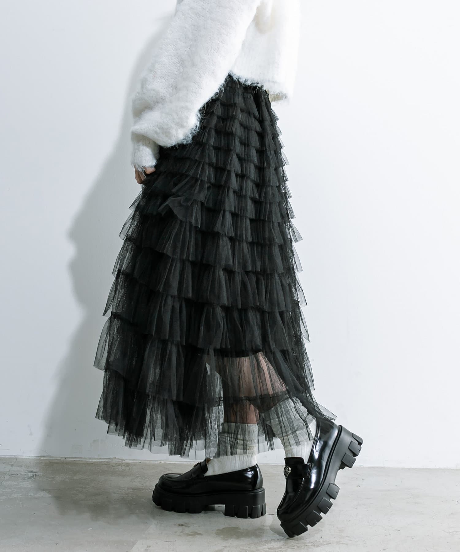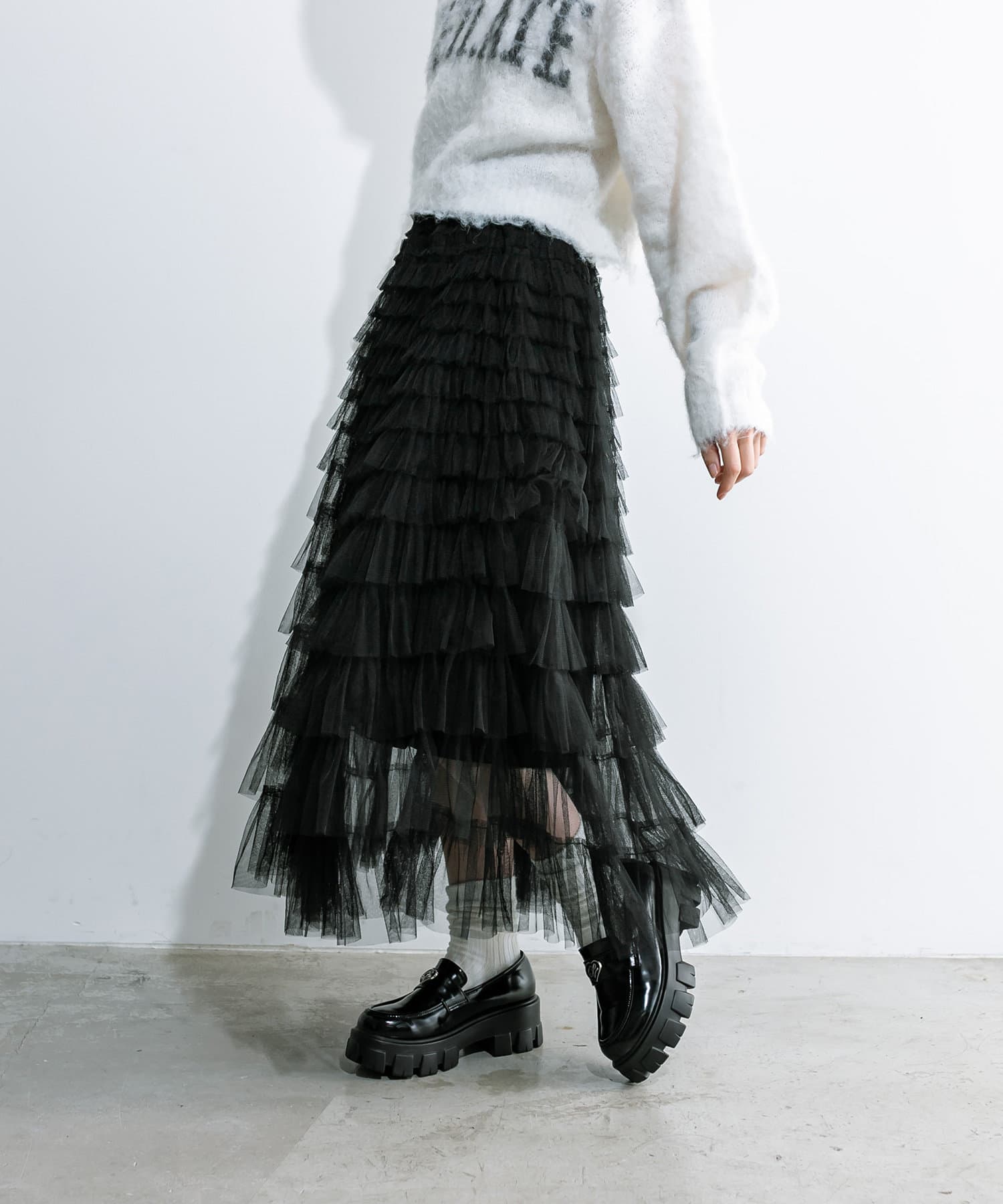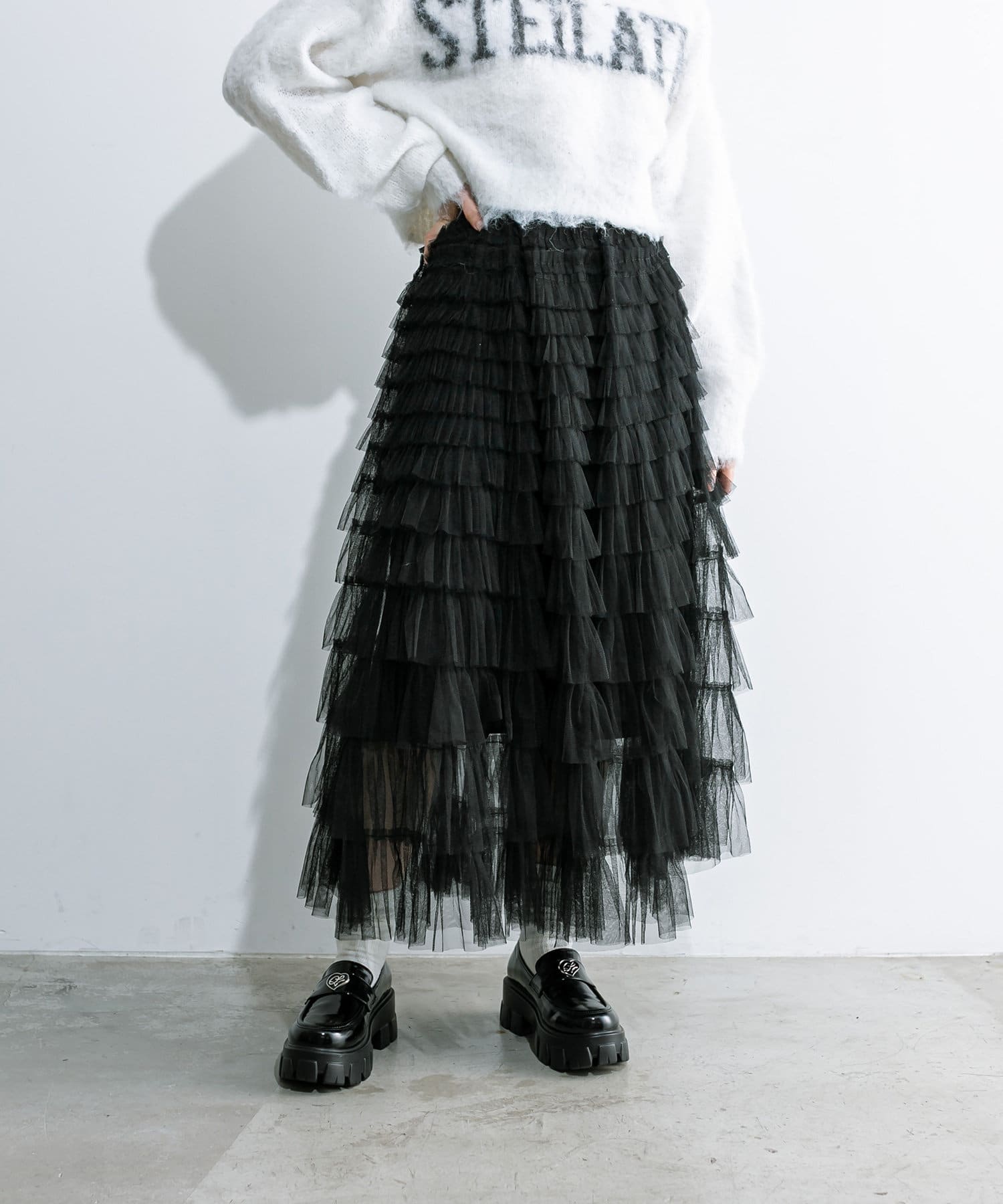 チュールフリルティアードスカート