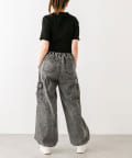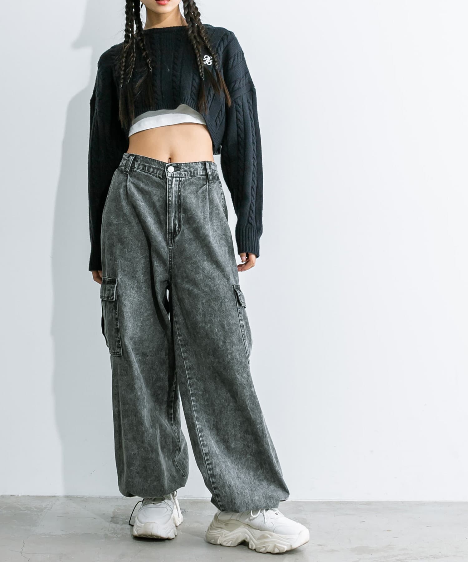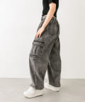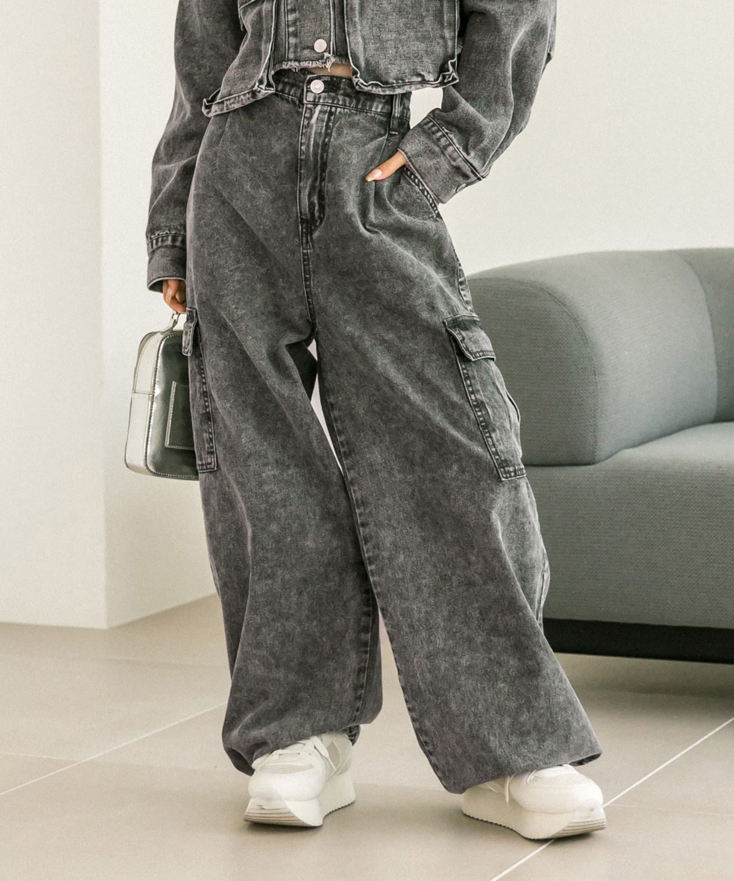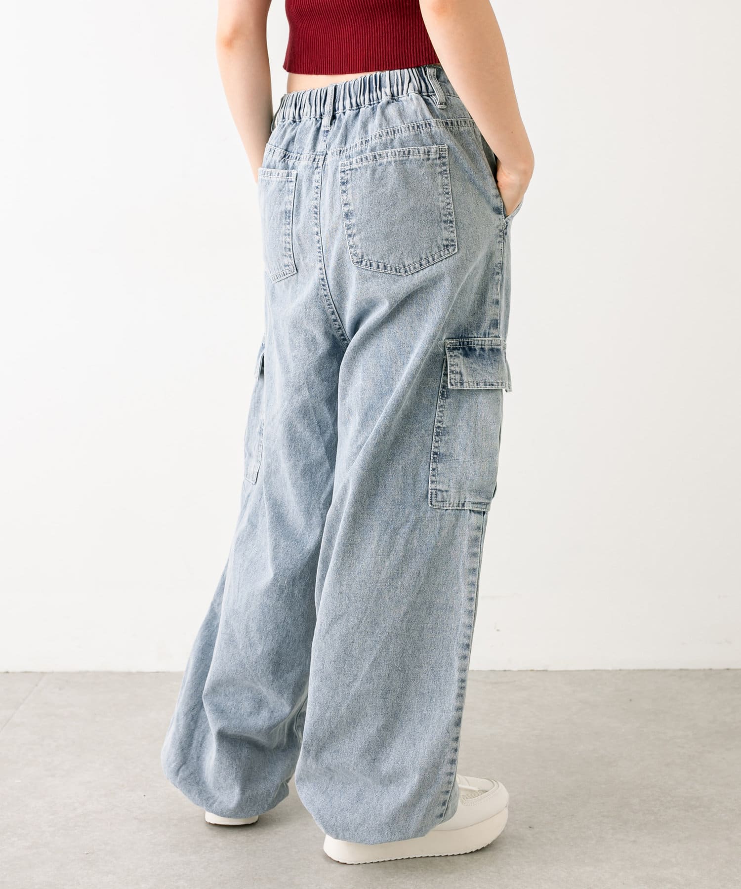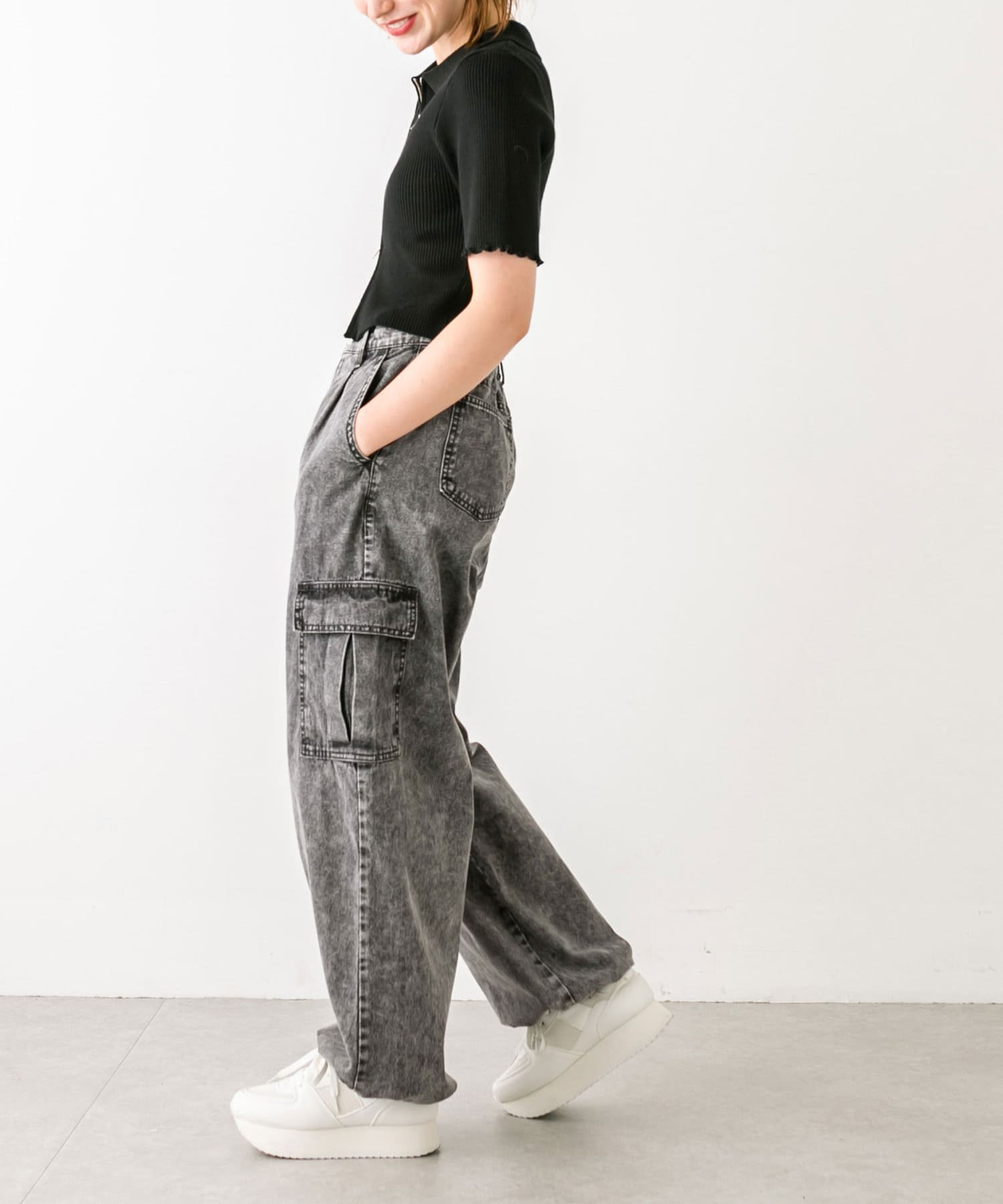 ・デニムのケミカル加工がお洒落なデザインのカーゴパンツ。