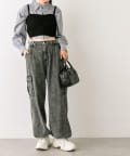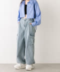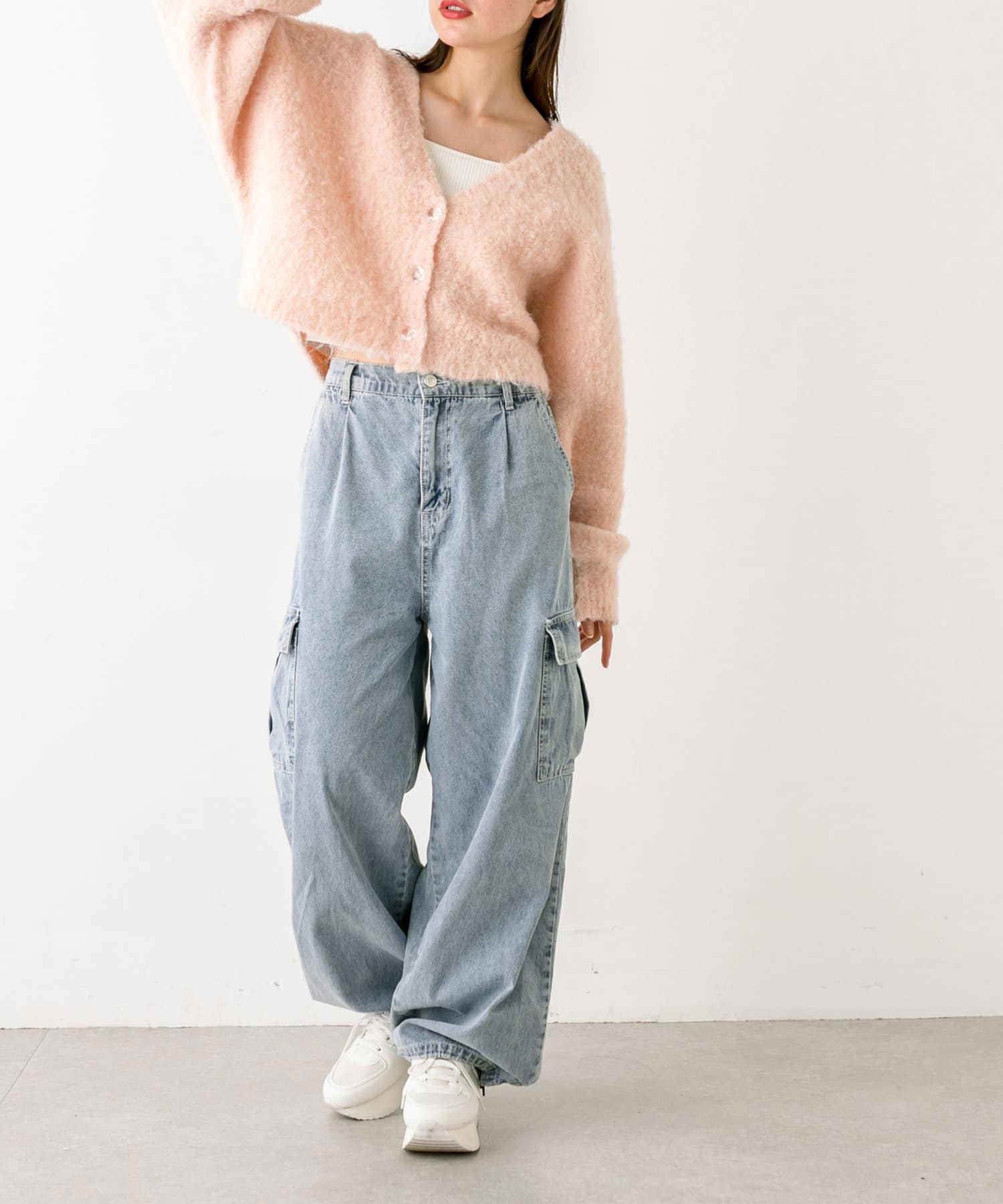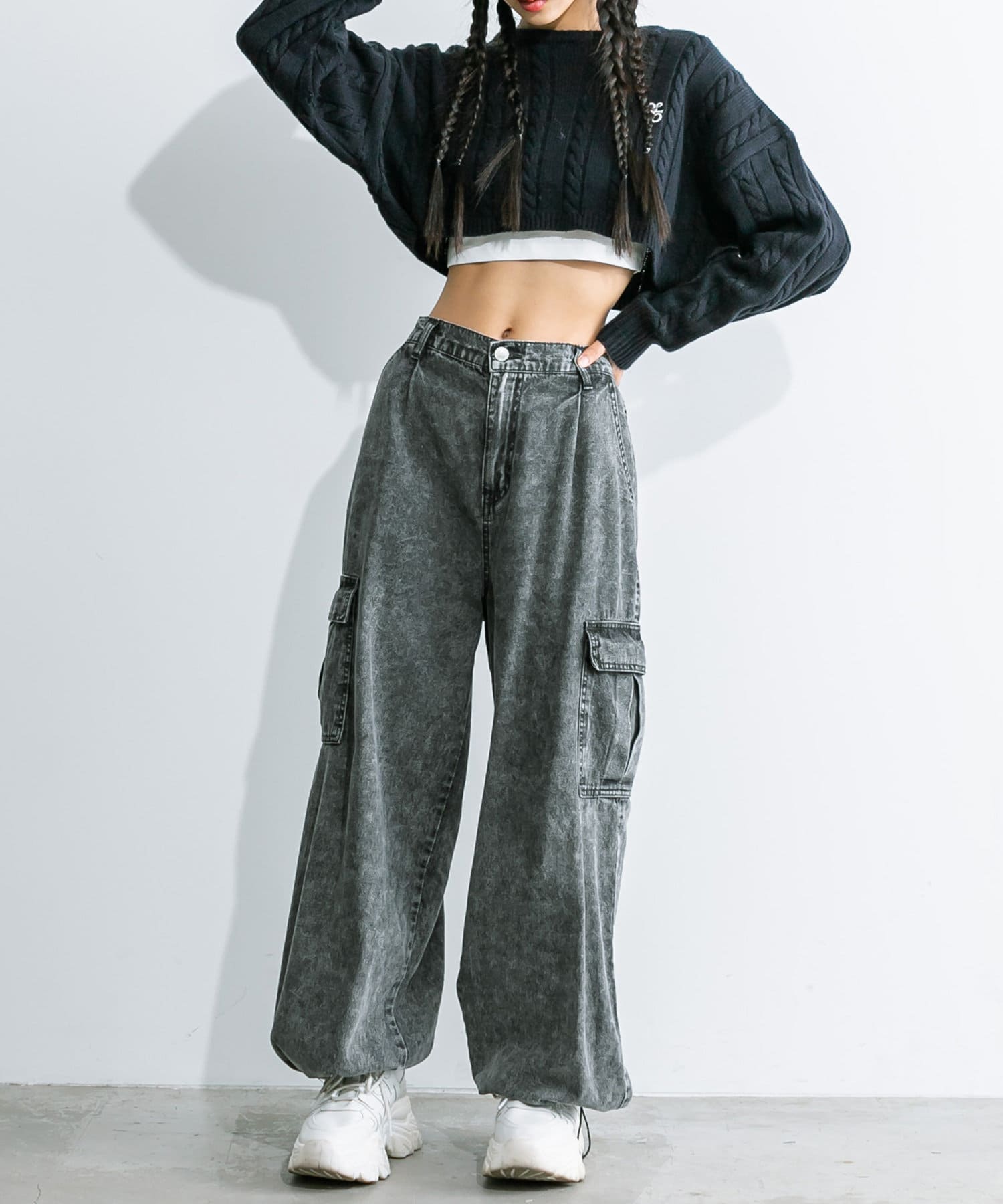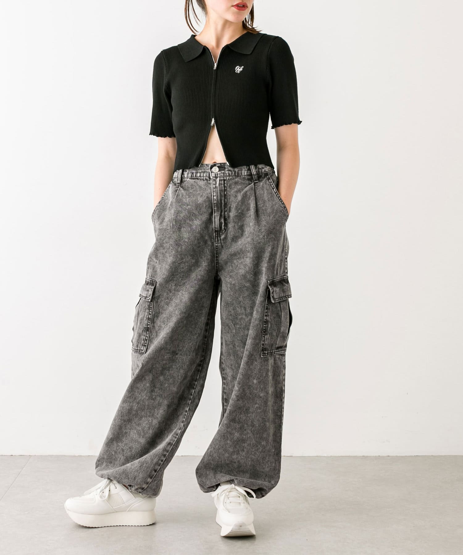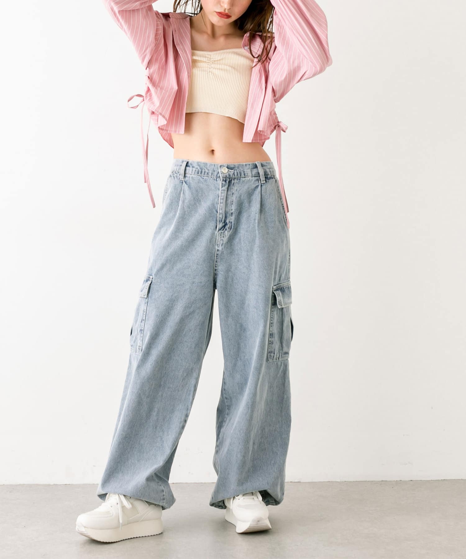 ・デニムのケミカル加工がお洒落なデザインのカーゴパンツ。