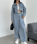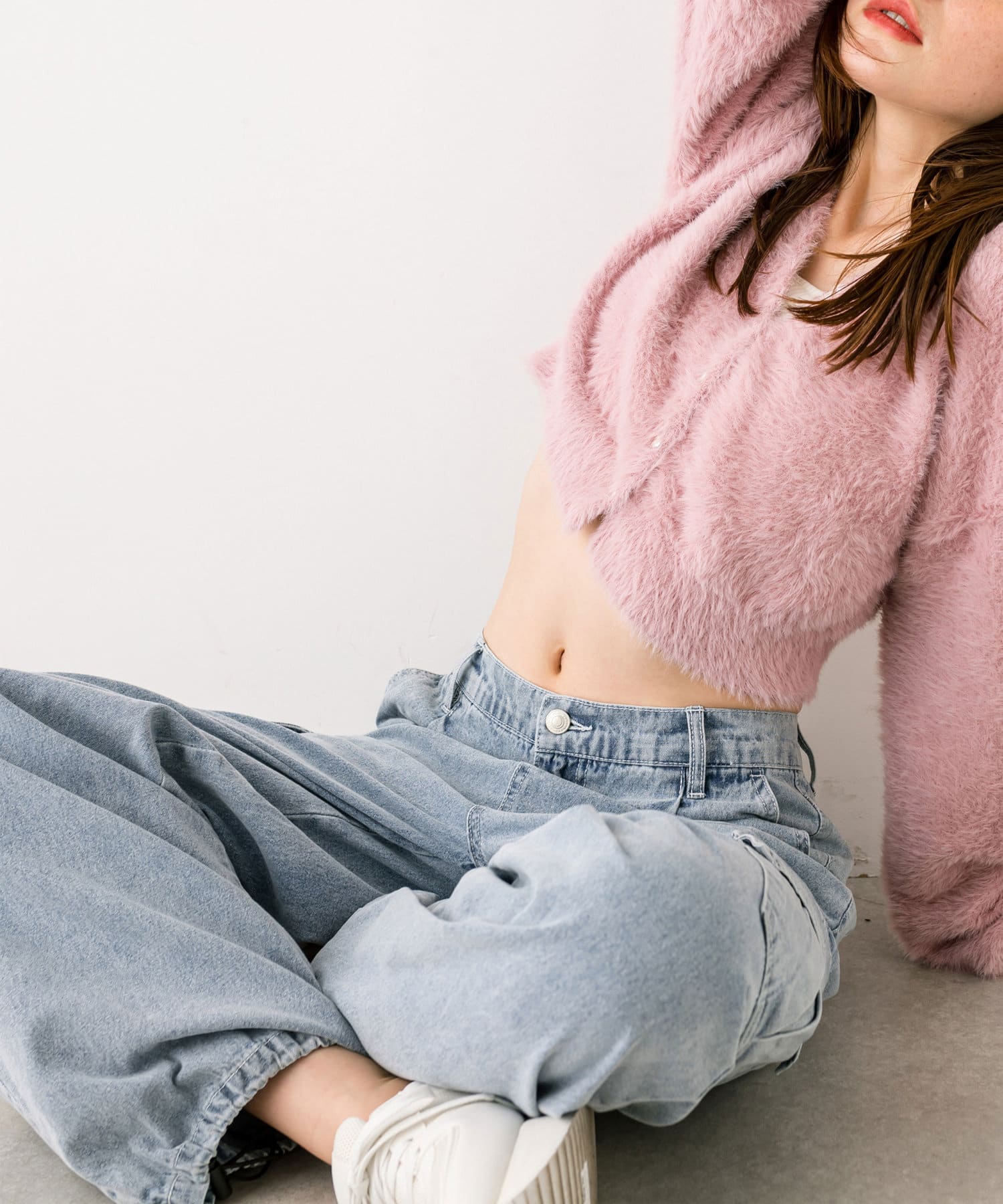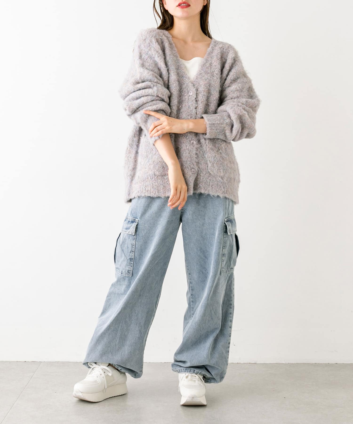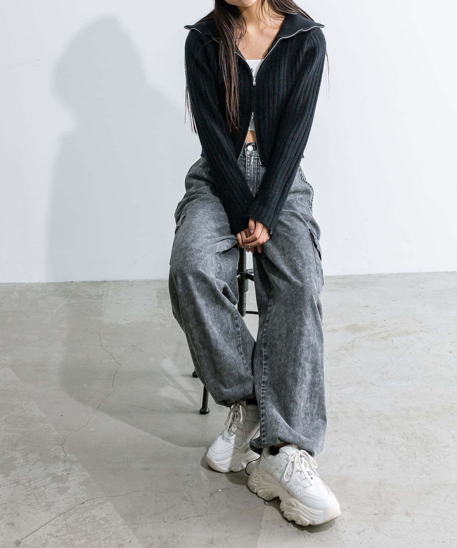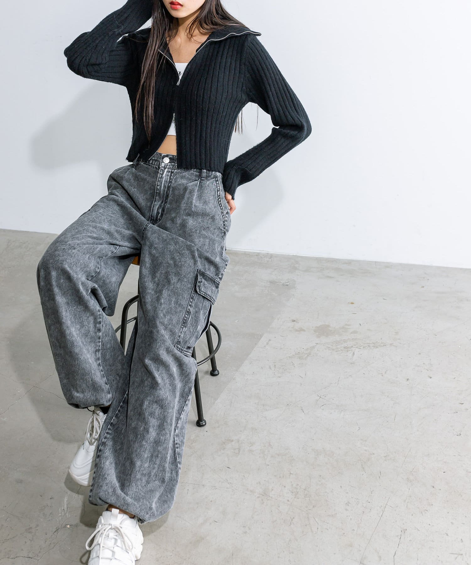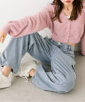 ・デニムのケミカル加工がお洒落なデザインのカーゴパンツ。