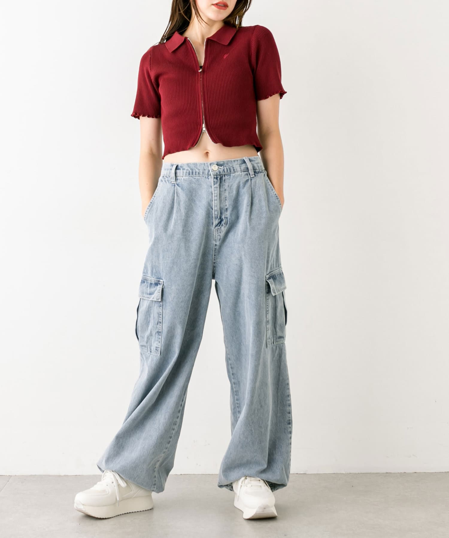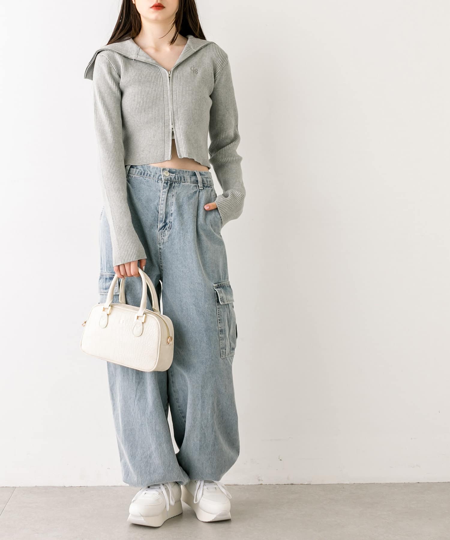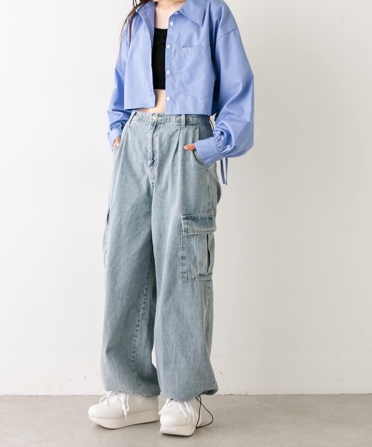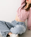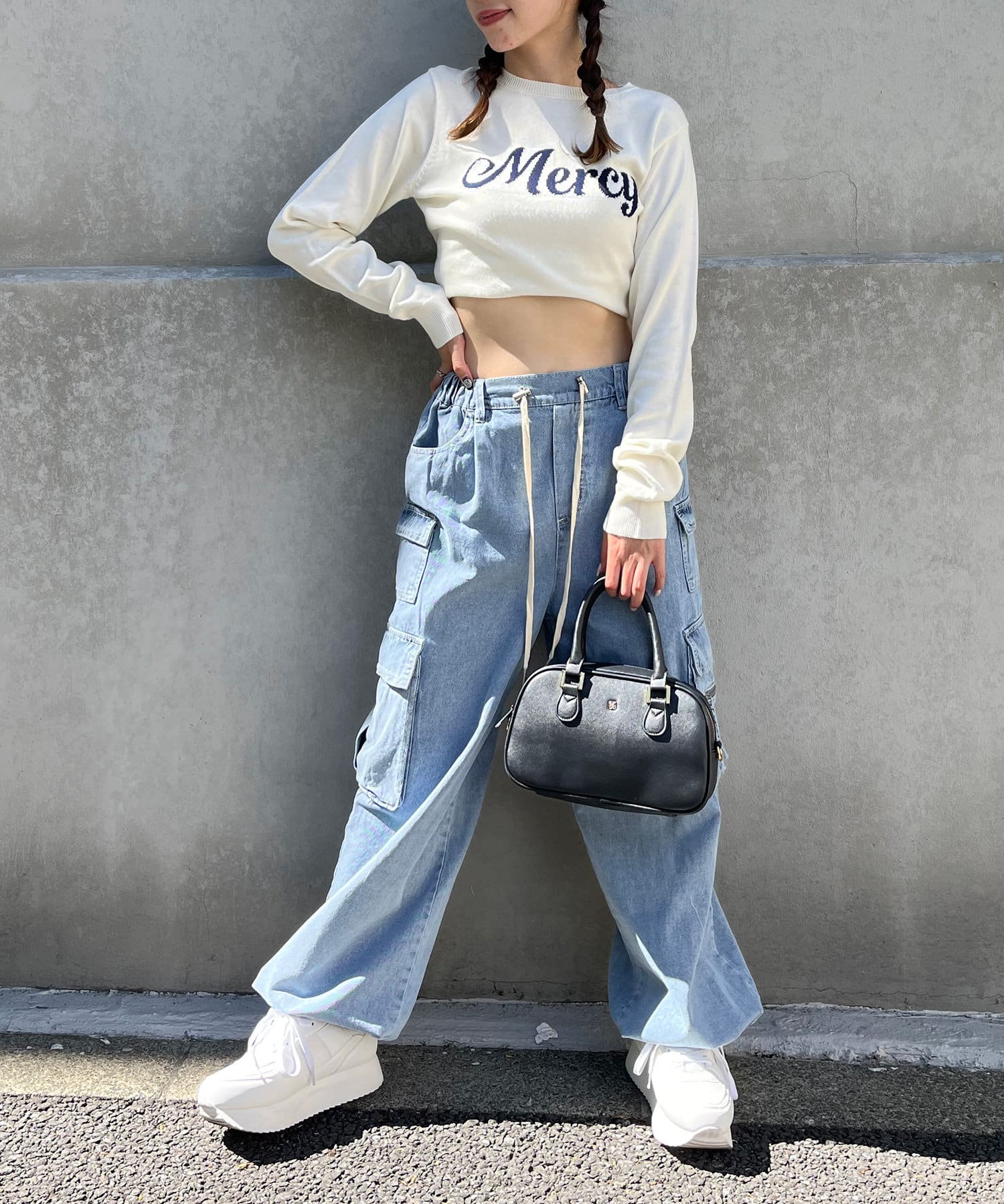 ・クロップド丈のトップスで合わせると今っぽいバランスに。