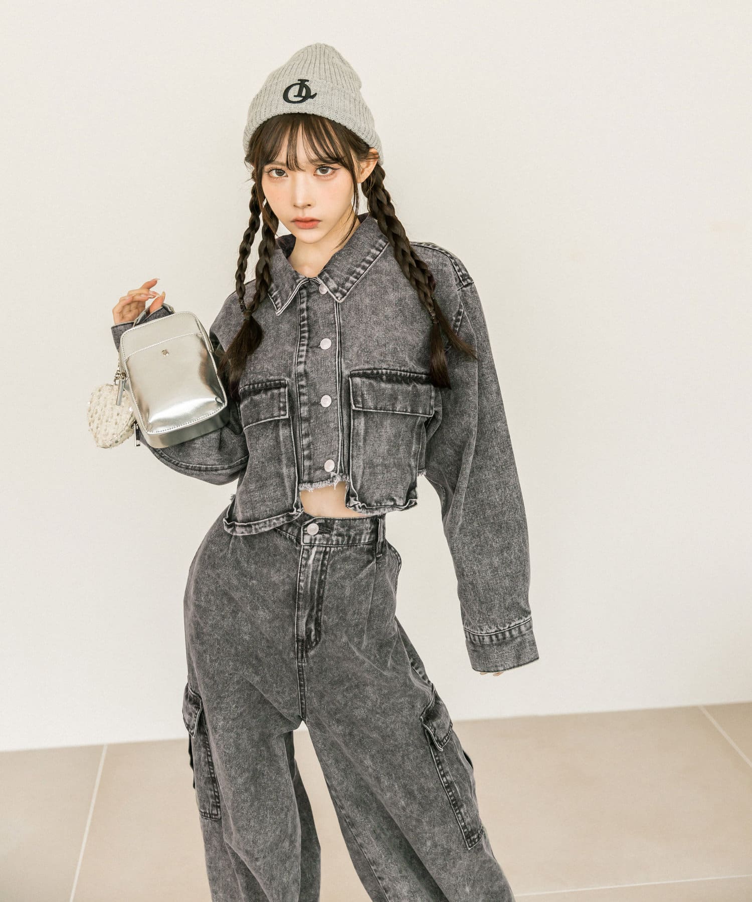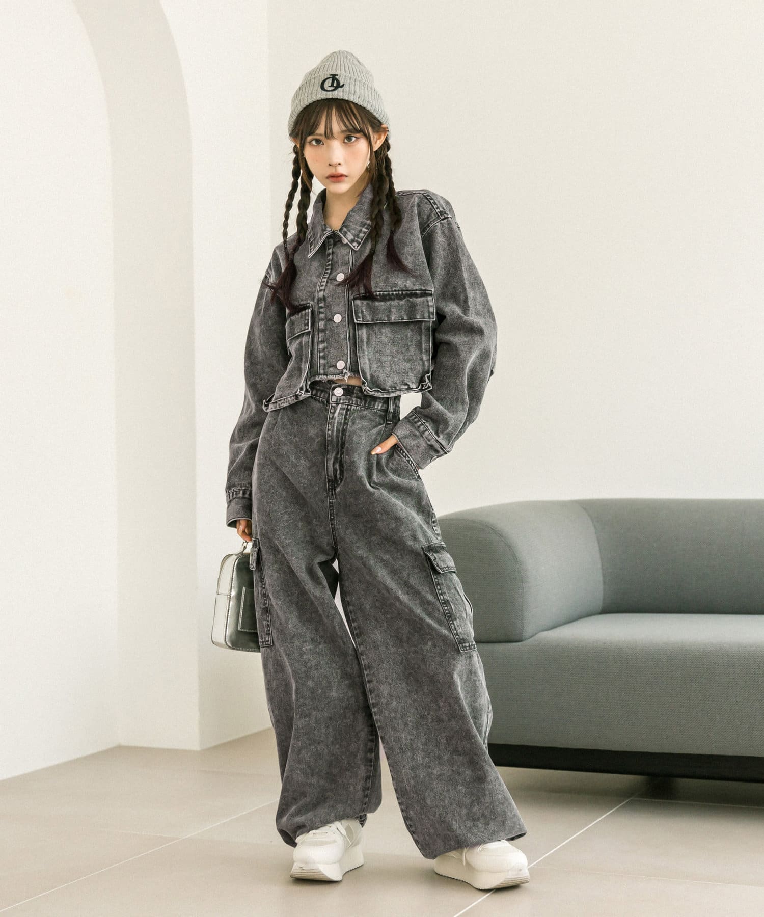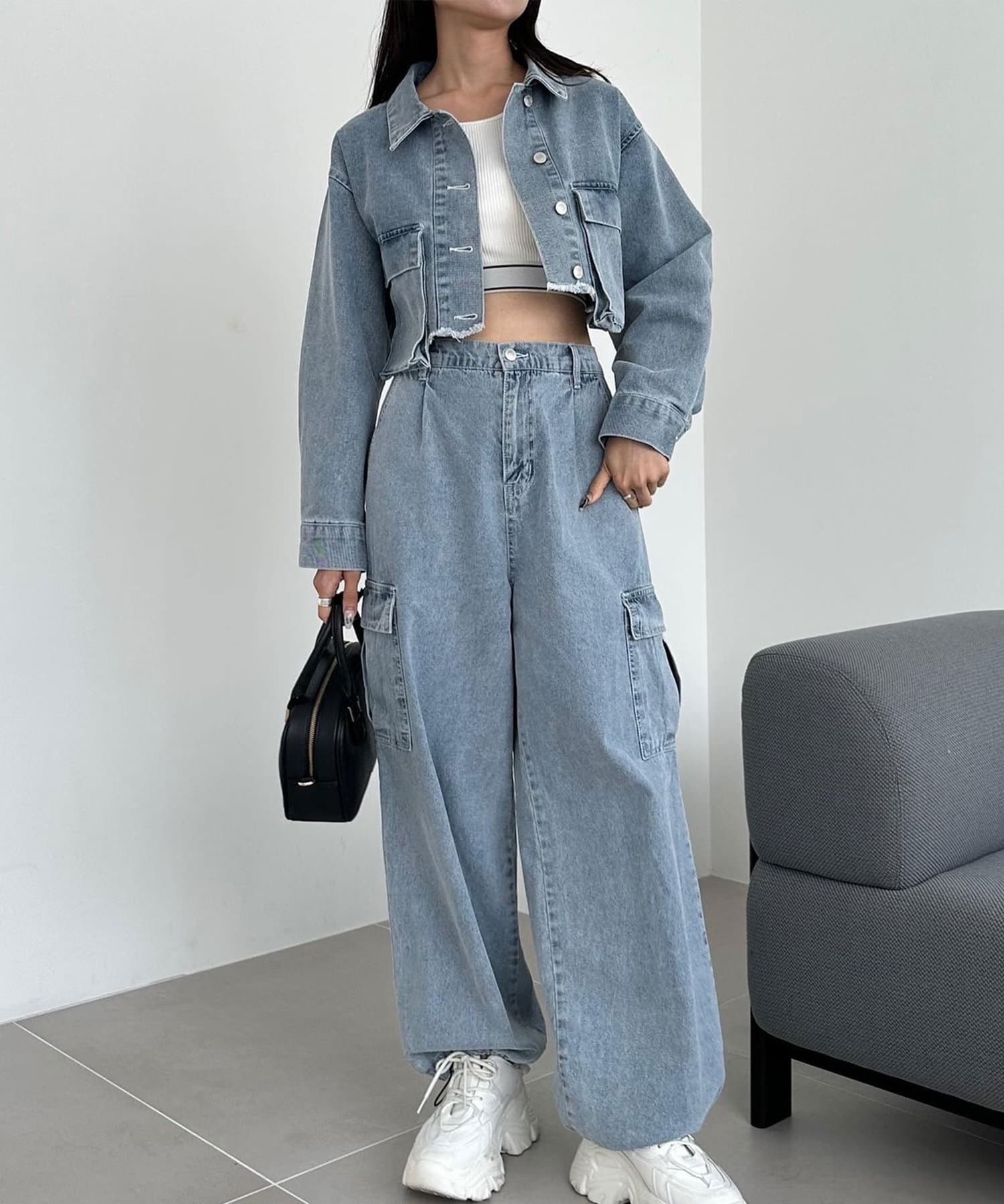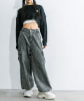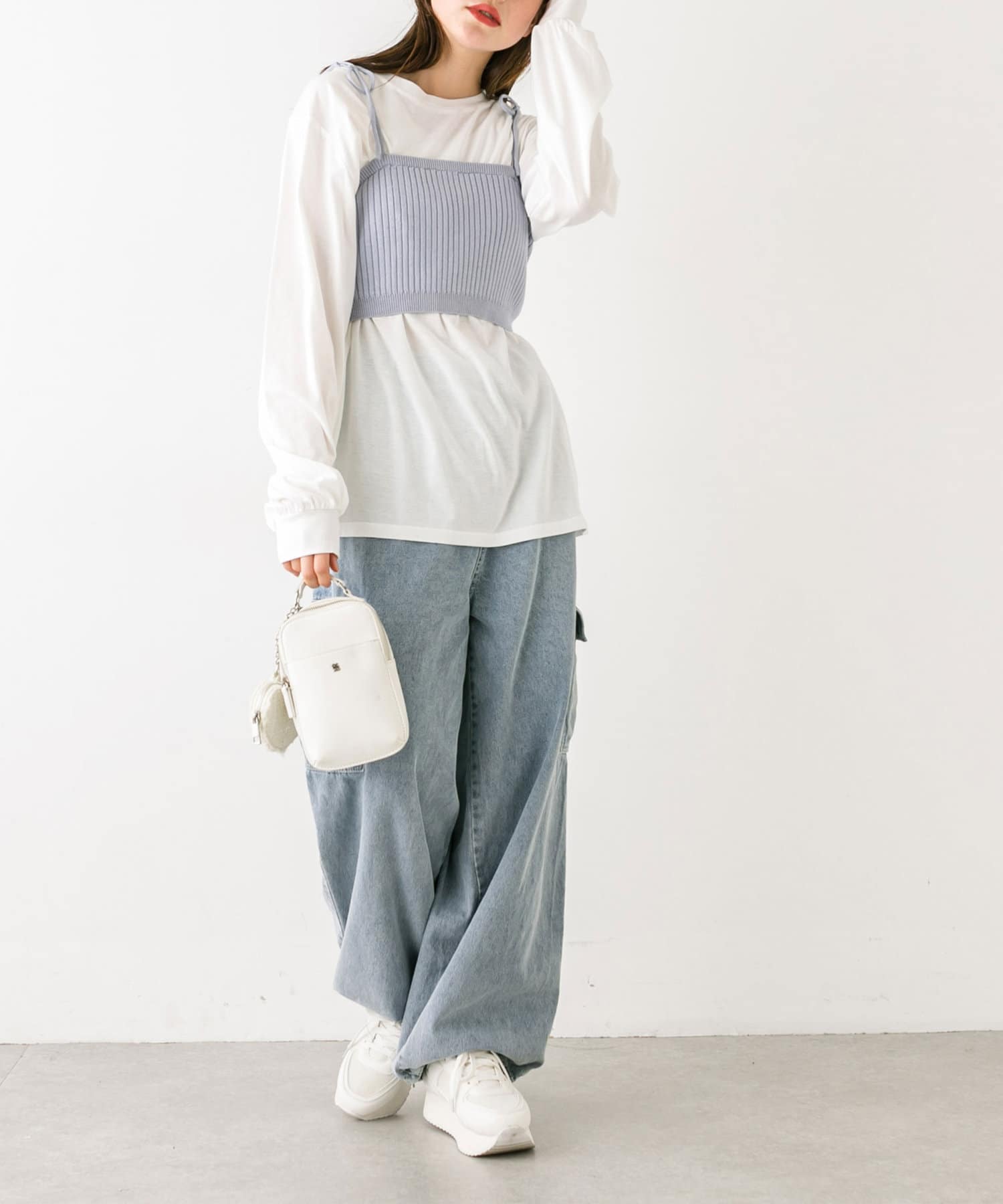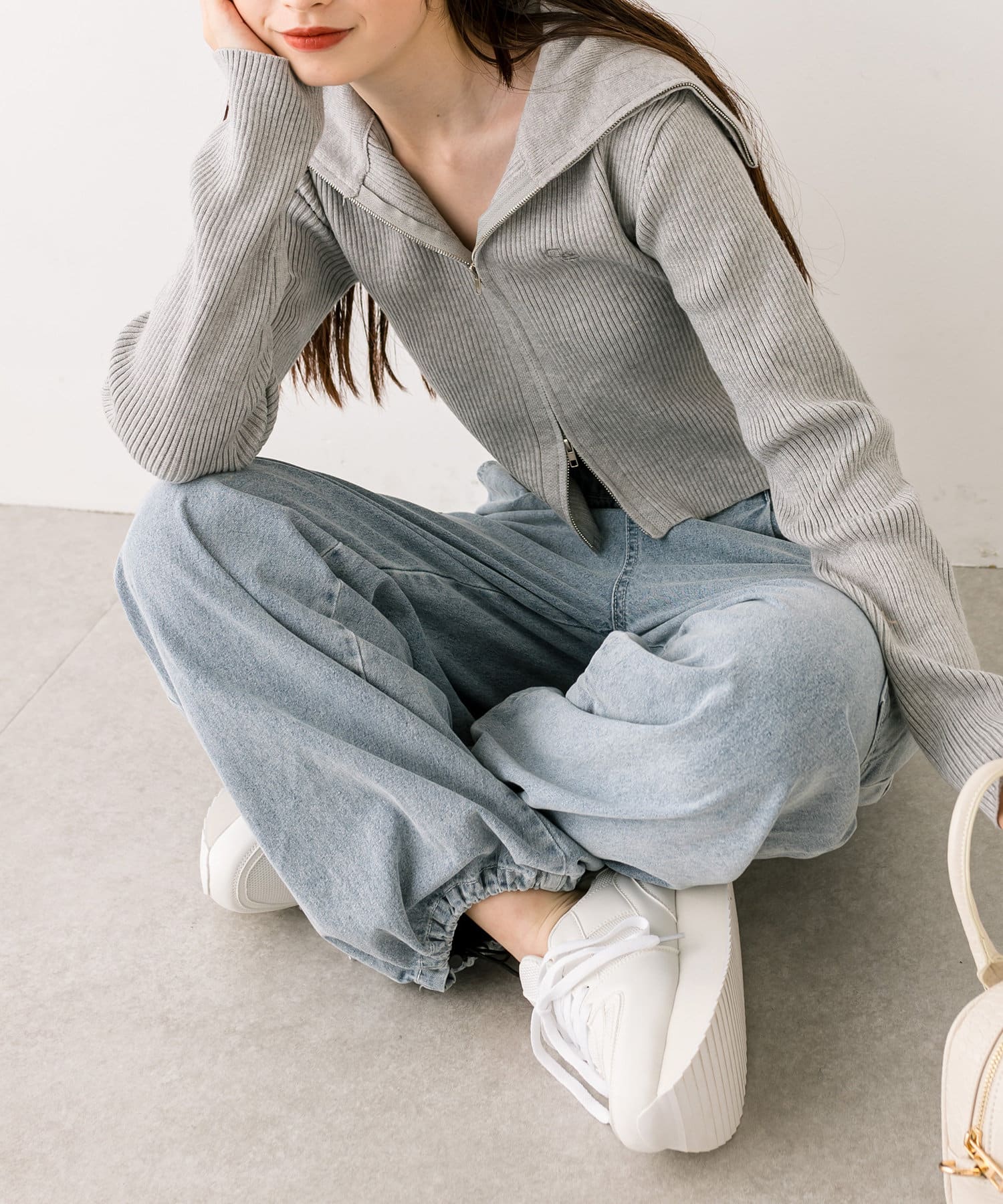 ・クロップド丈のトップスで合わせると今っぽいバランスに。