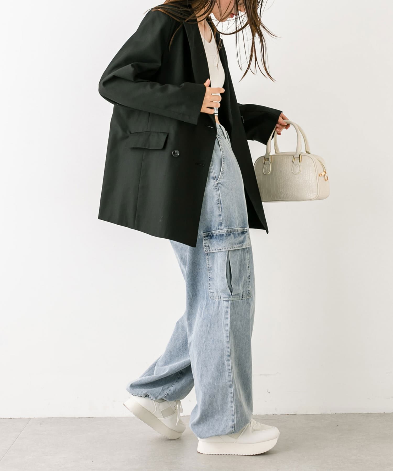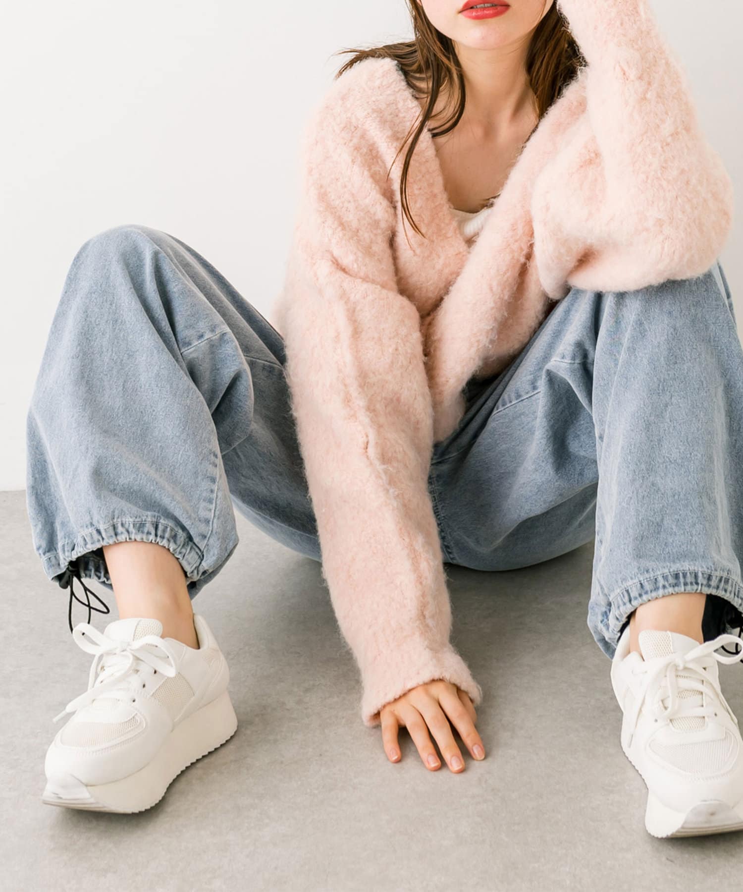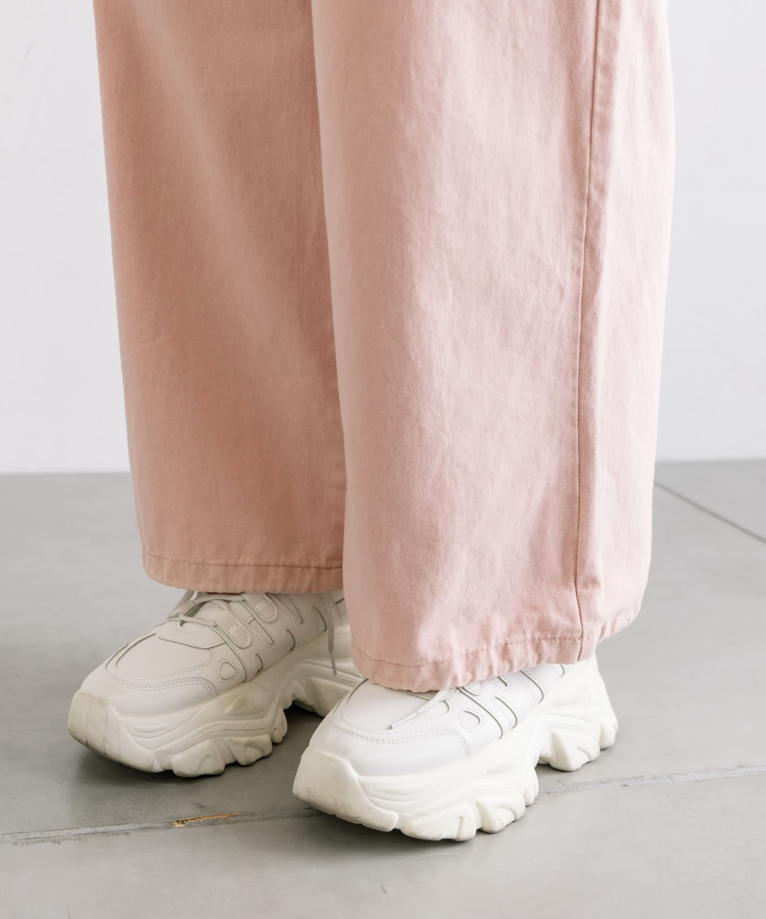 ・厚底スニーカーなどカジュアルな足元がおすすめ。
