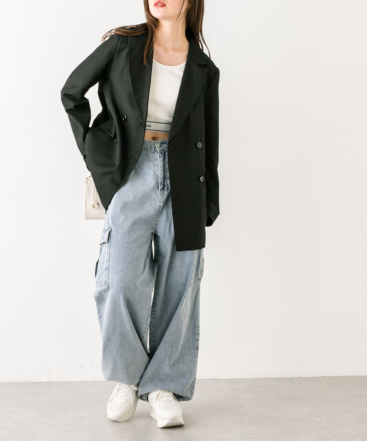 ・ブラトップにテーラードジャケットを羽織ったスタイリングも◎