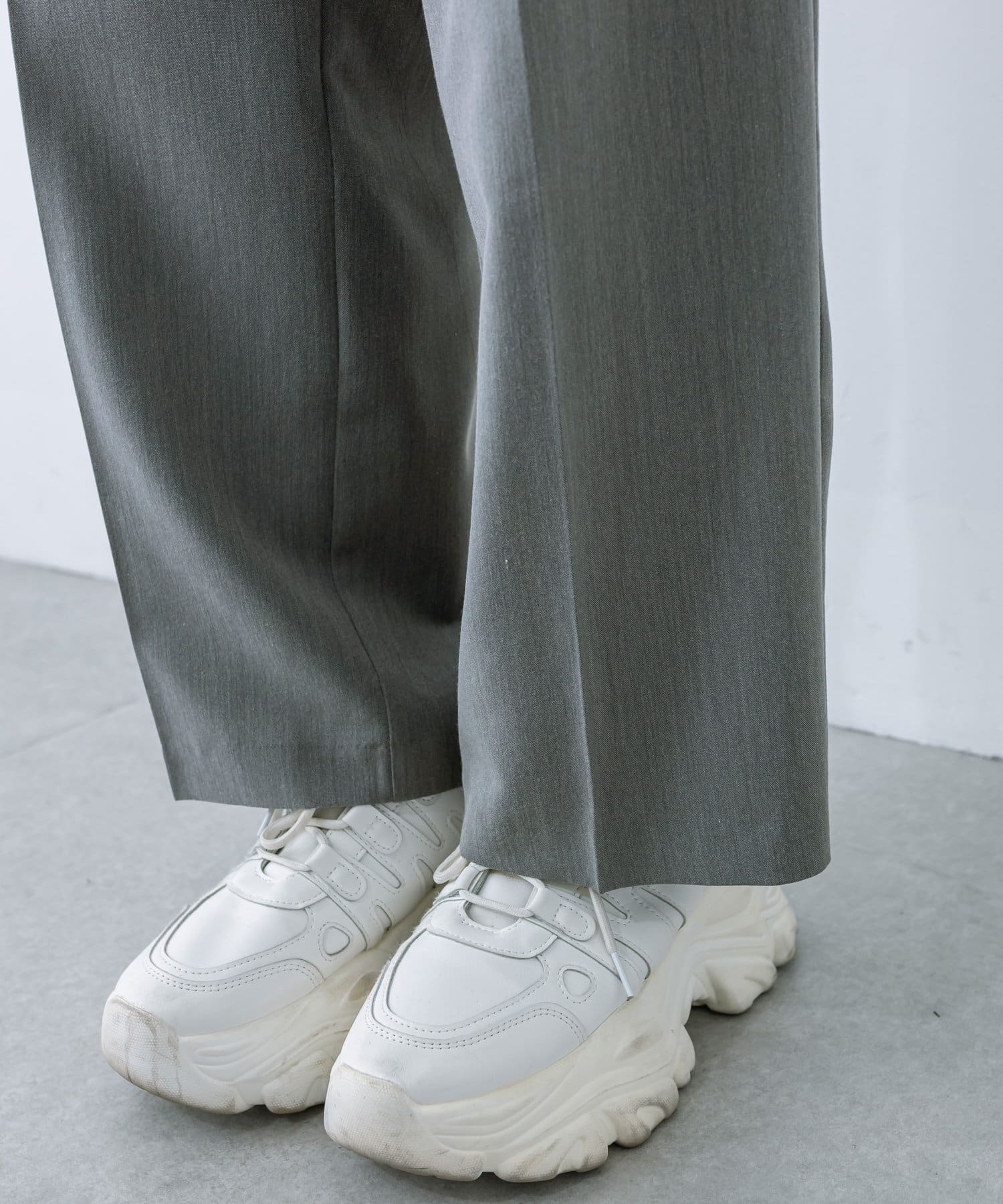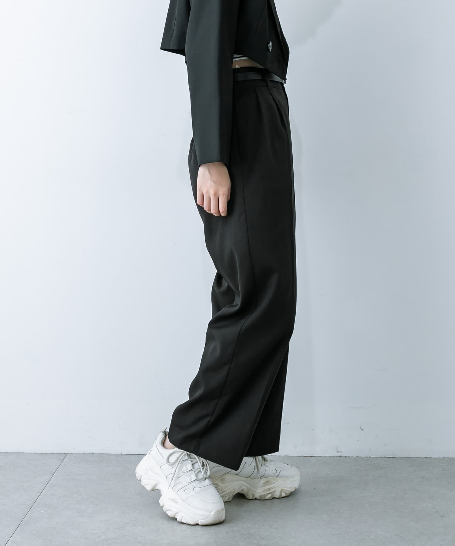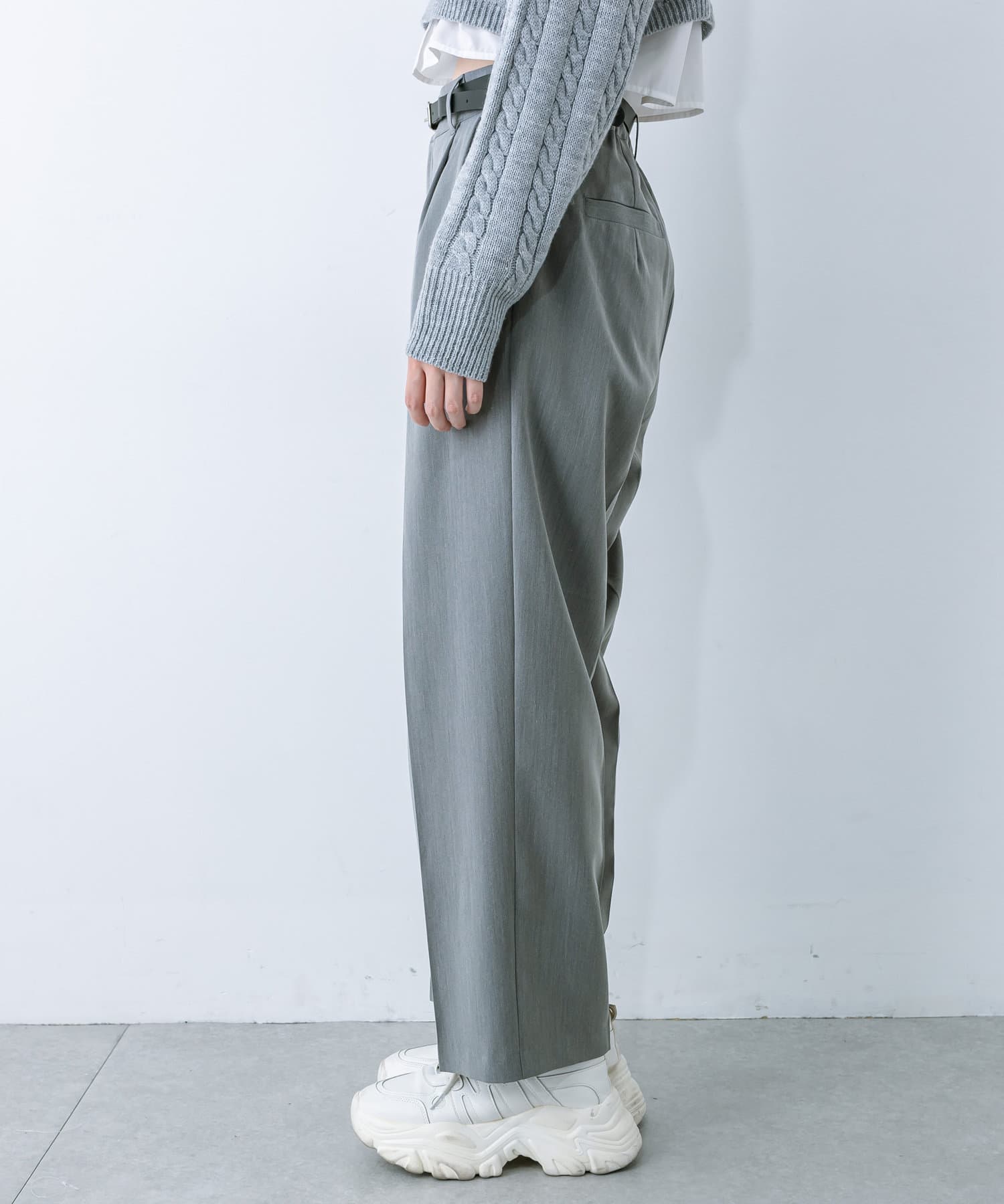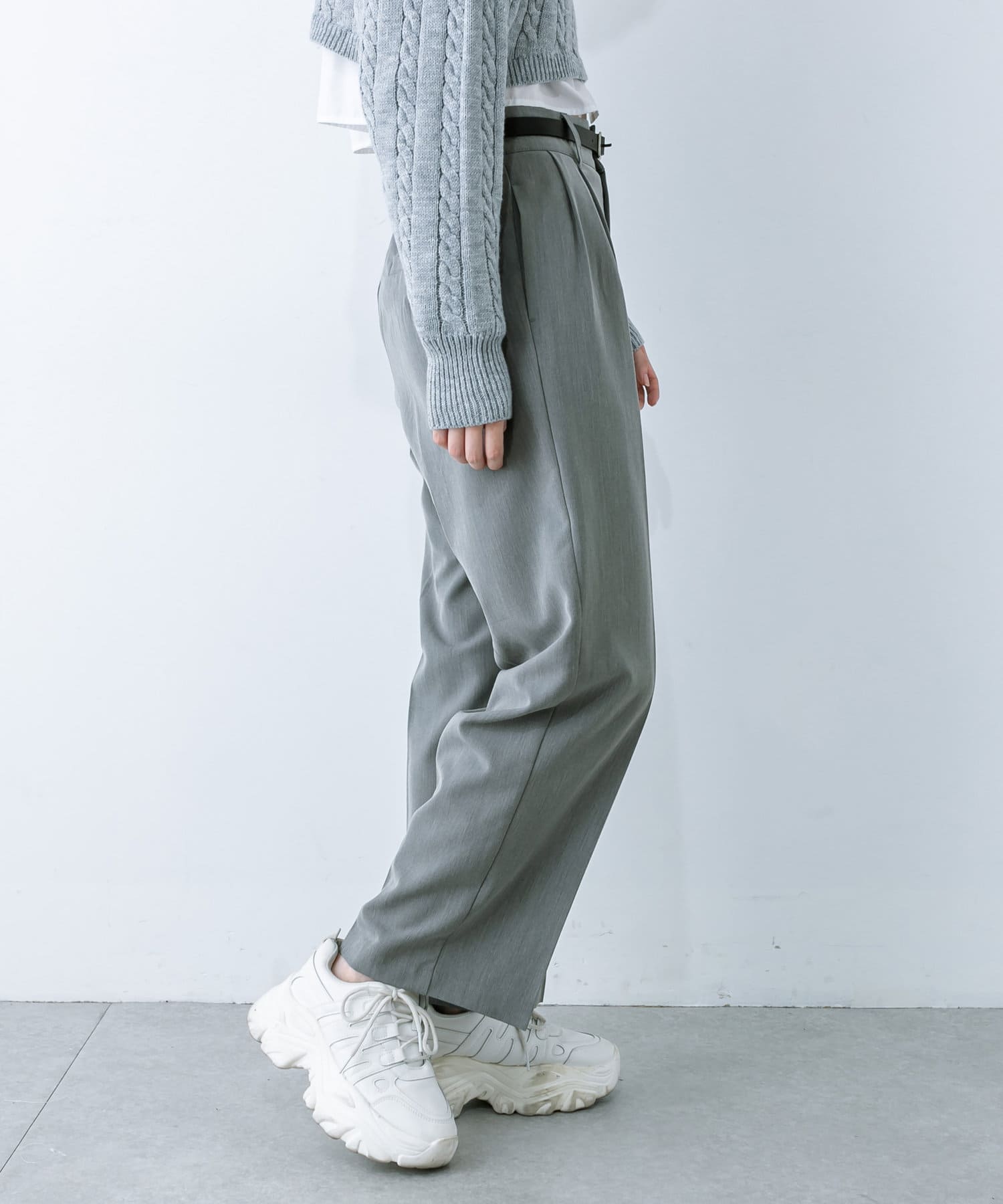 ・ハイウエストで美脚見えを叶えるスラックスパンツ。