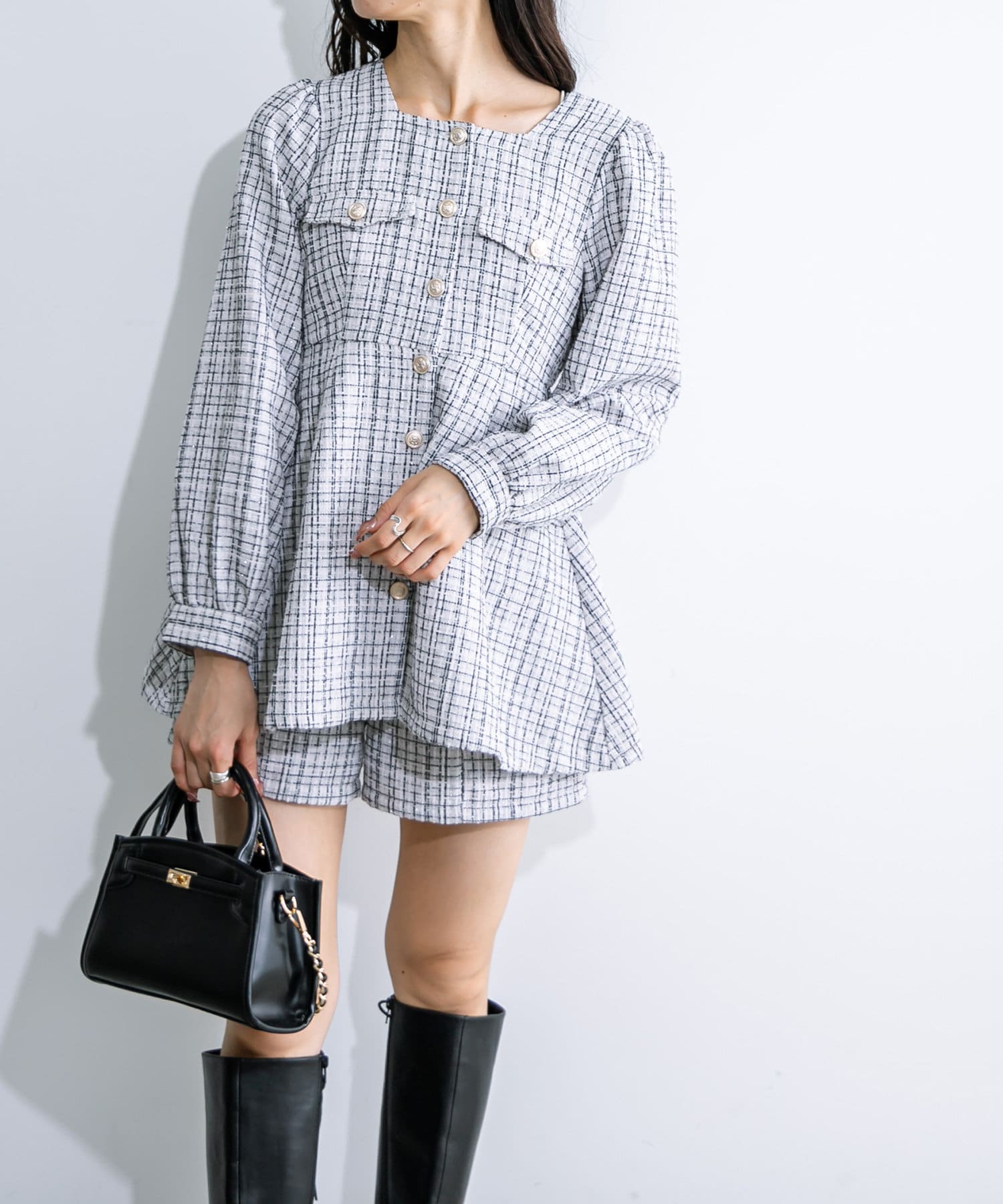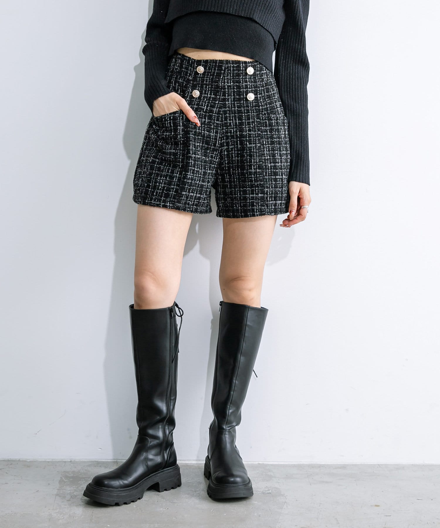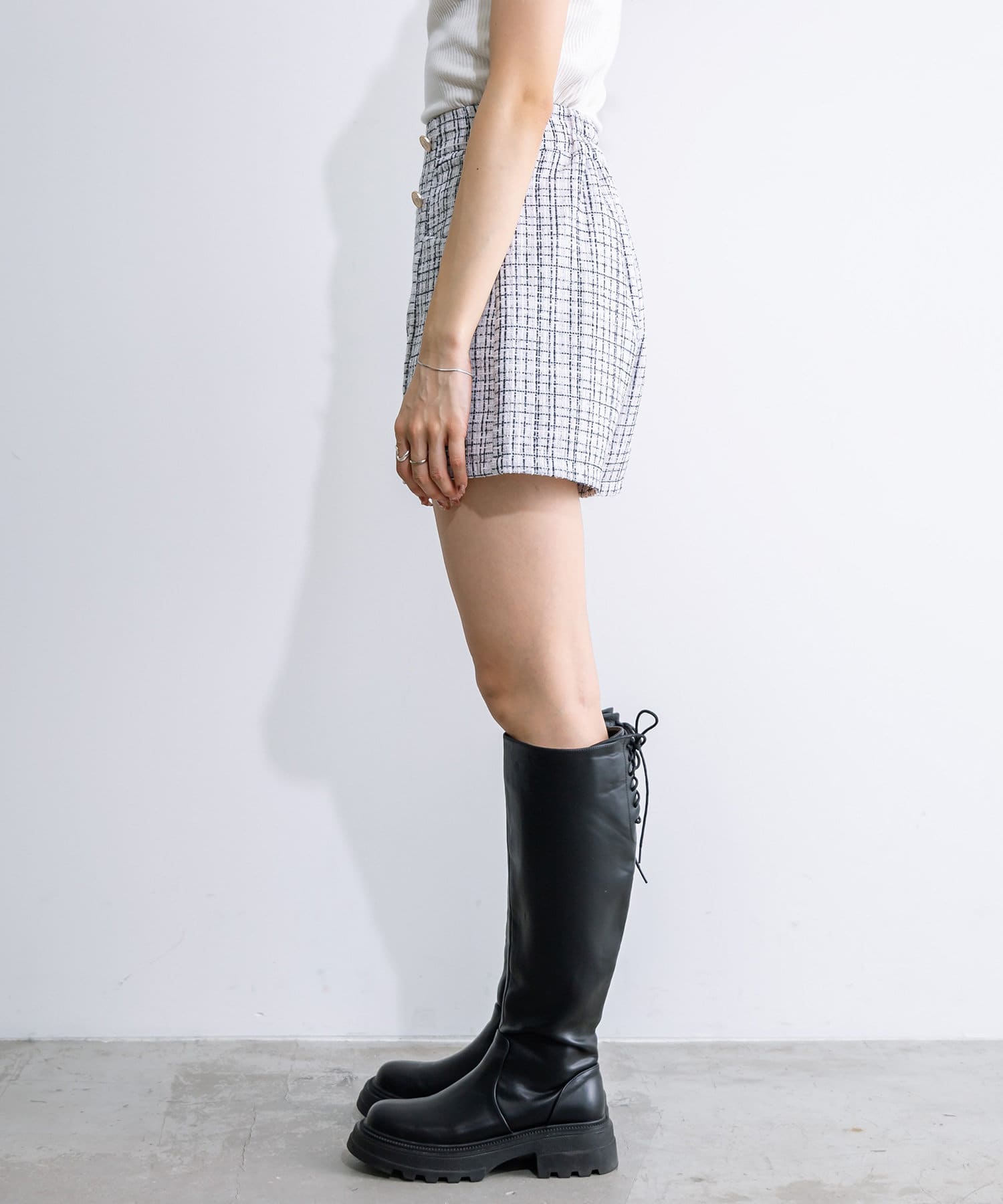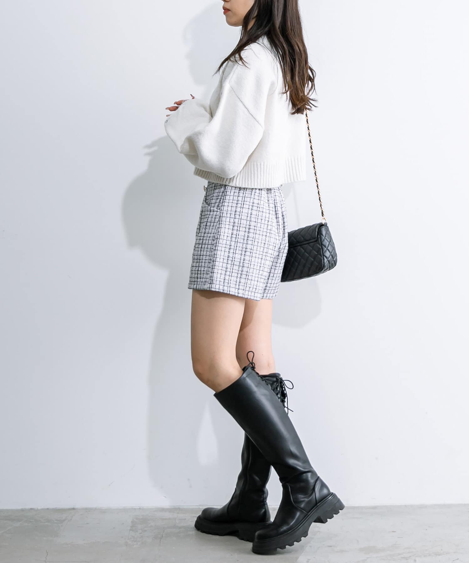 ・足元はショートブーツやロングブーツなどがおすすめ。