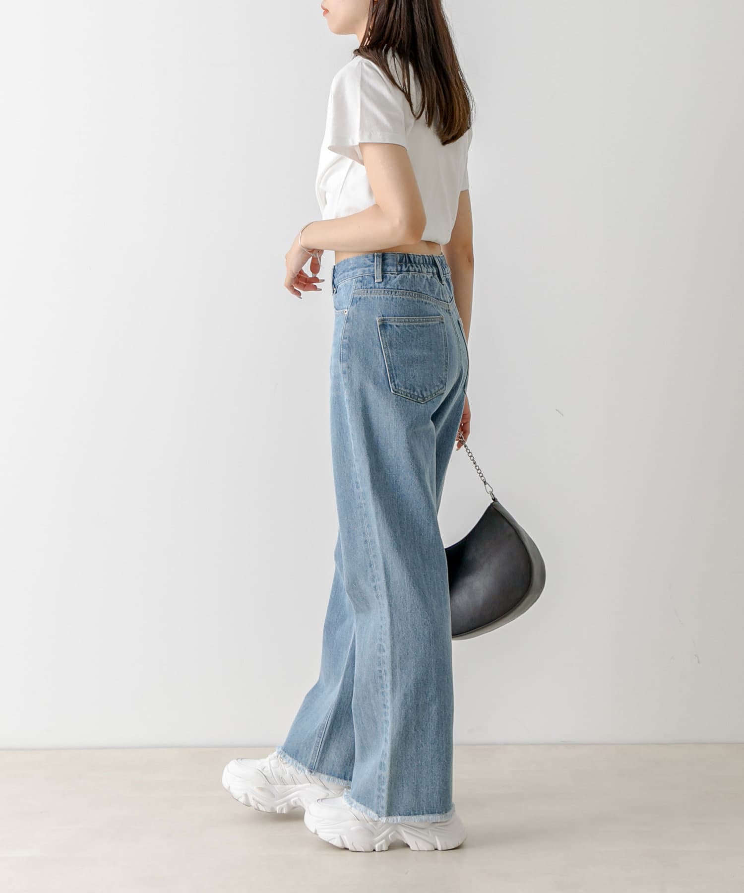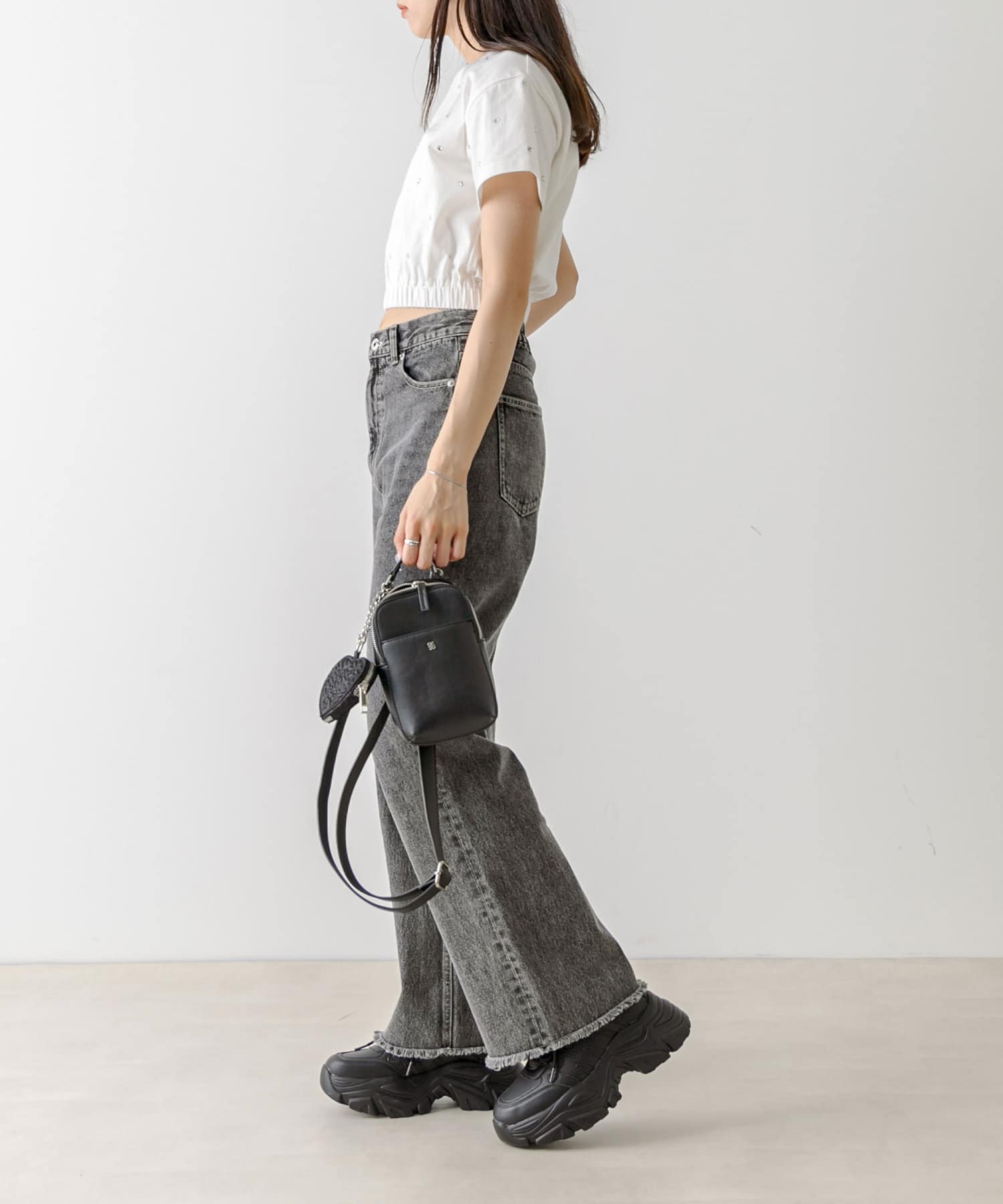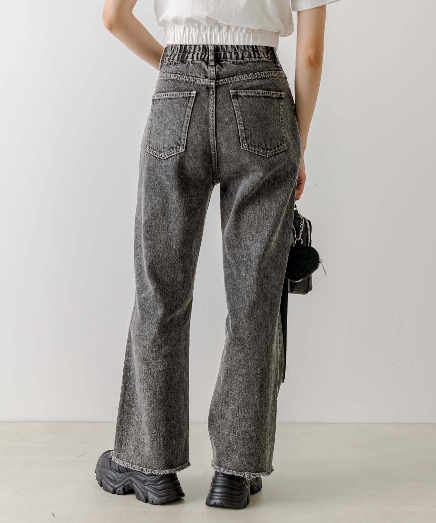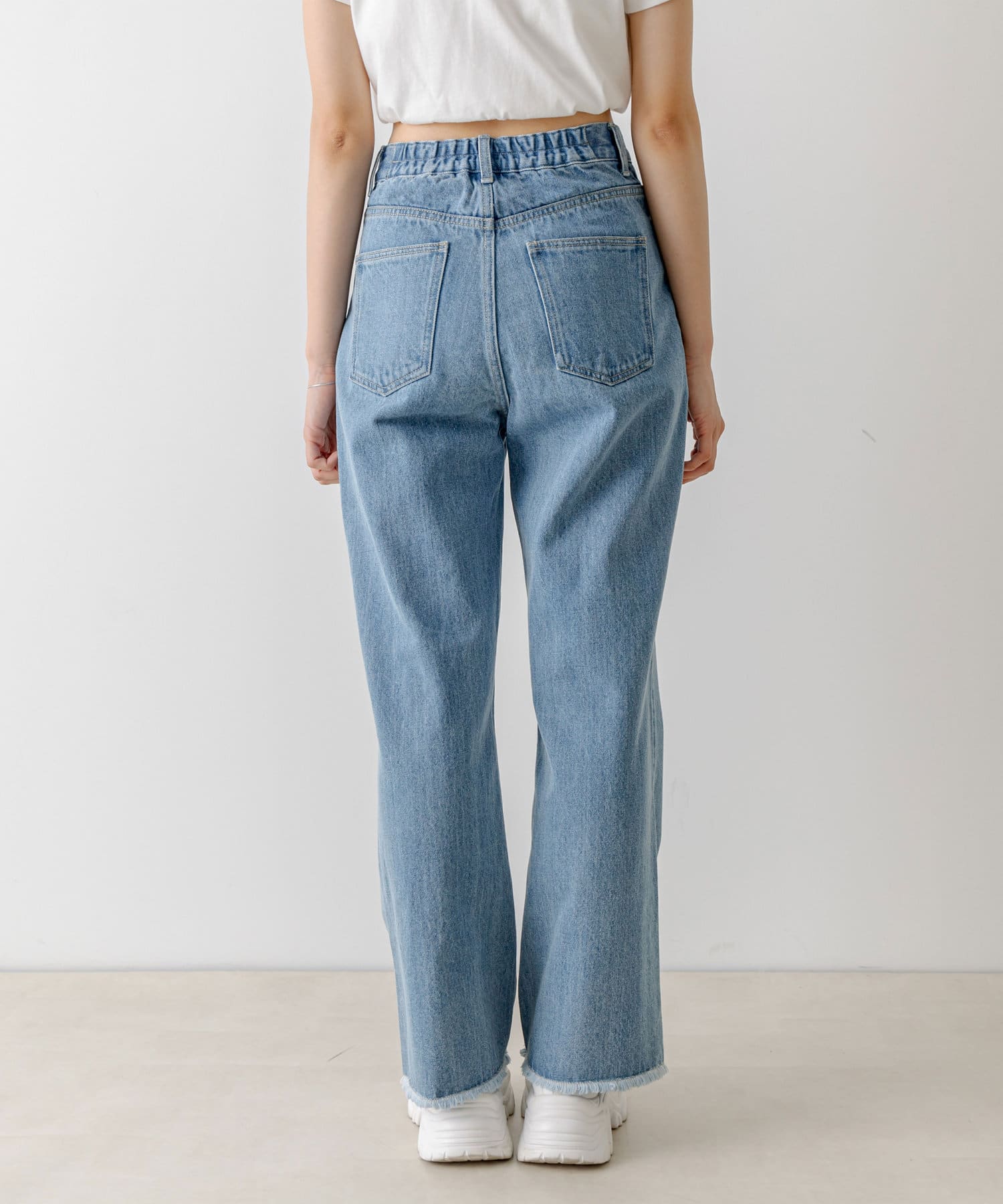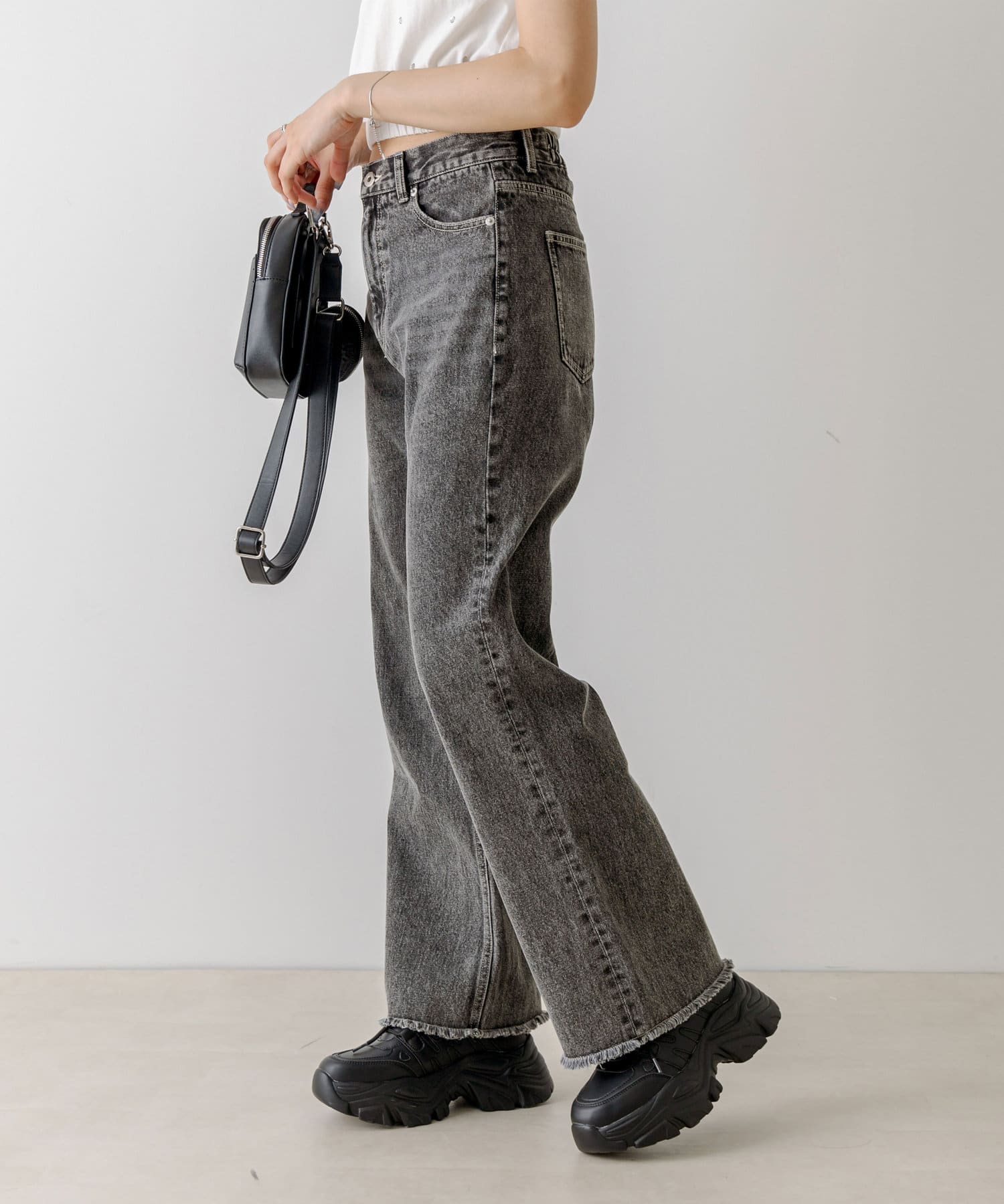 【S/Mサイズ展開】セミフレアフリンジデニムパンツ