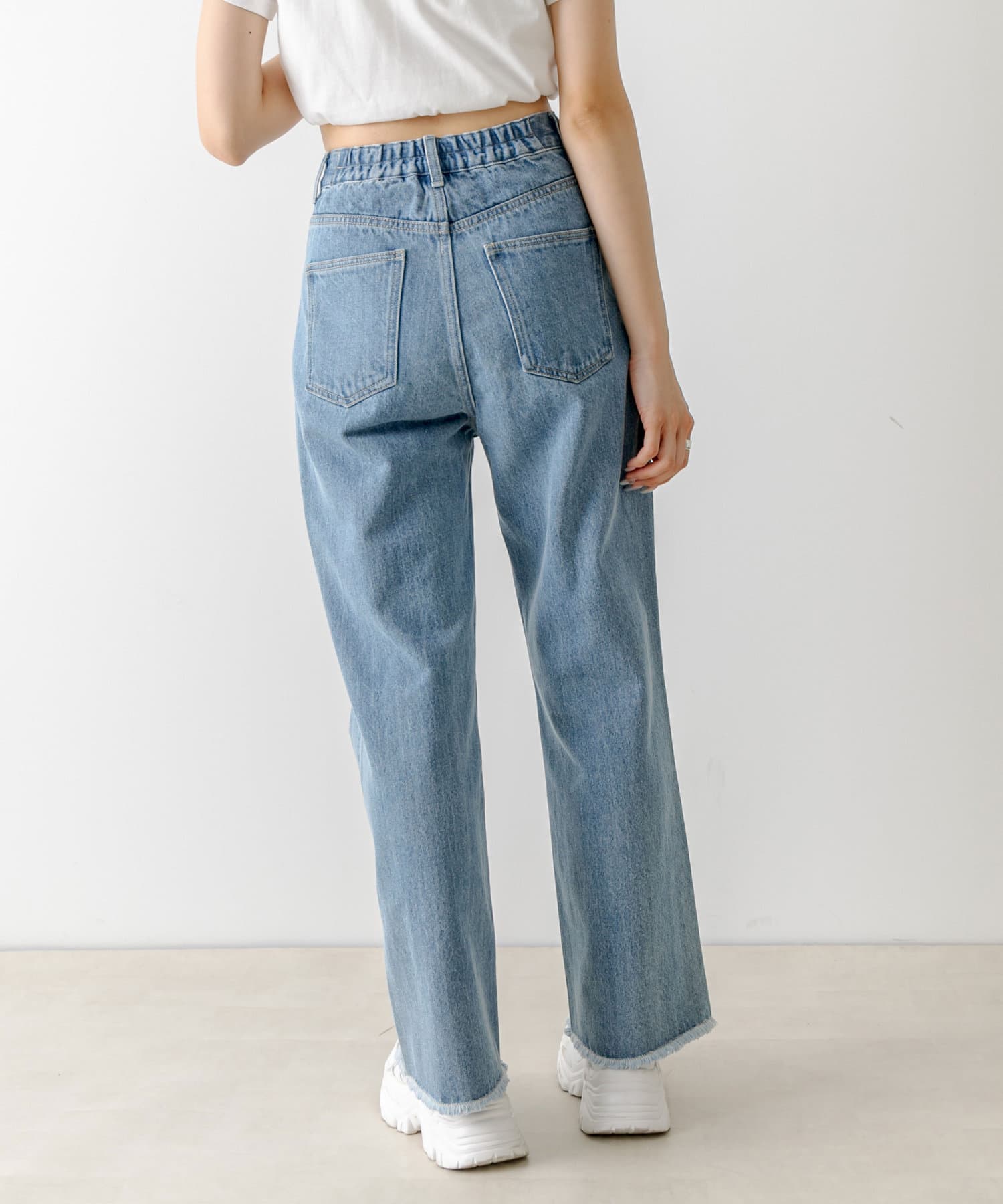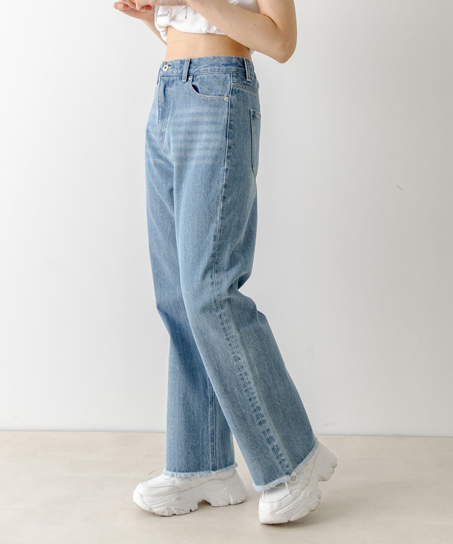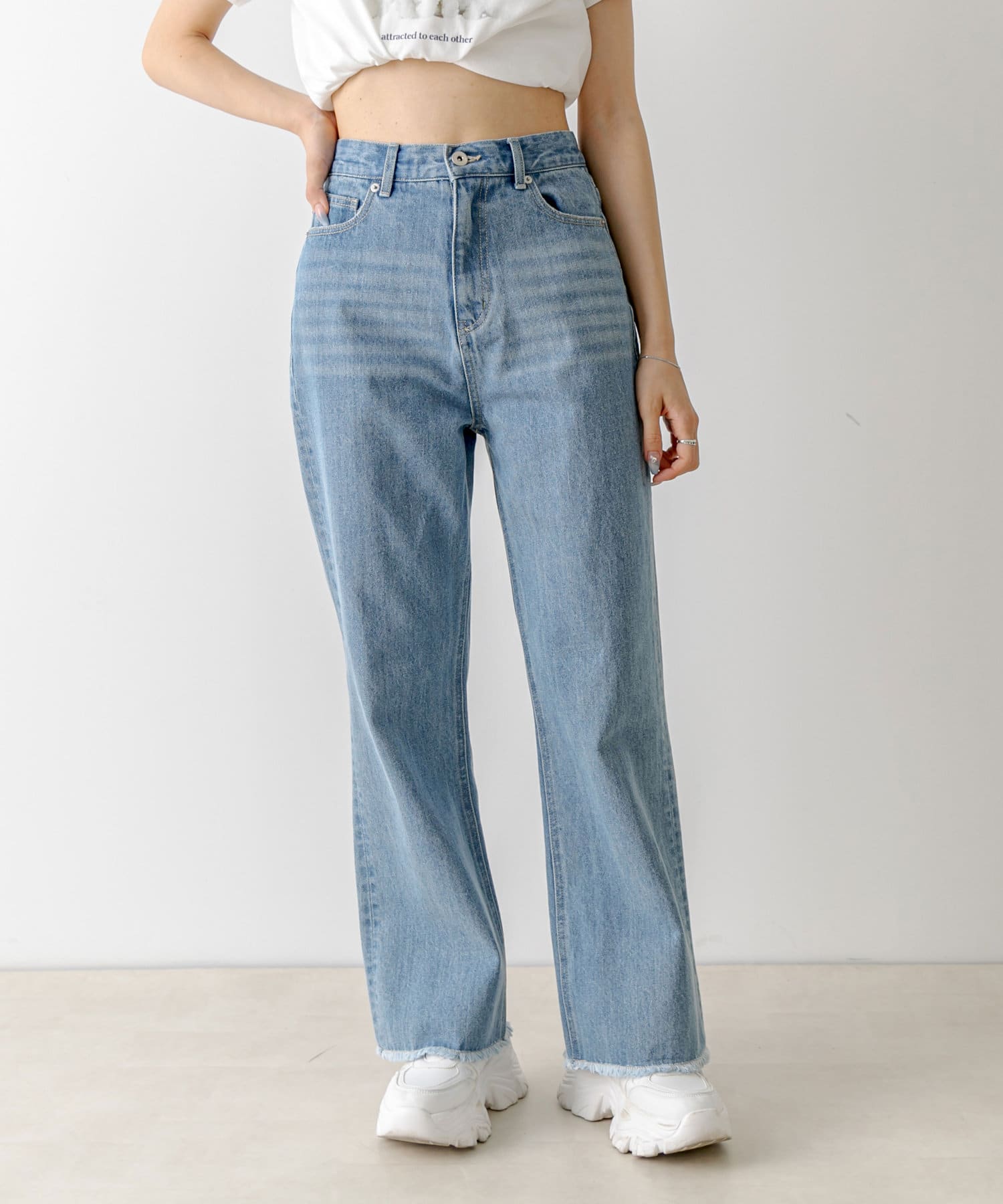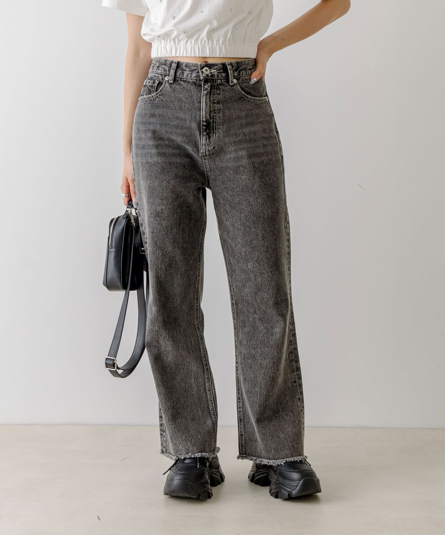 【S/Mサイズ展開】セミフレアフリンジデニムパンツ