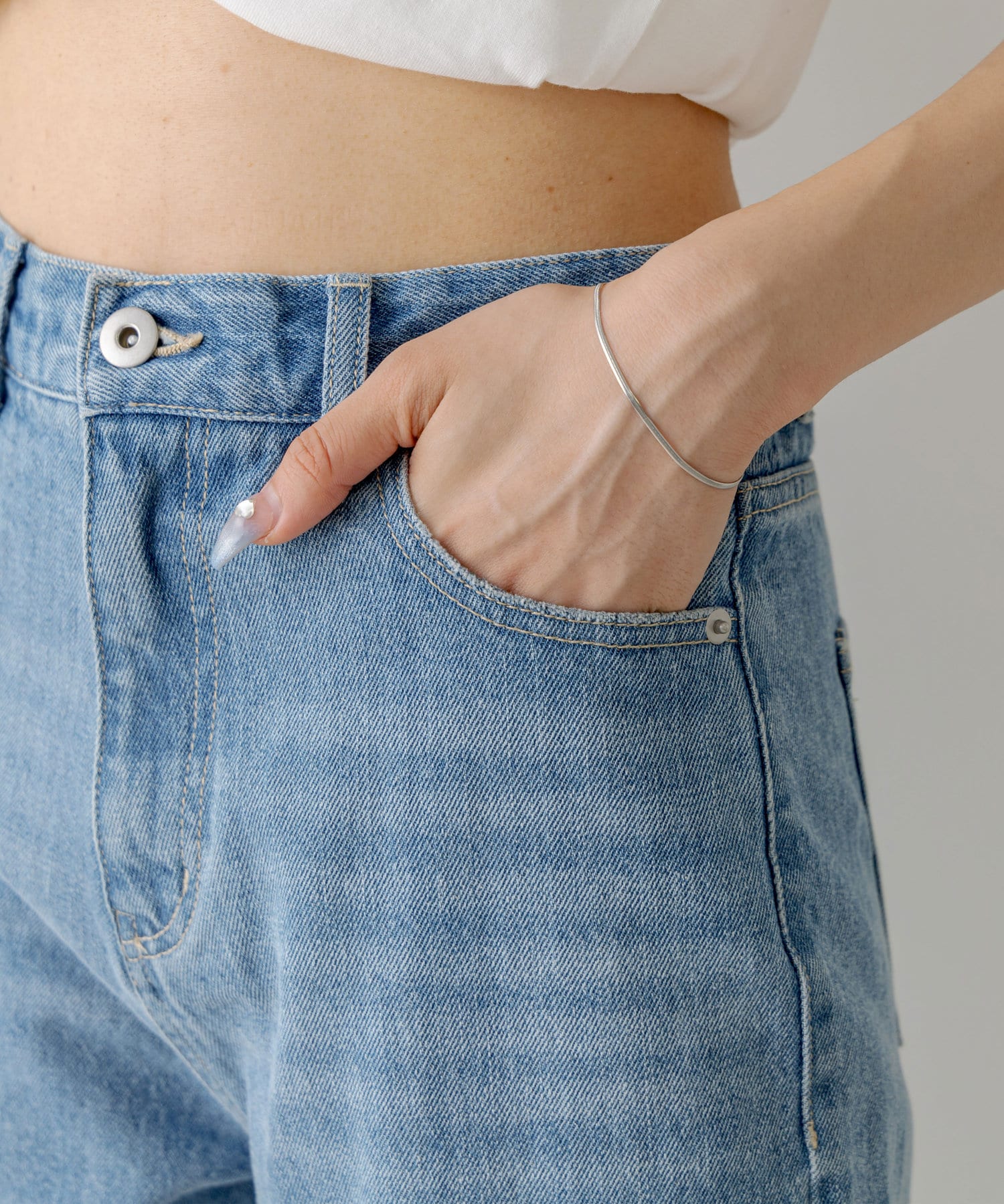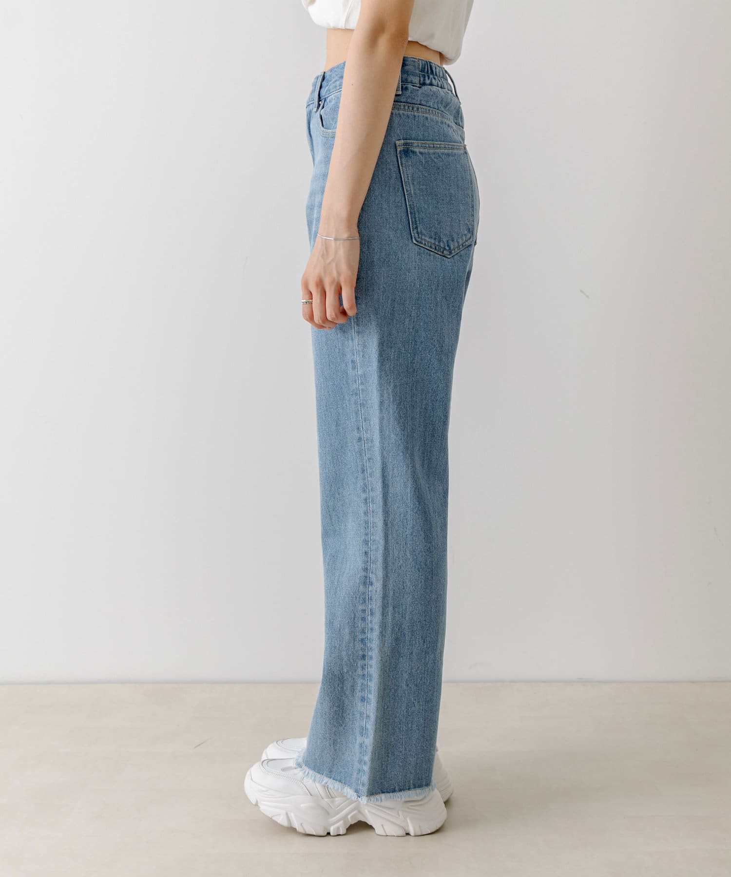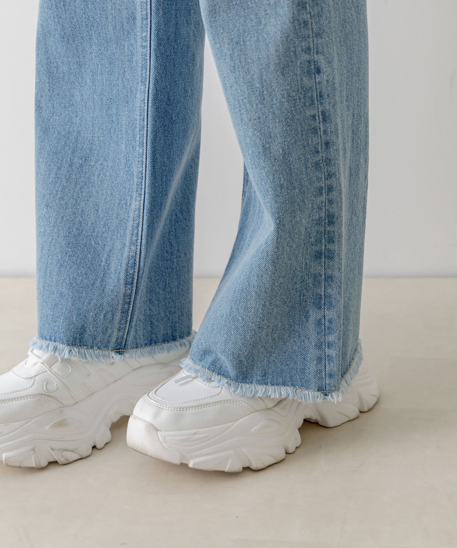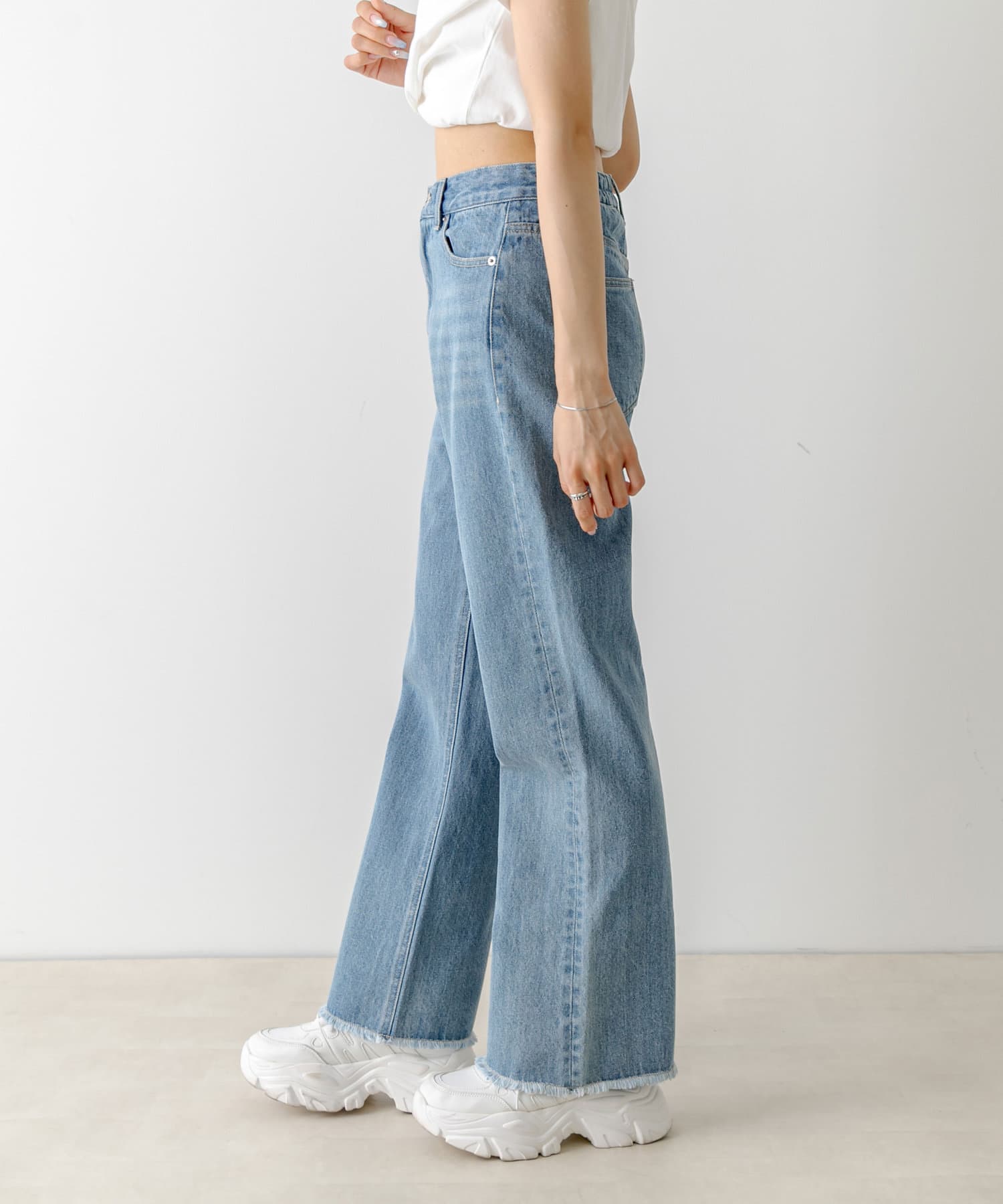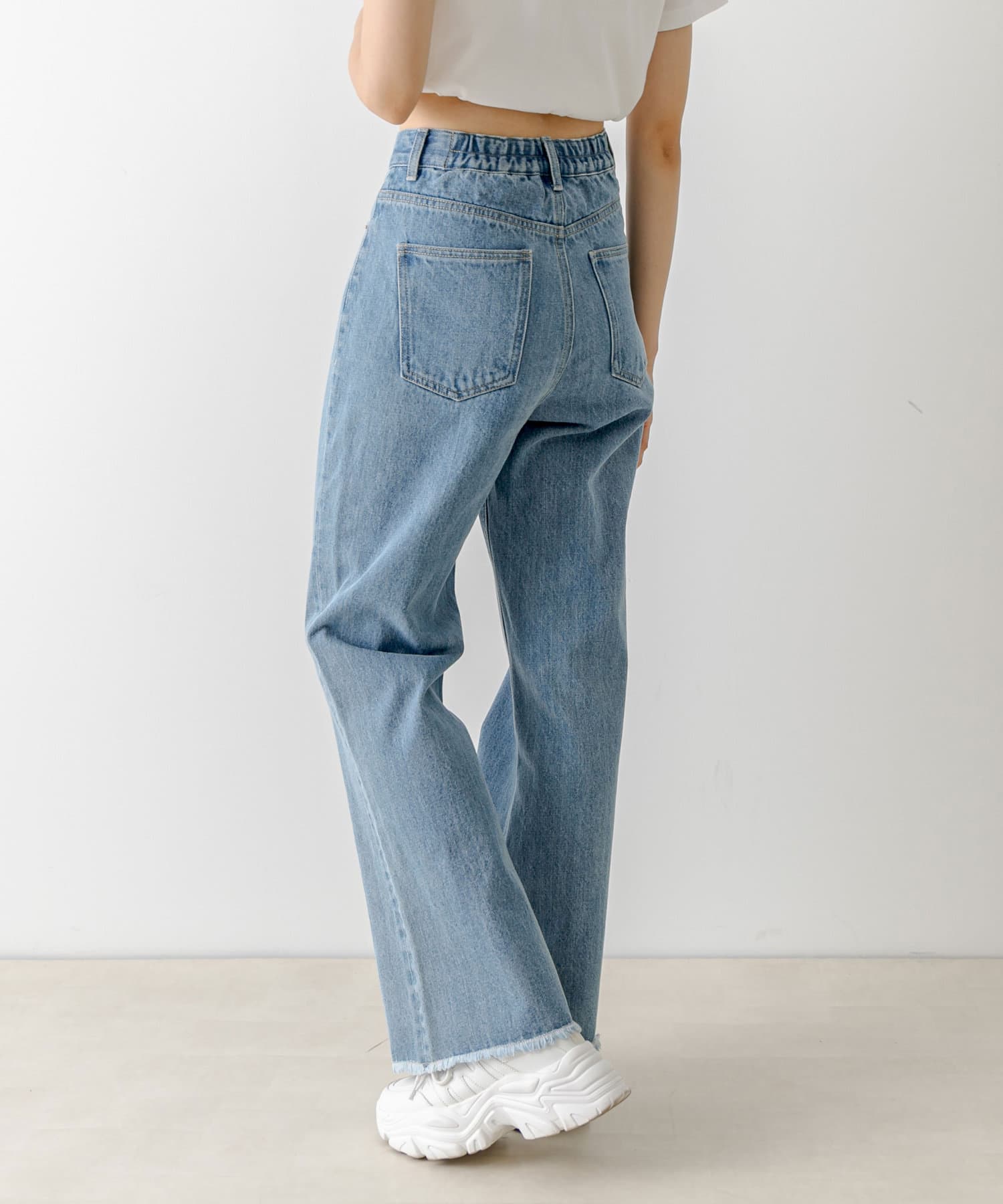 【S/Mサイズ展開】セミフレアフリンジデニムパンツ