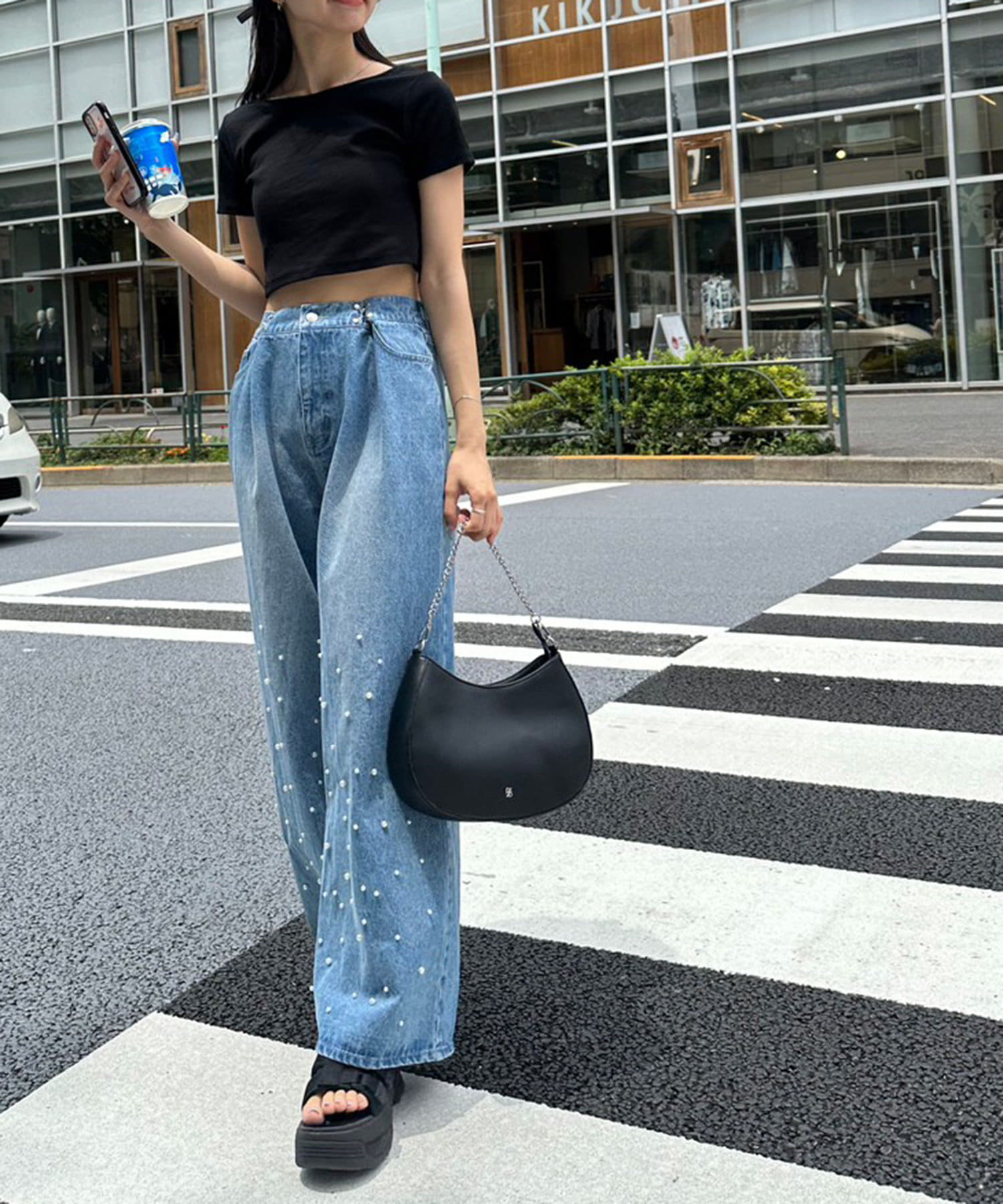 ・厚底サンダルや厚底スニーカーでY2Kっぽいスタイリングが◎