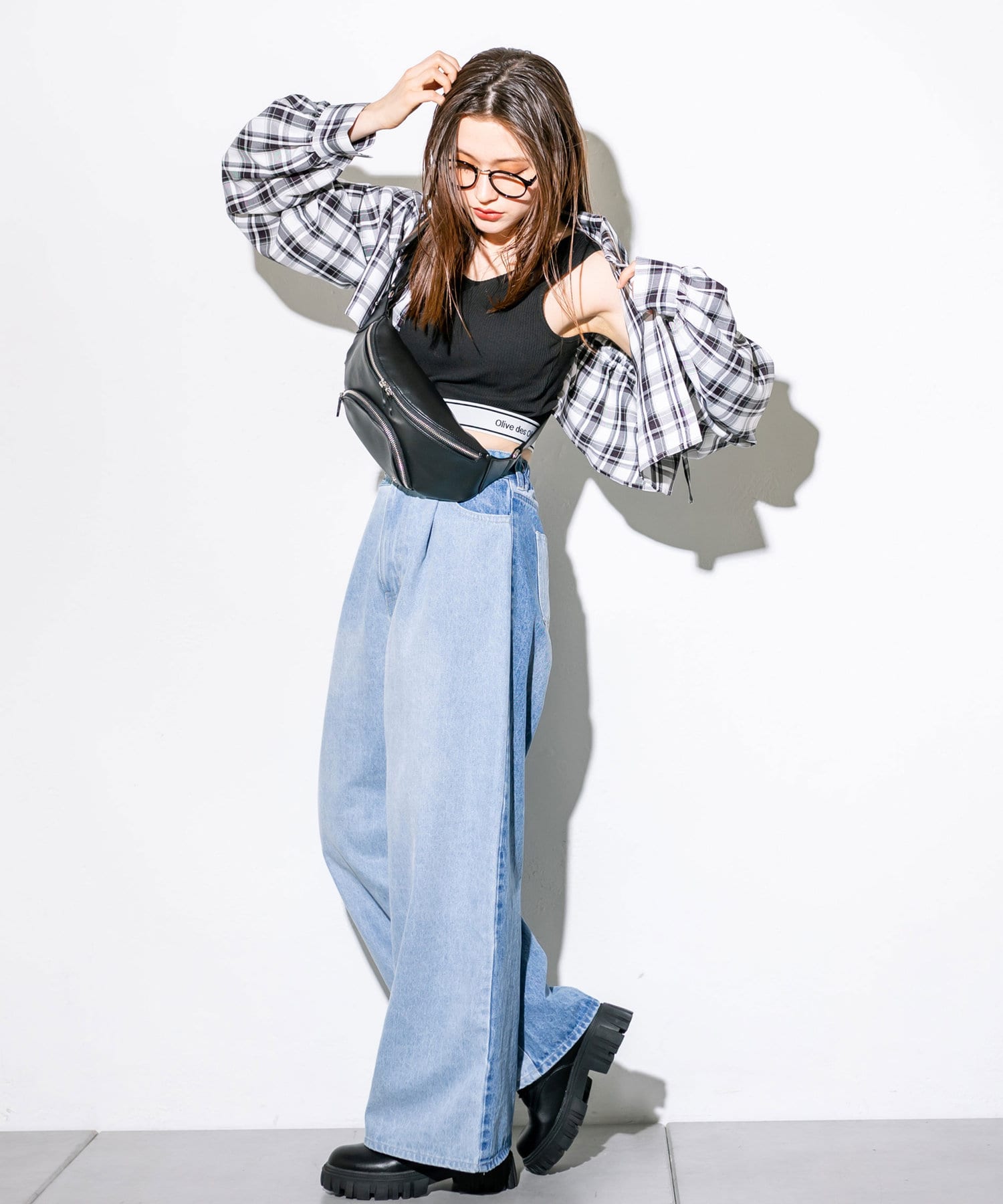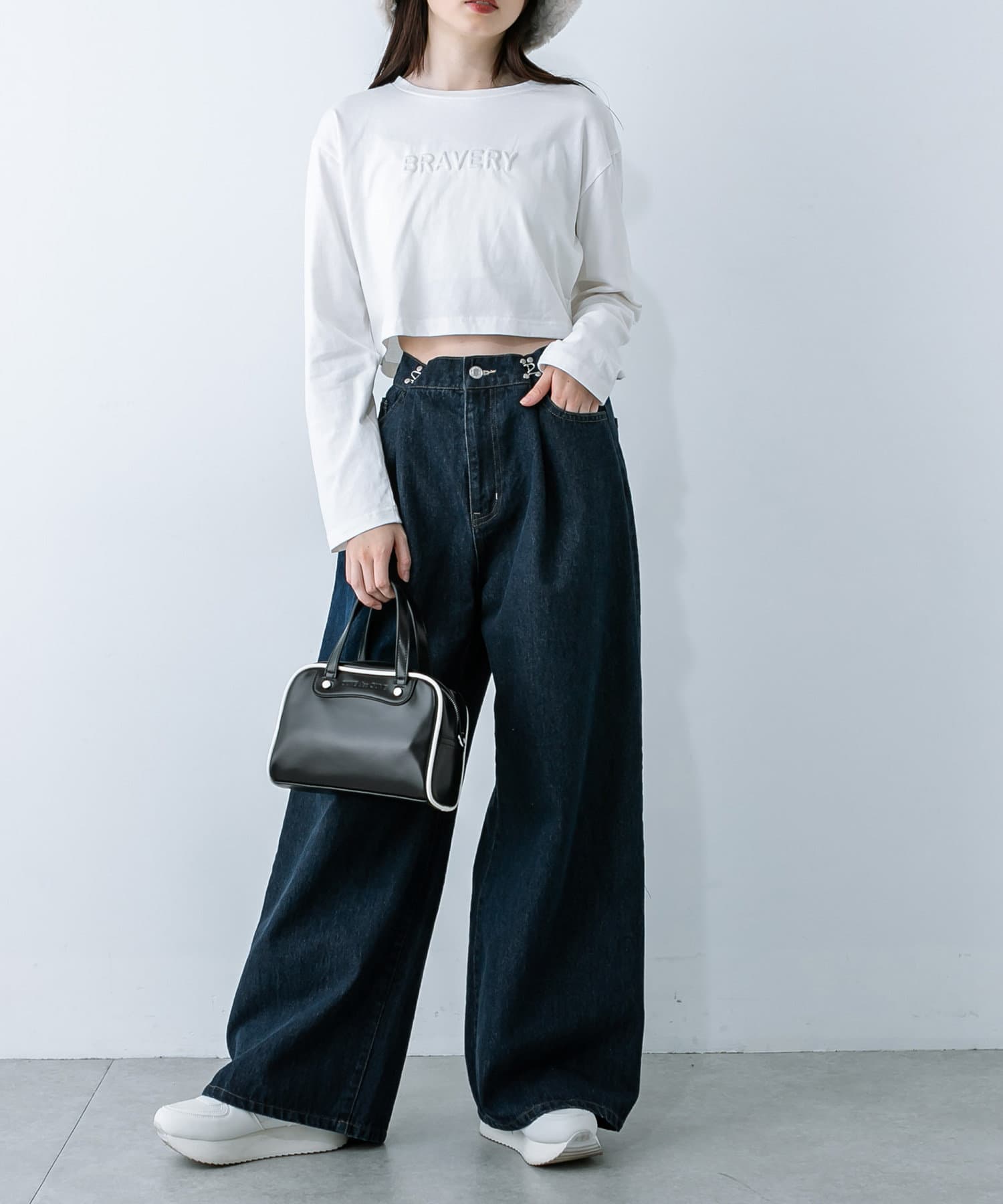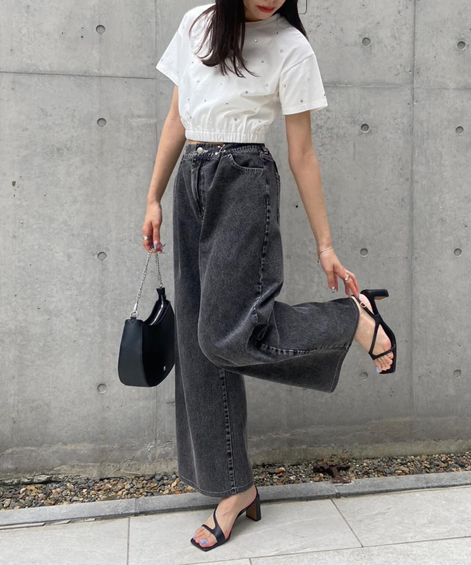 ・トップスはクロップド丈のTシャツやシャツなどコンパクトなものがおすすめ。
