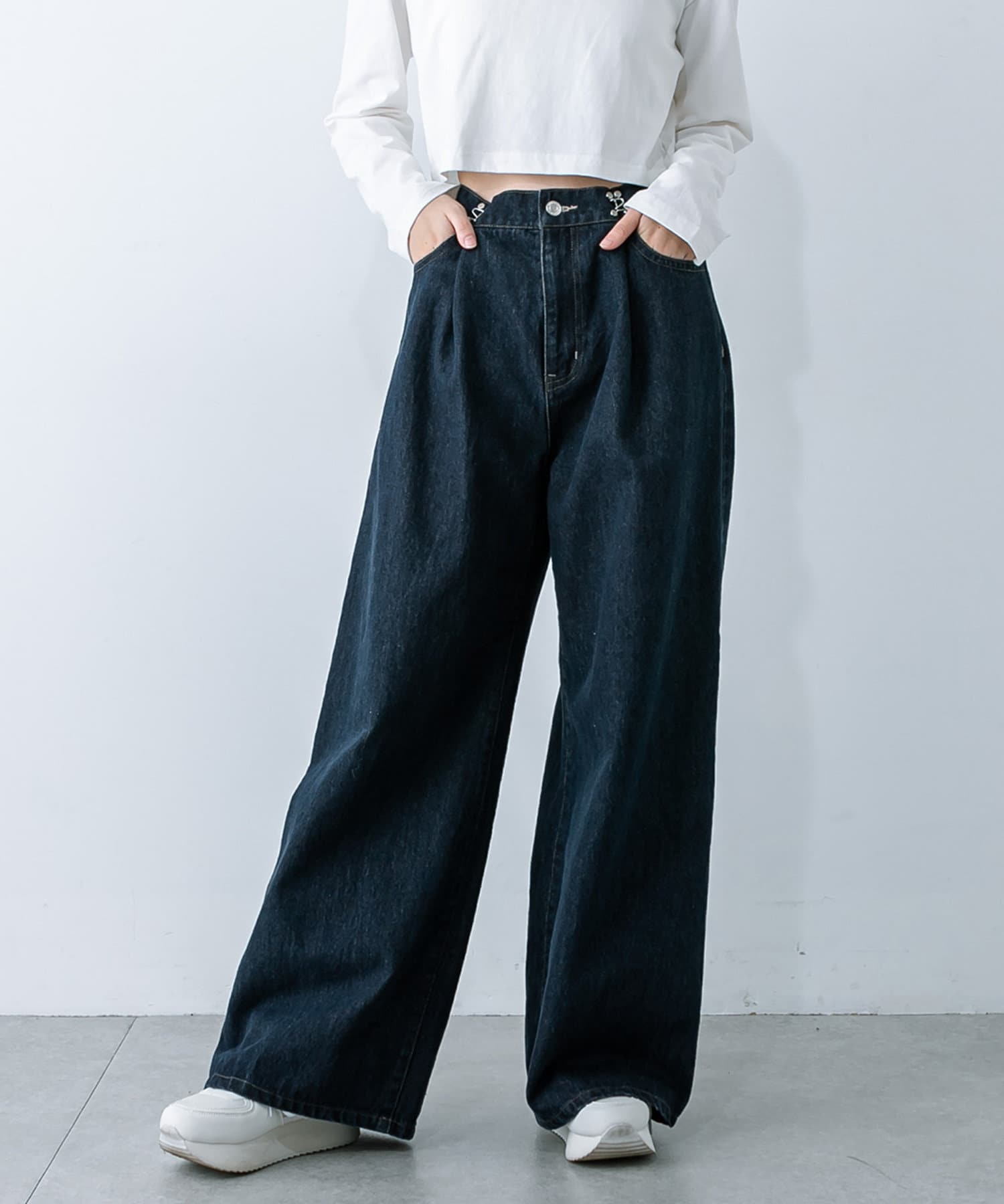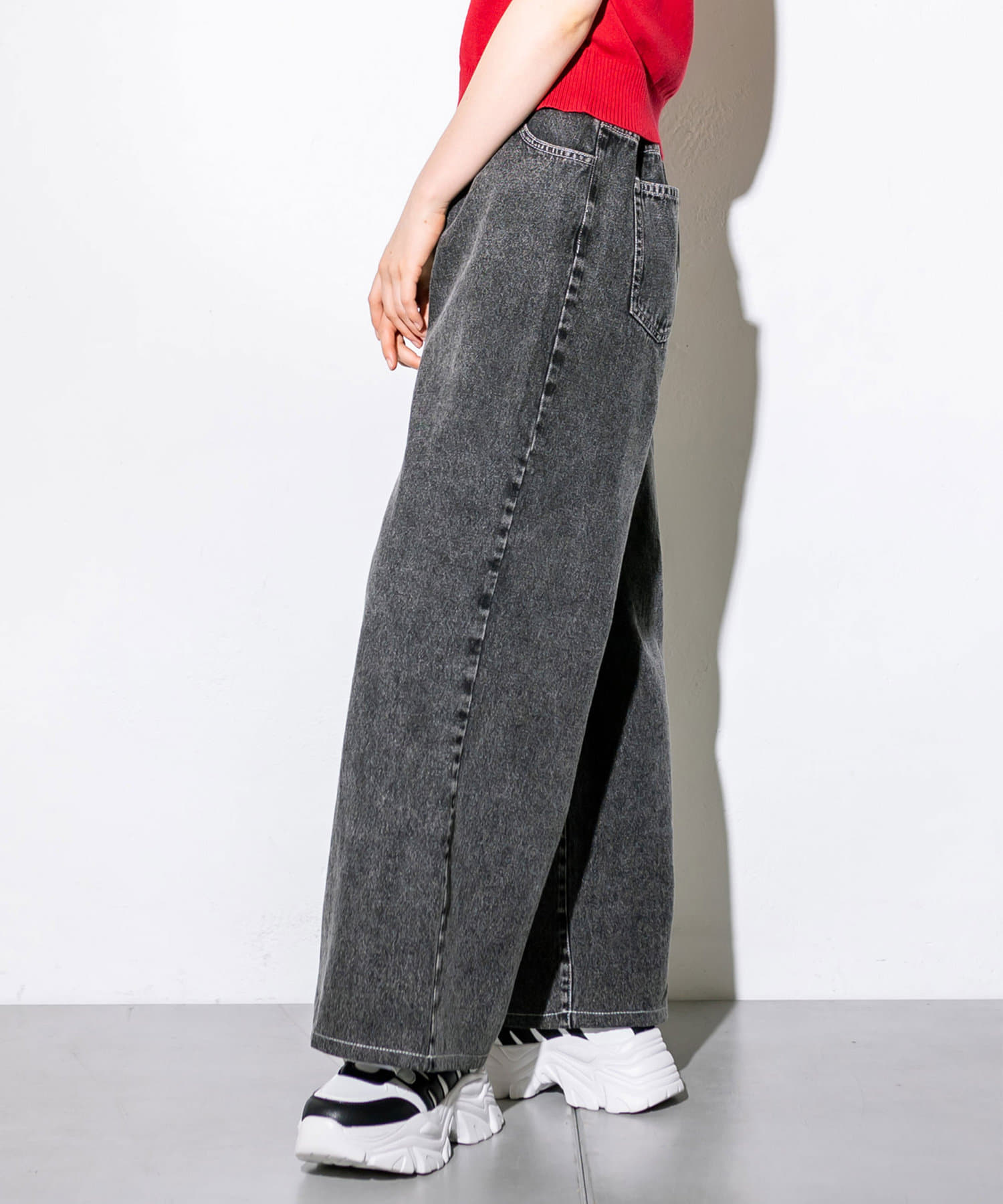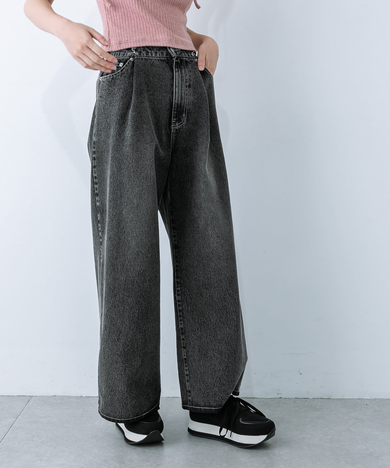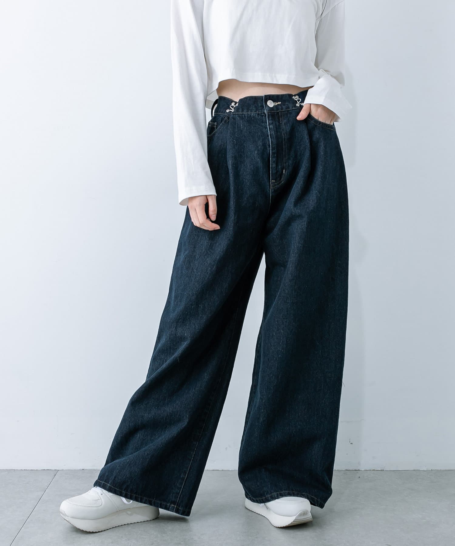 【S/Mサイズ展開・新色追加!】2WAYライズワイドデニムパンツ