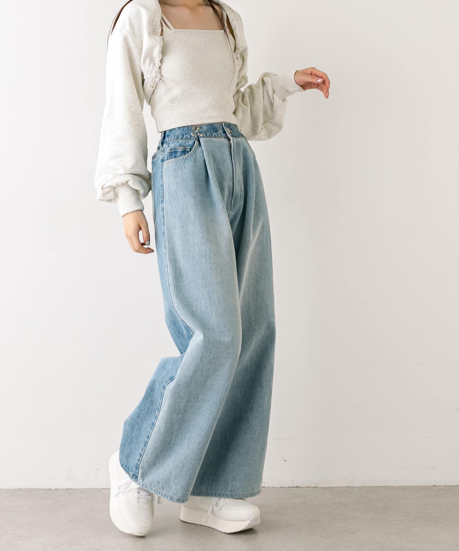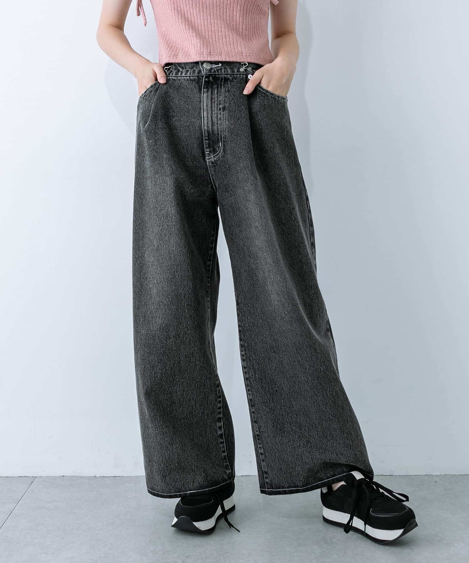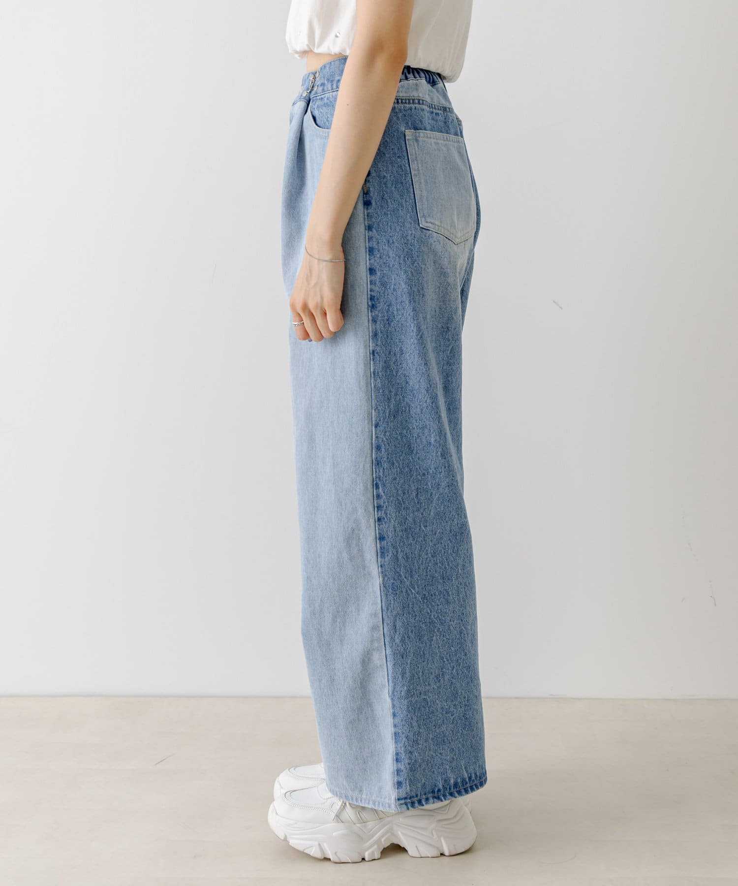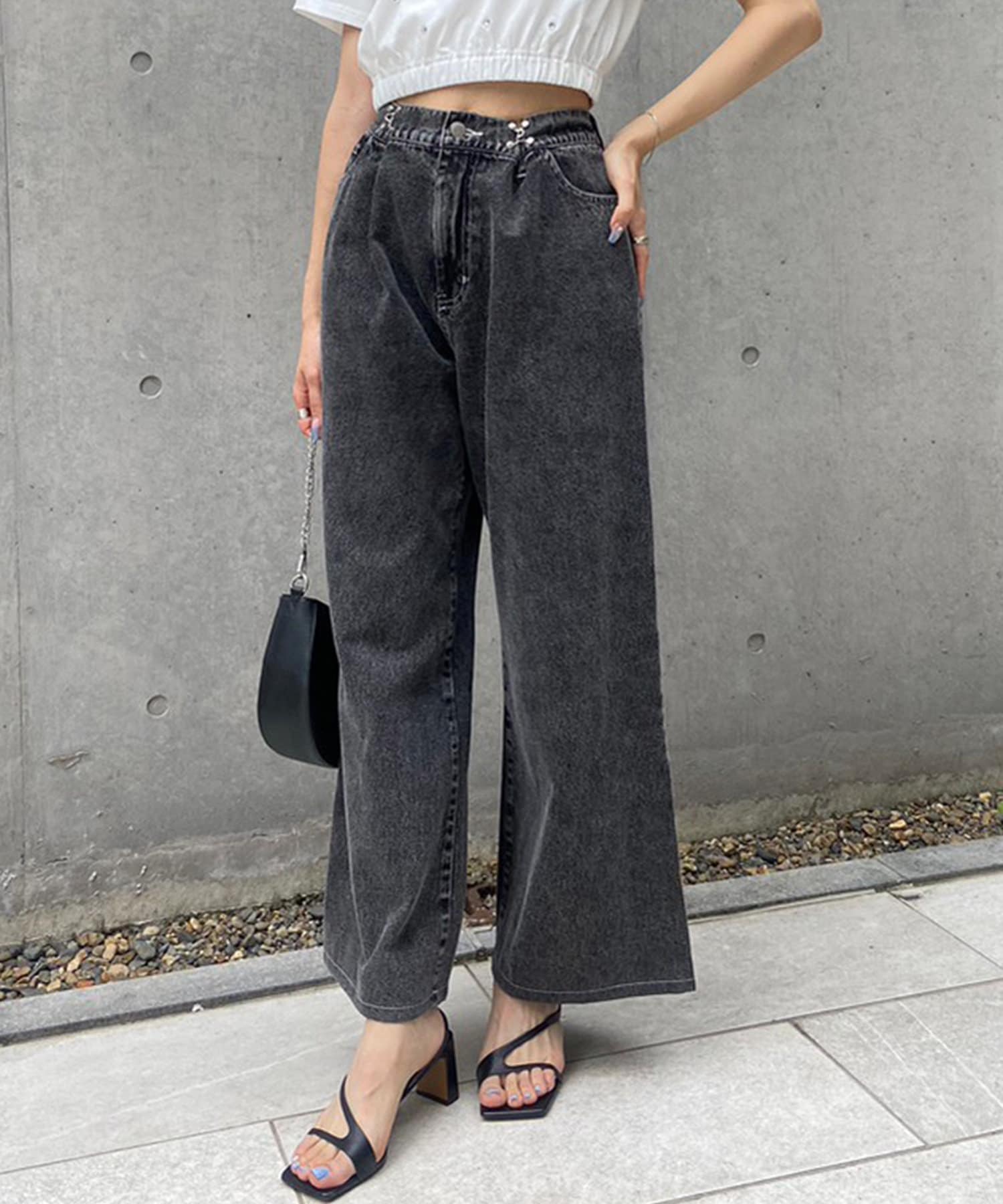 【S/Mサイズ展開・新色追加!】2WAYライズワイドデニムパンツ