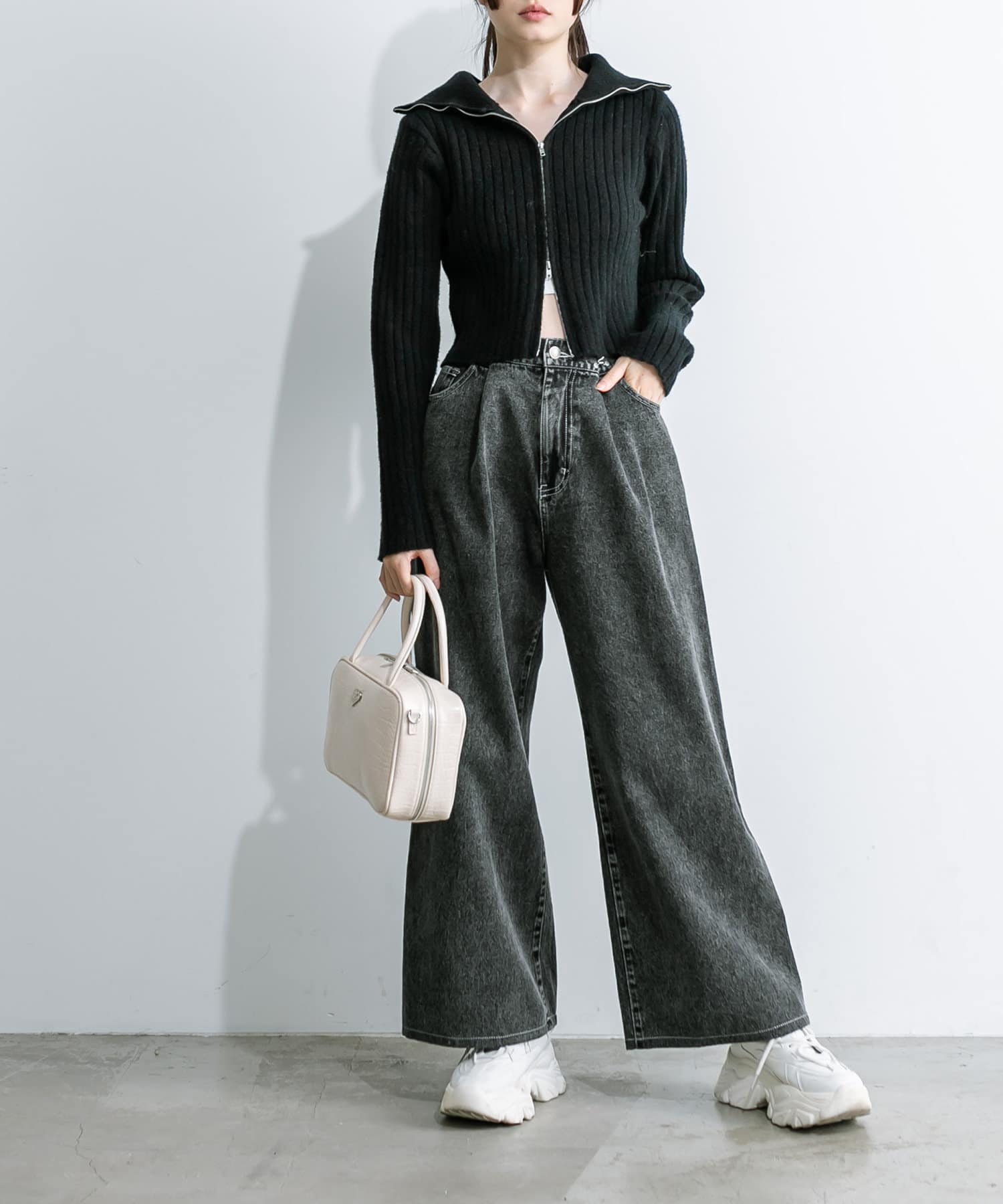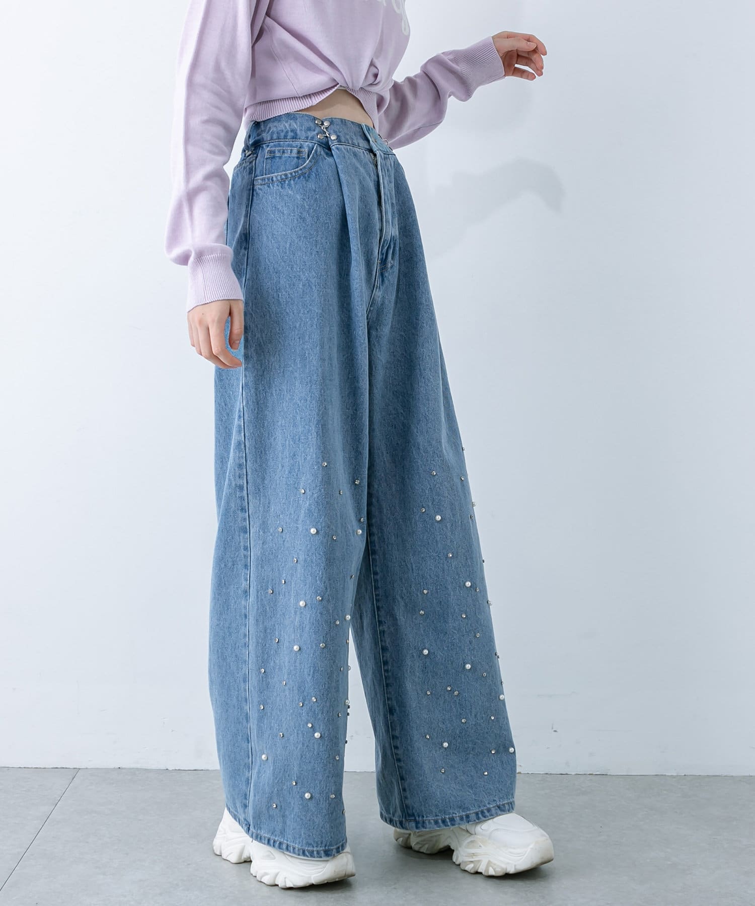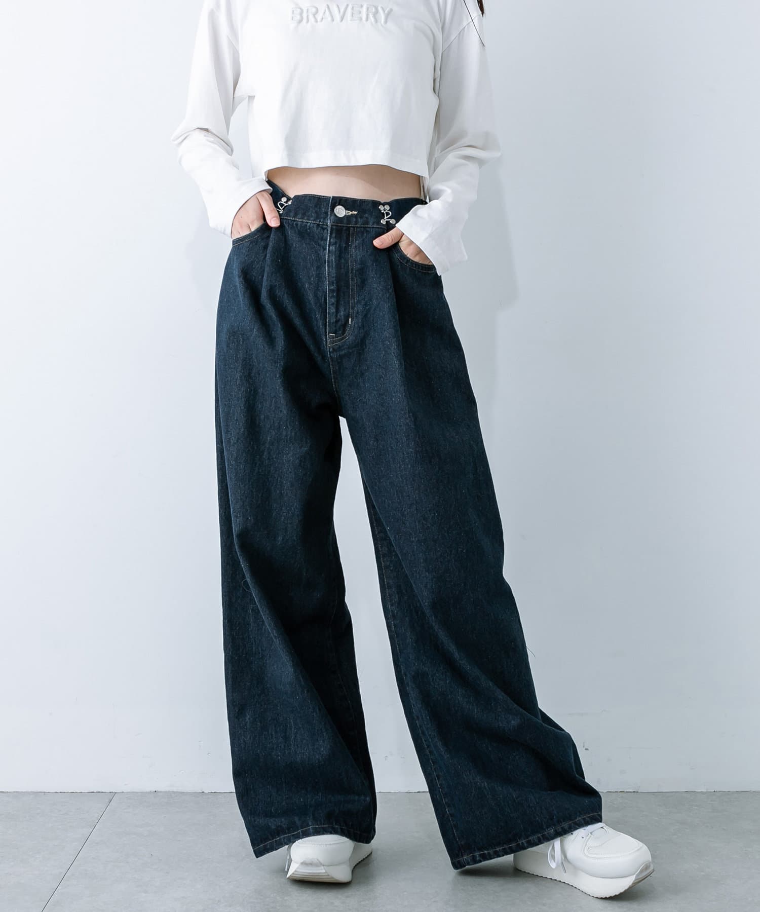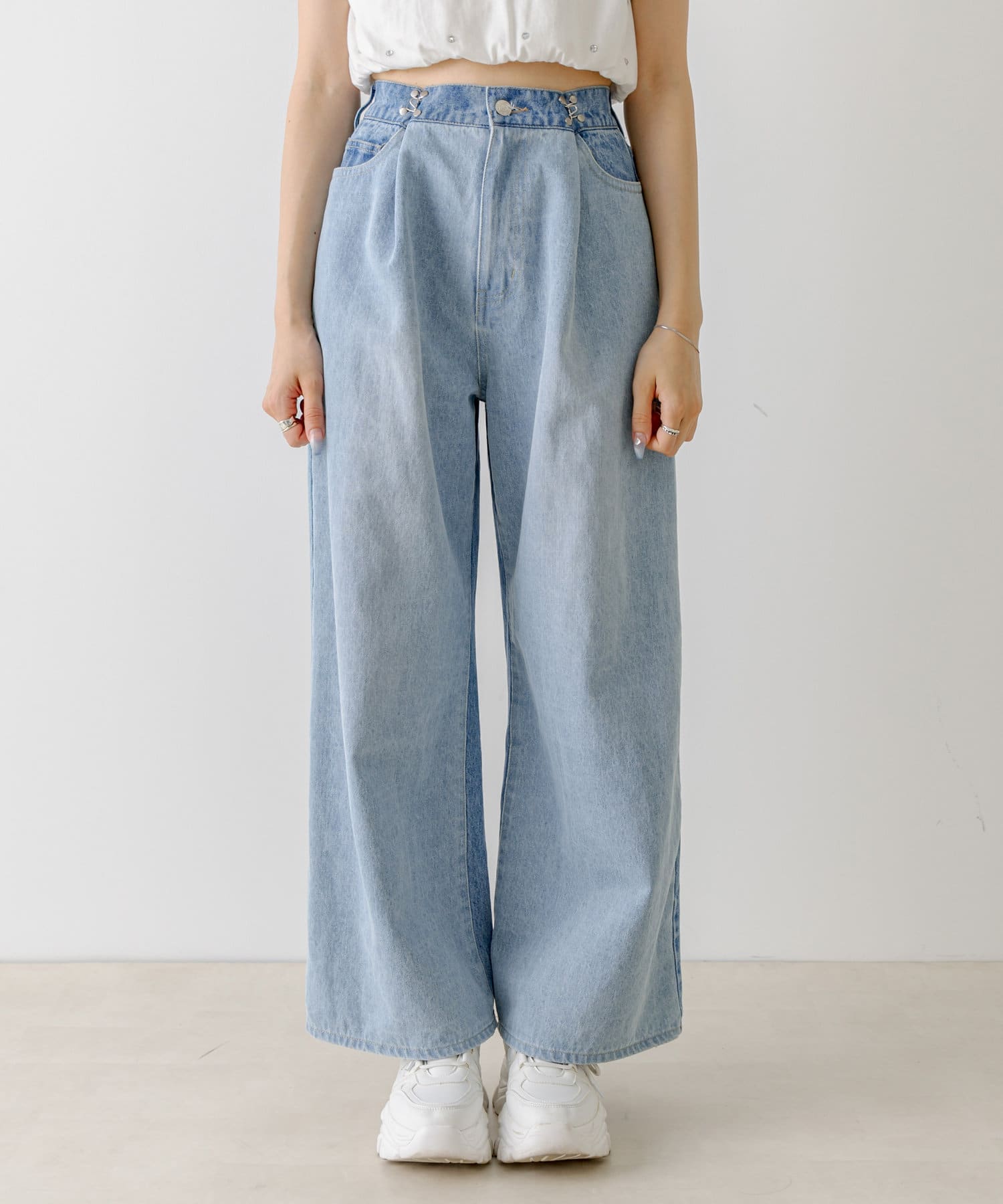 【S/Mサイズ展開・新色追加!】2WAYライズワイドデニムパンツ
