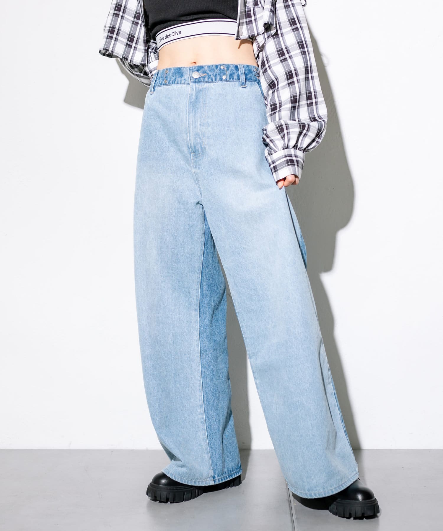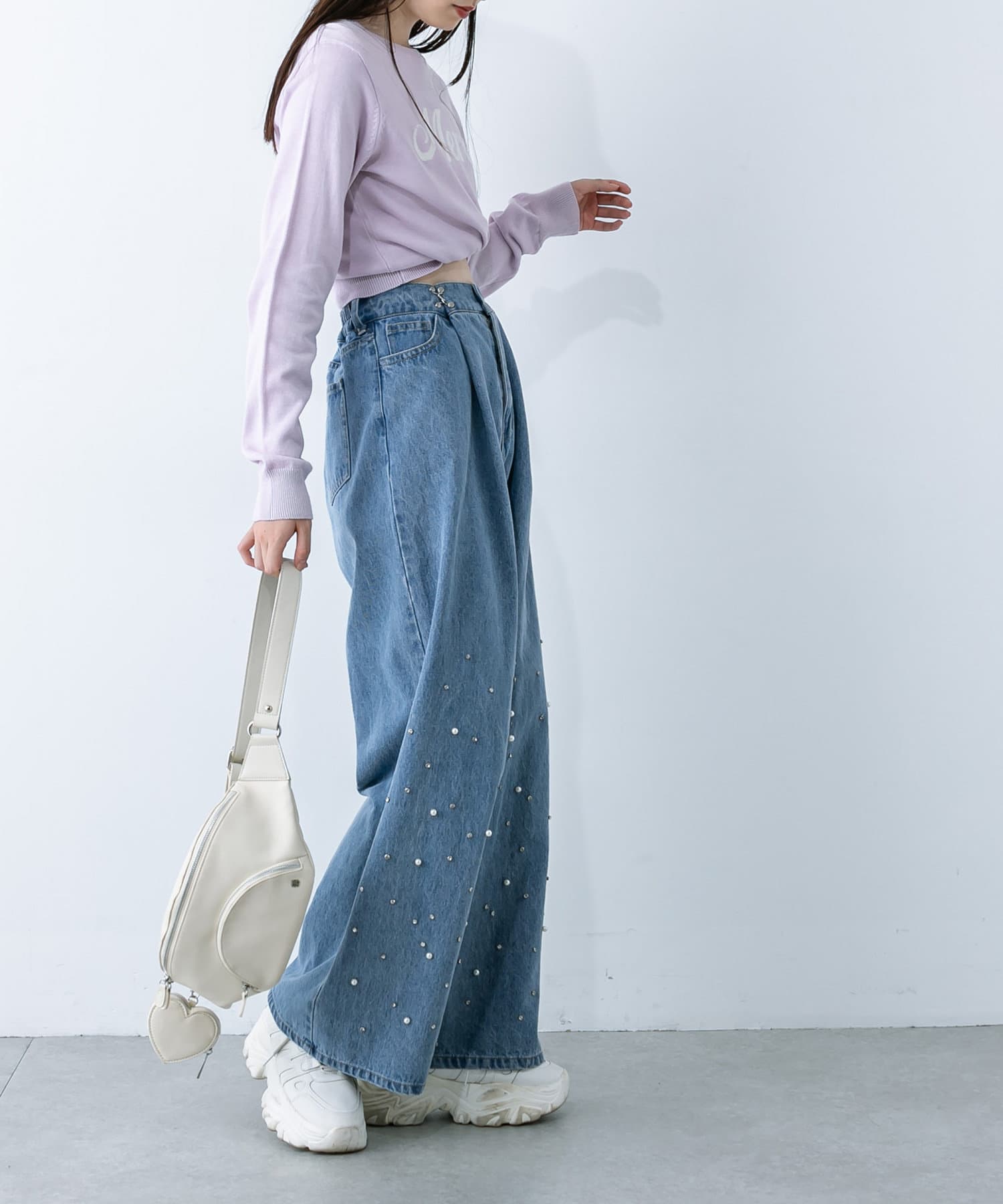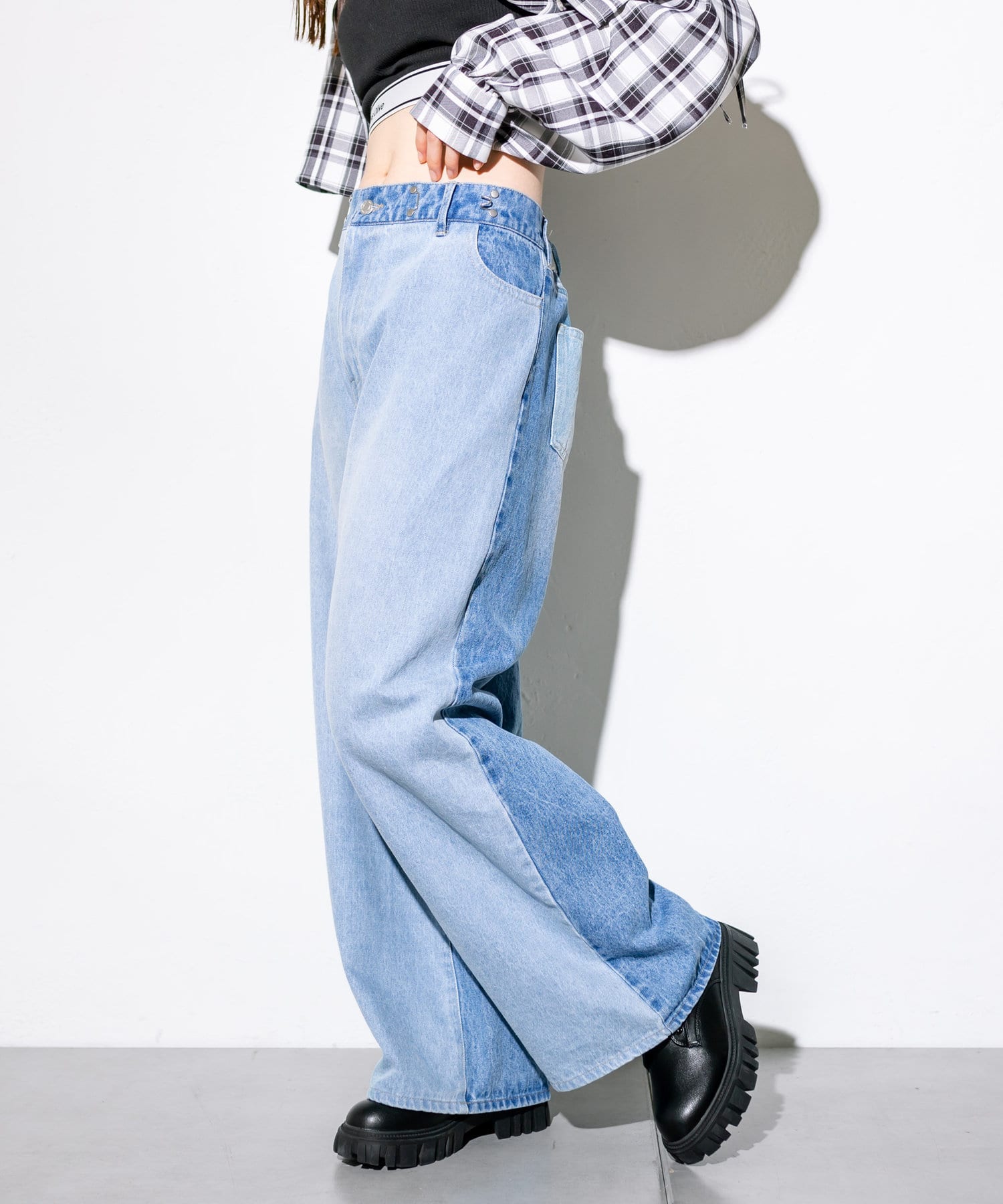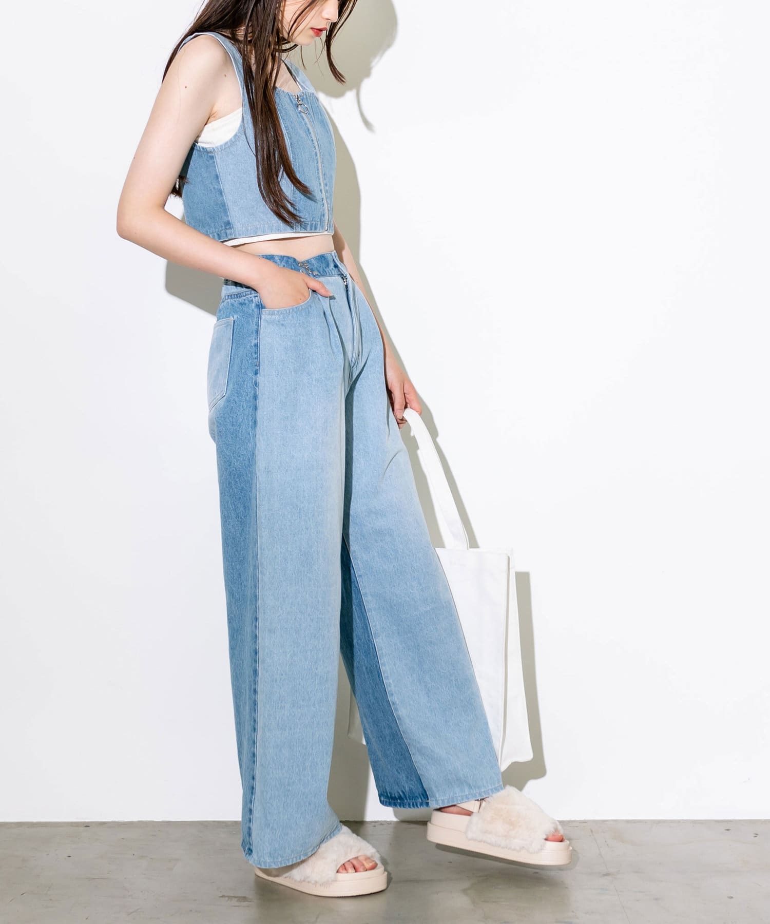 【S/Mサイズ展開・新色追加!】2WAYライズワイドデニムパンツ