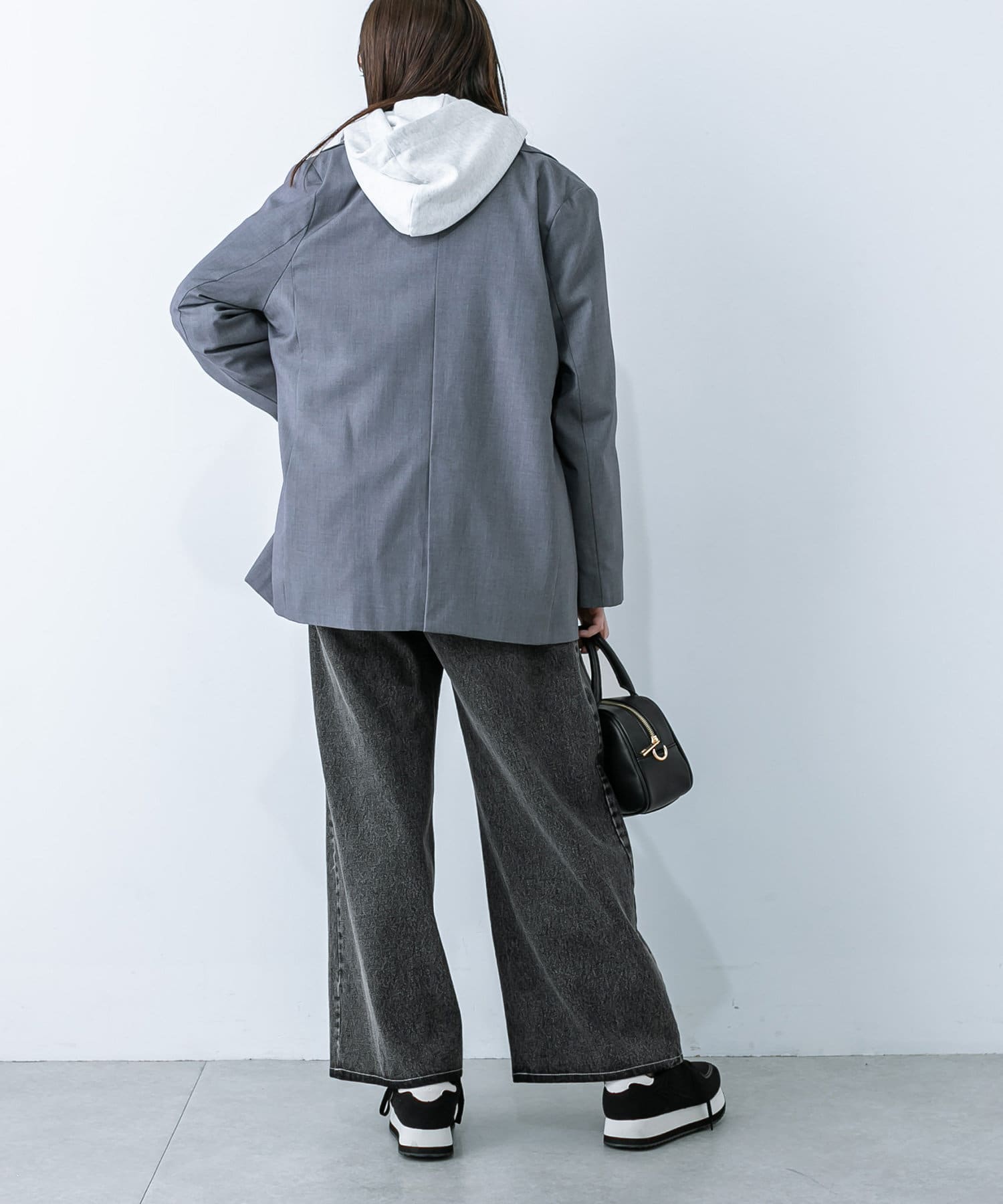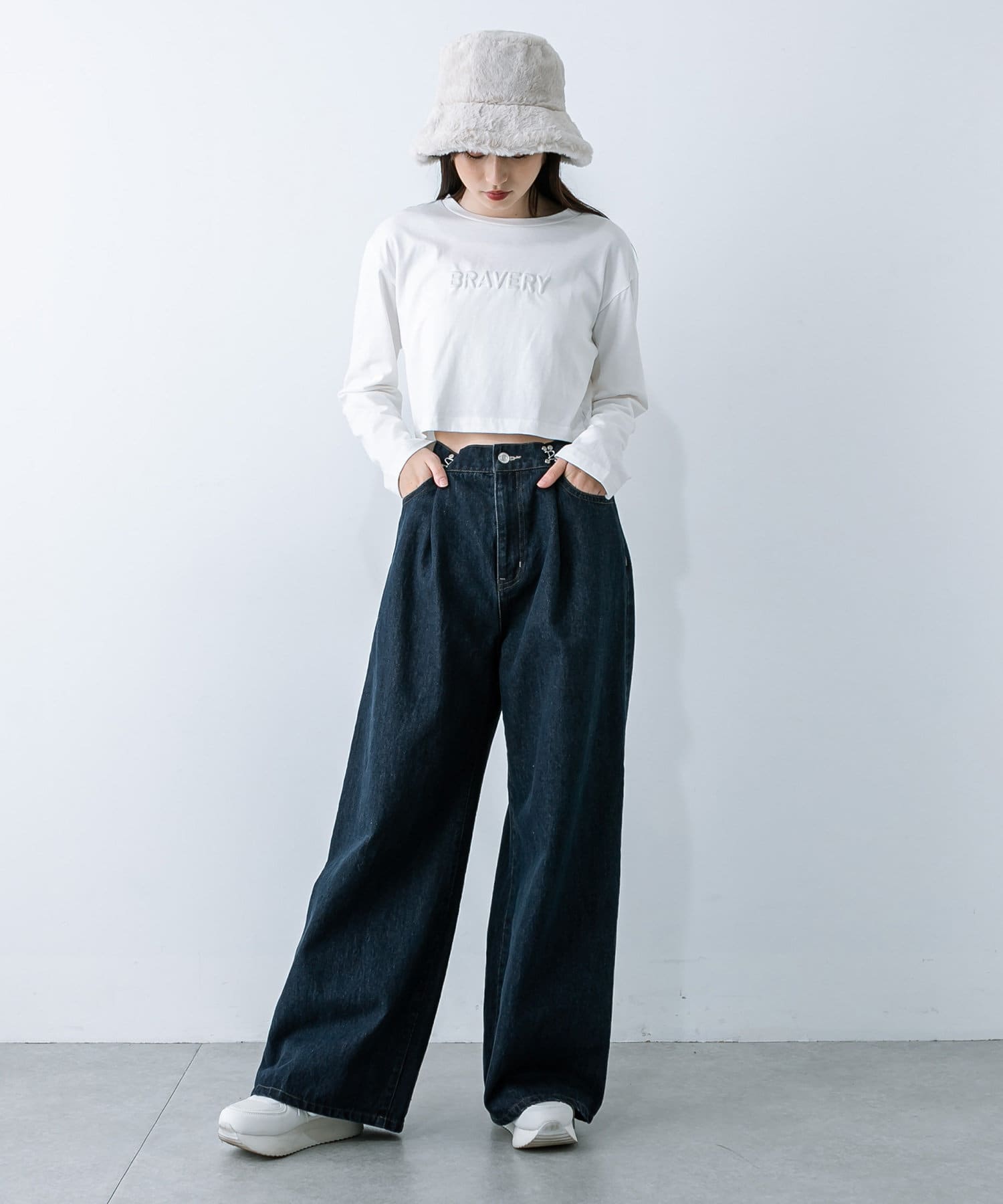 ・ホックを付けて着用すると、タックがよるのでトレンドのボリュームシルエットに。