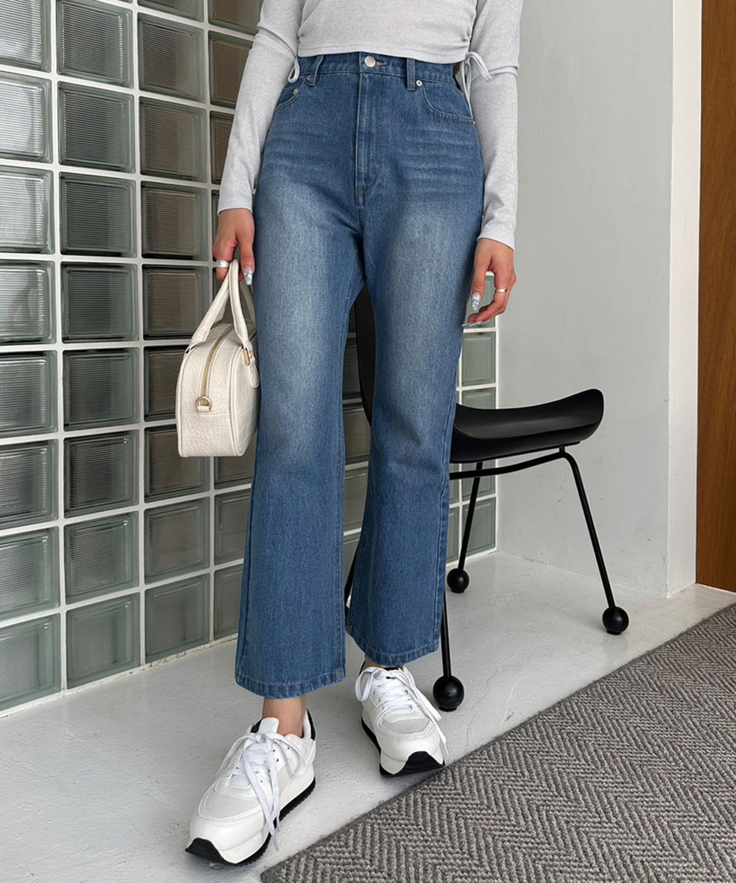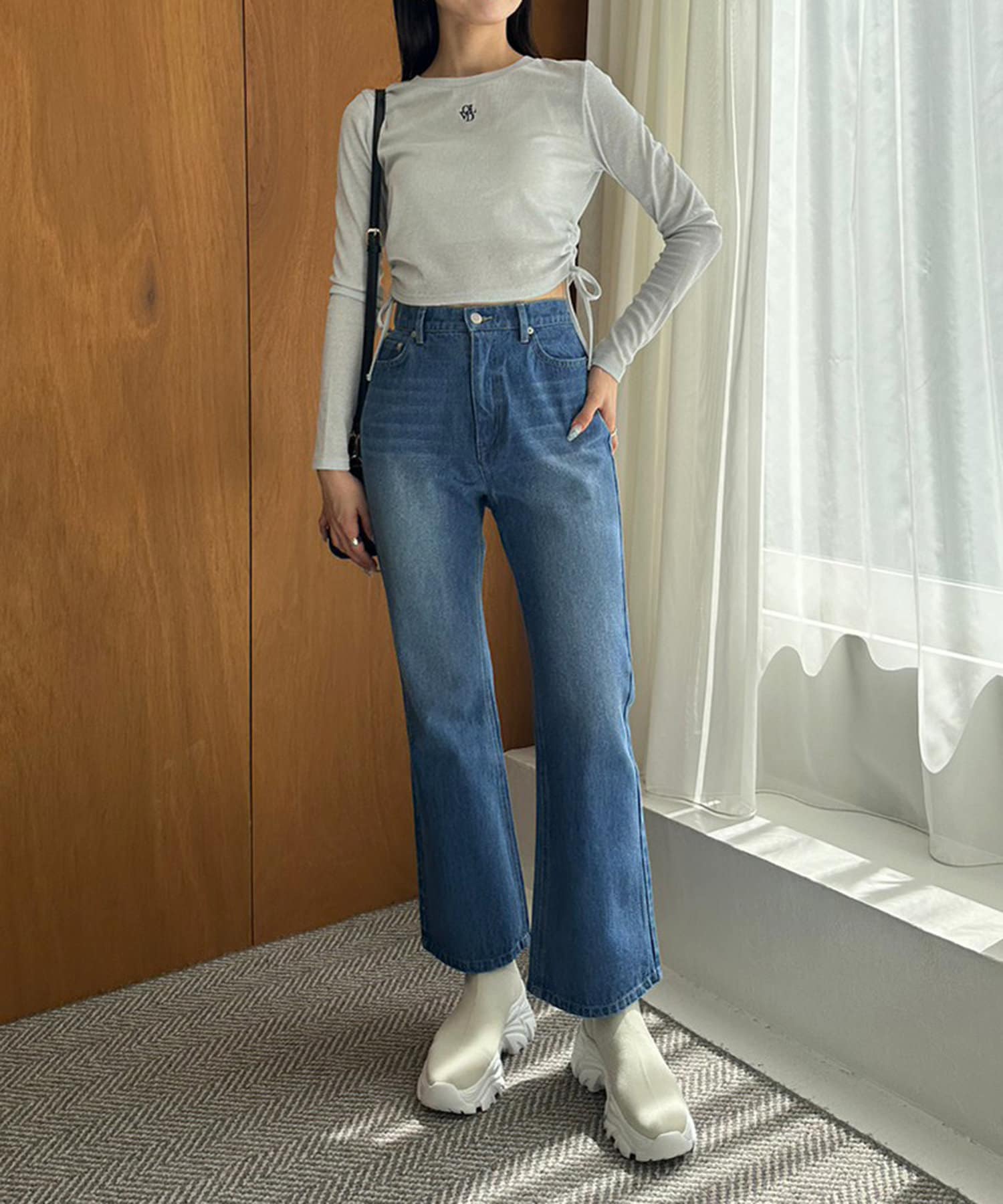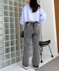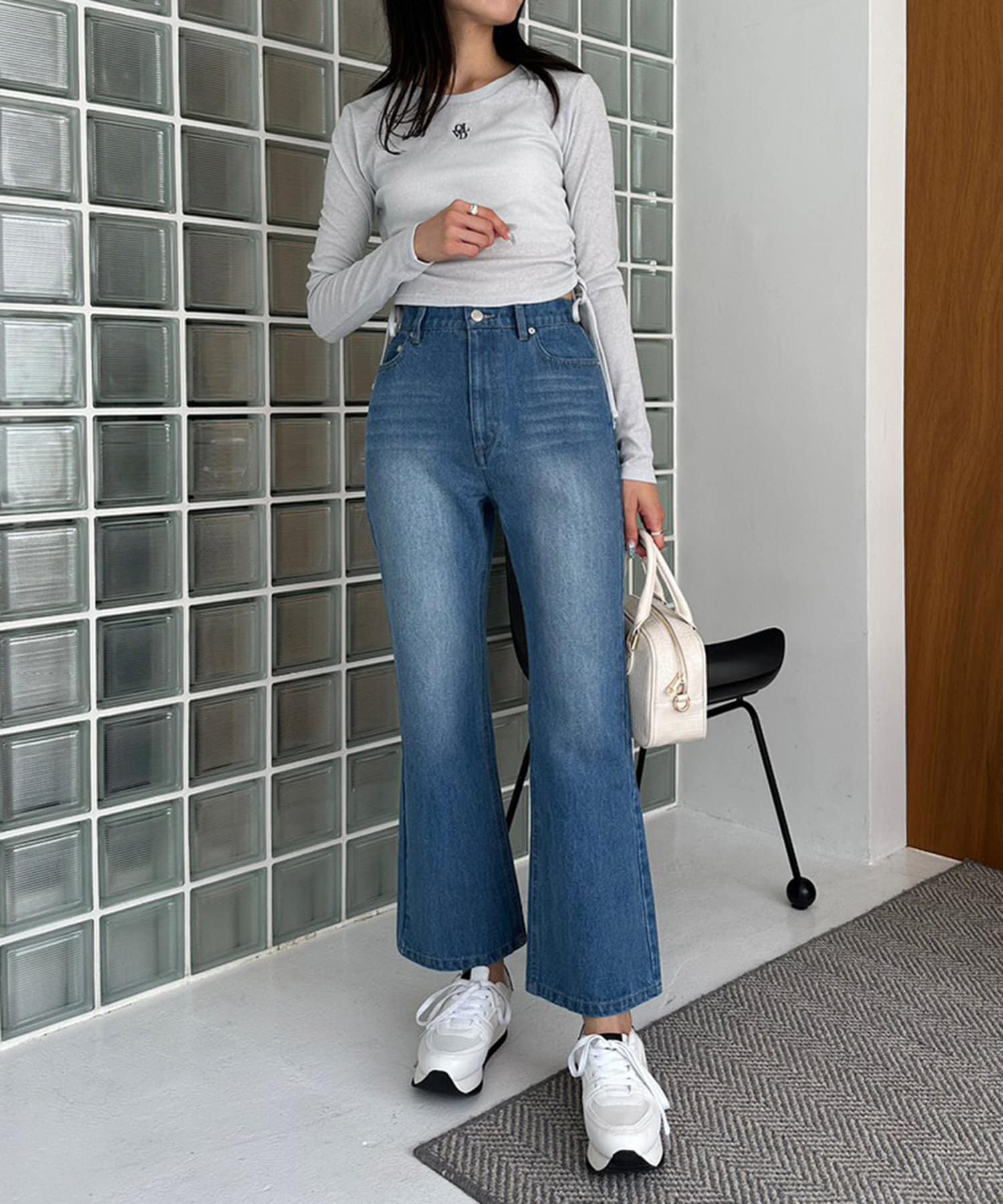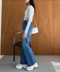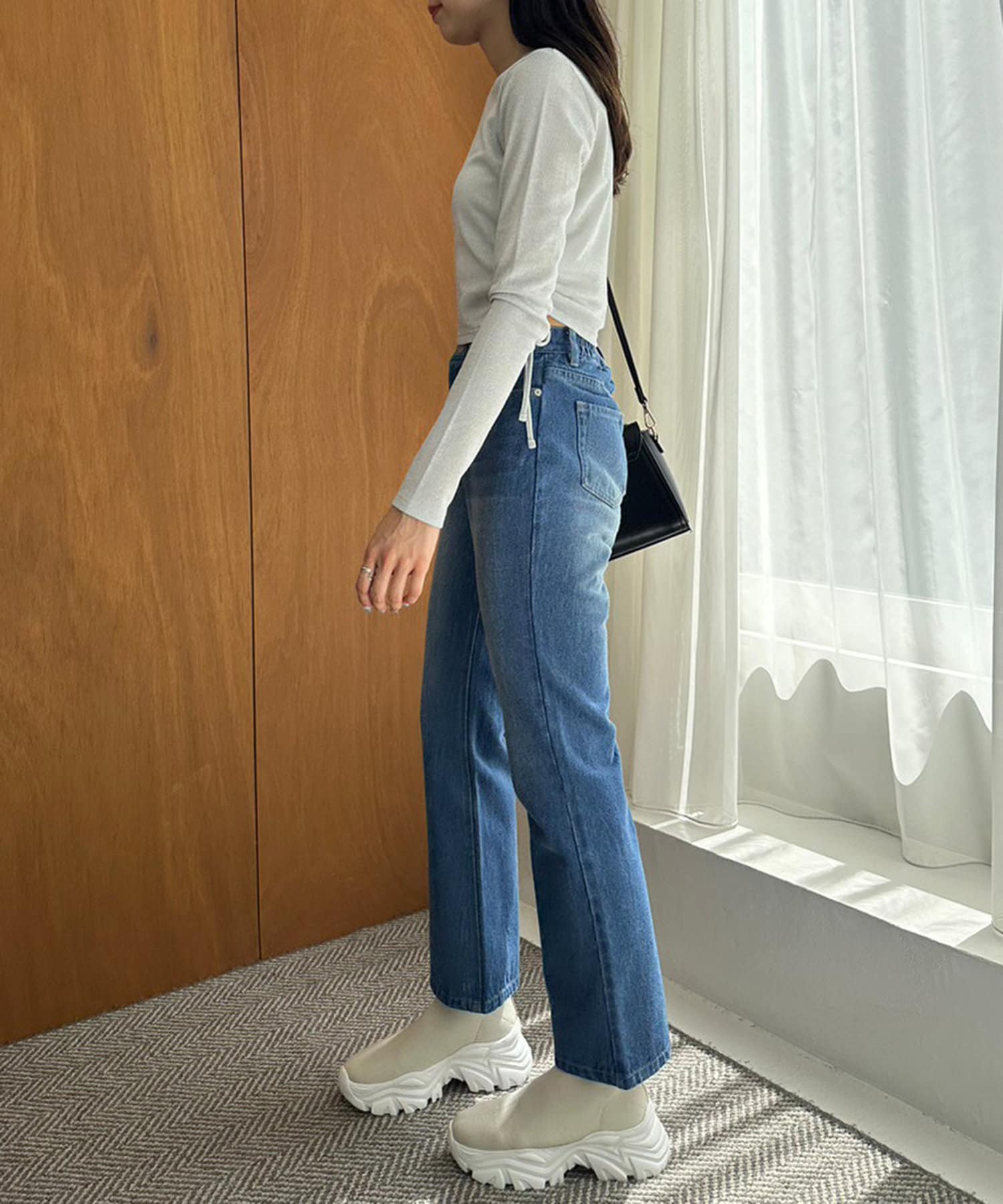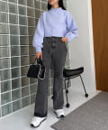 ・クロップド丈のトップスで合わせると今っぽいバランスに。