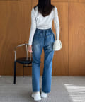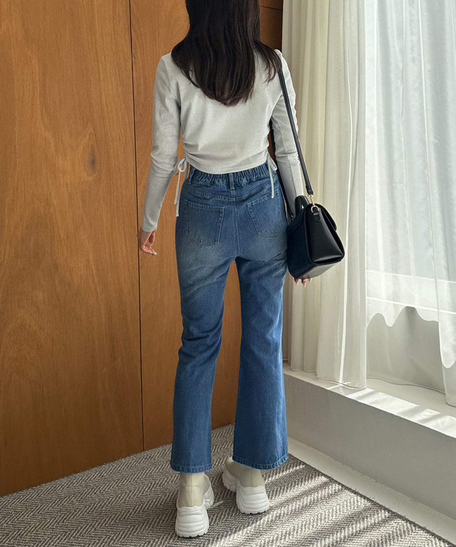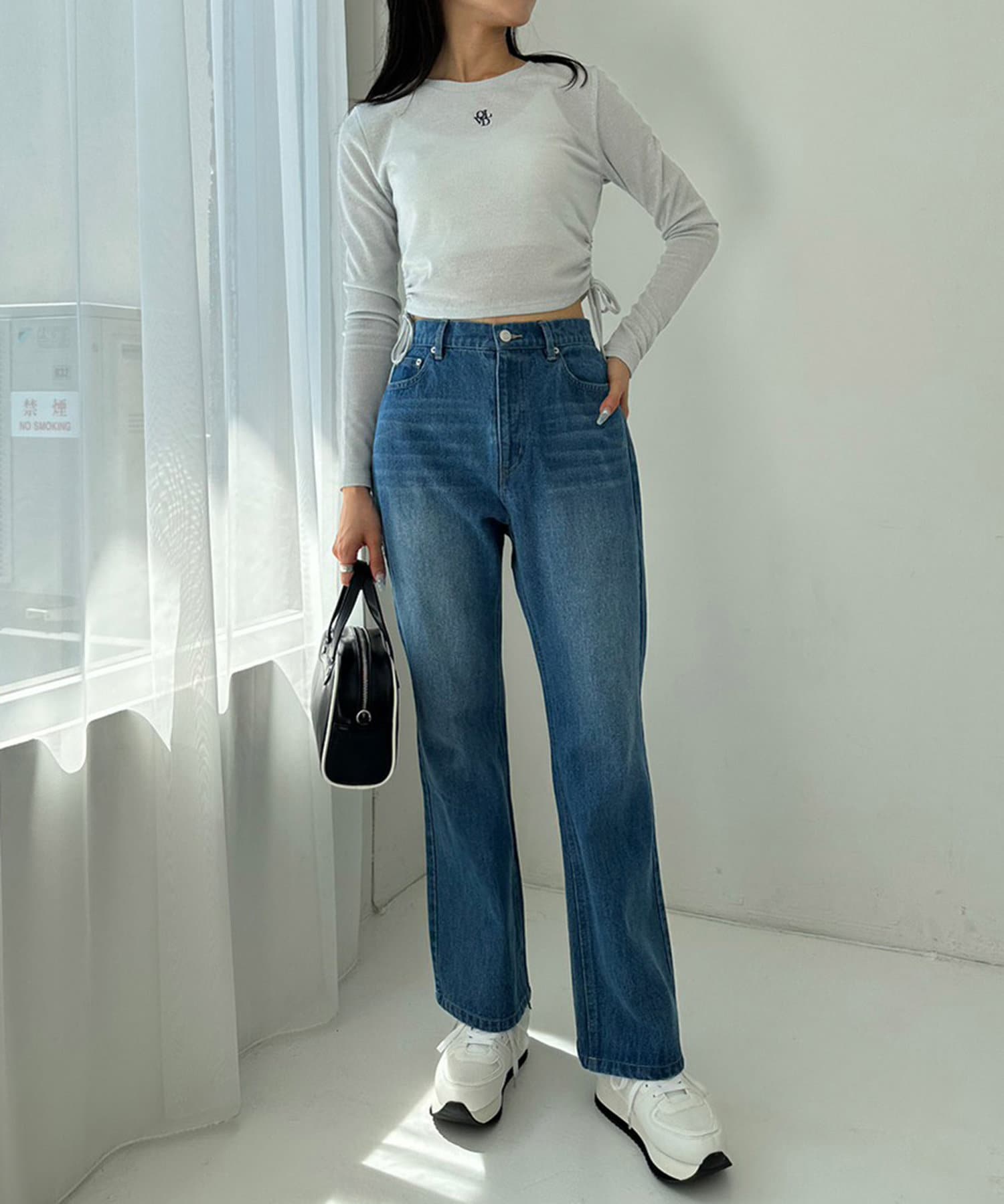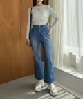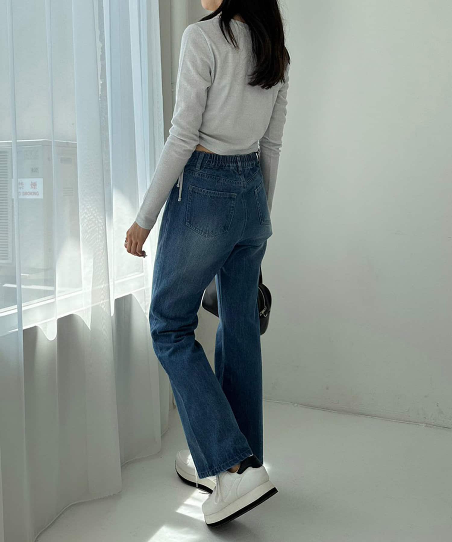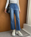 ・クロップド丈のトップスで合わせると今っぽいバランスに。
