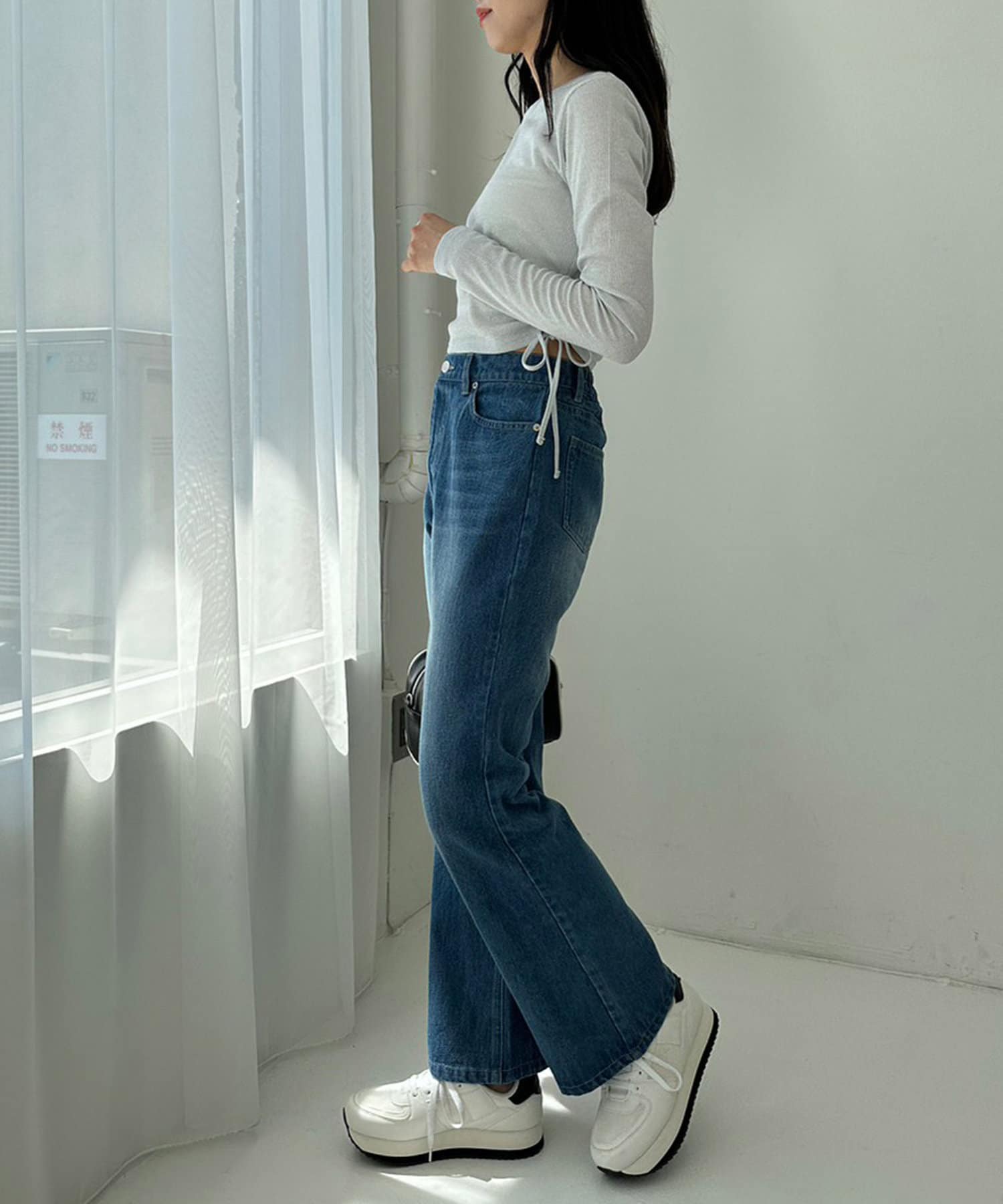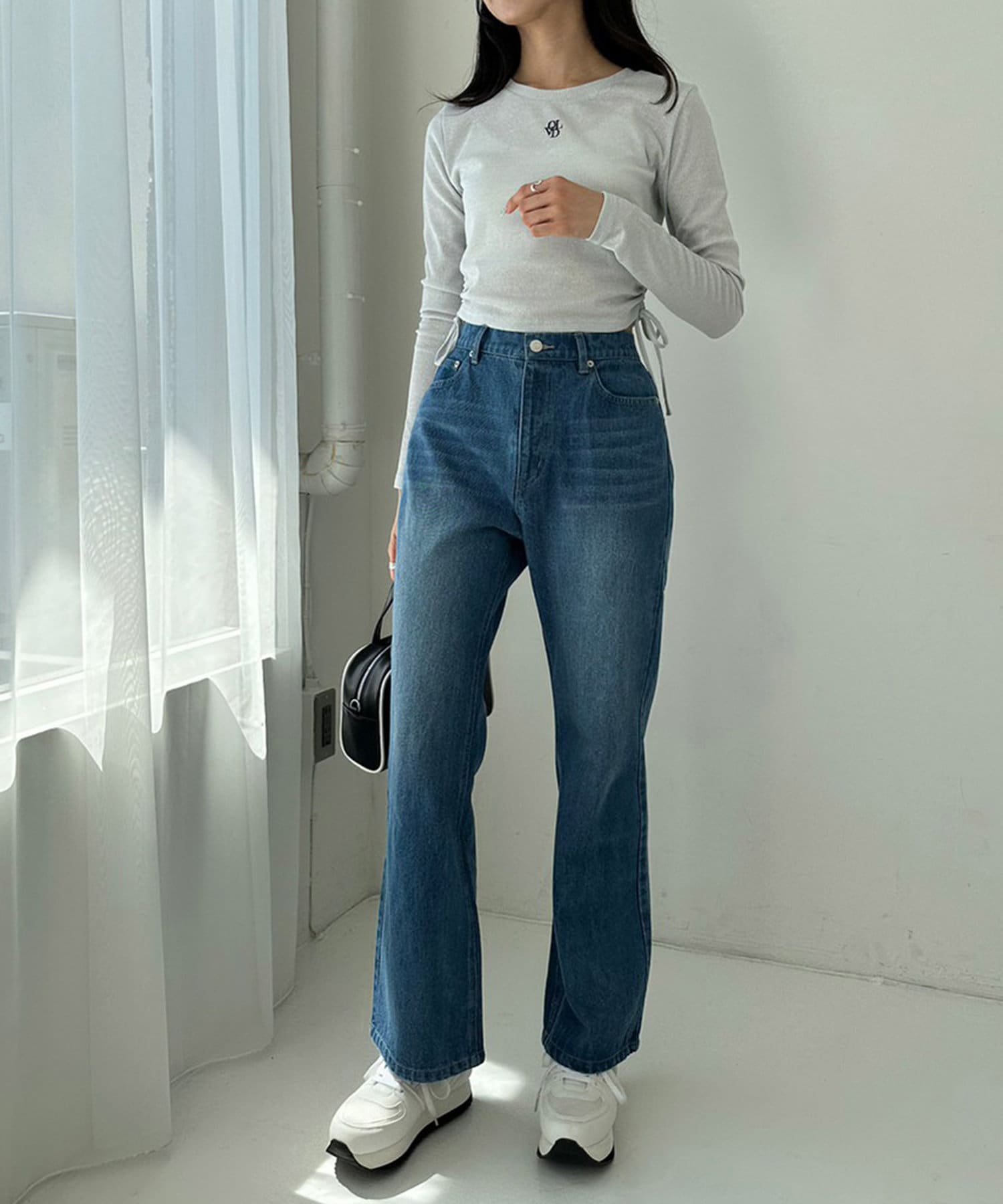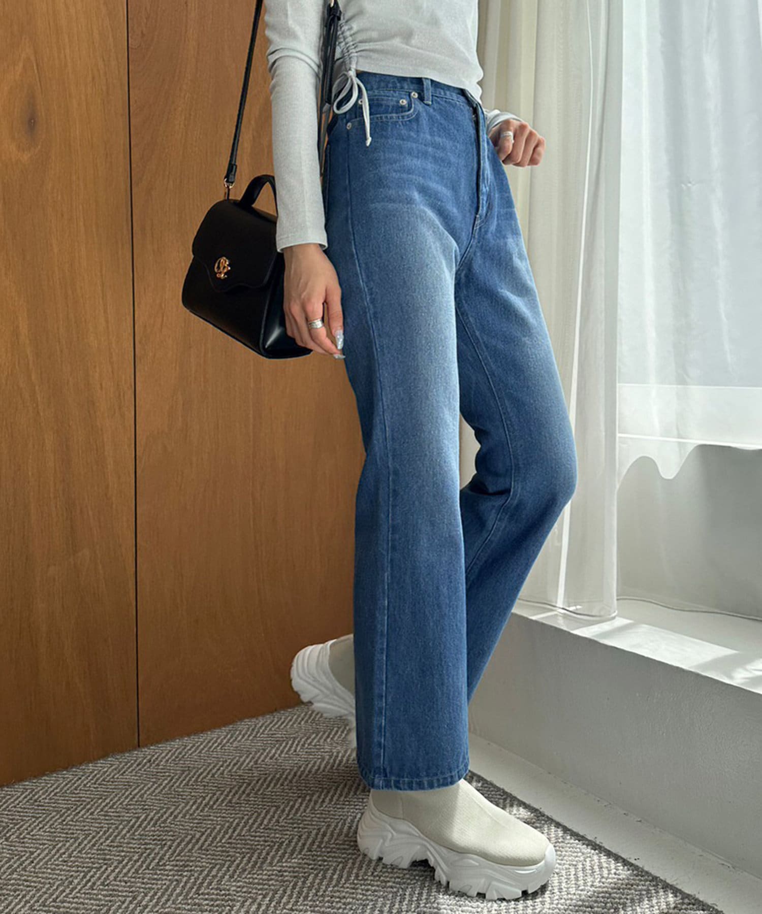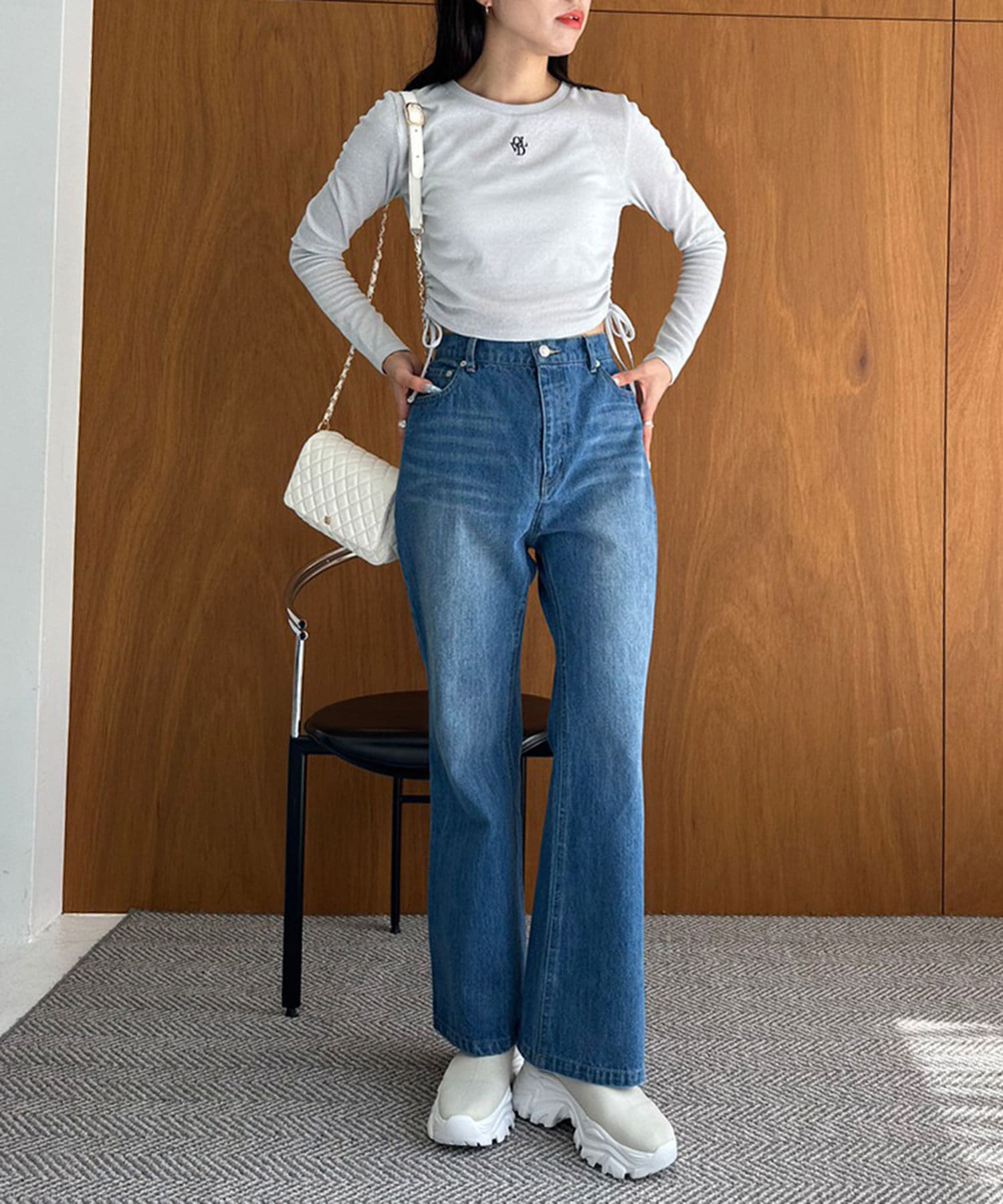 ・クロップド丈のトップスで合わせると今っぽいバランスに。