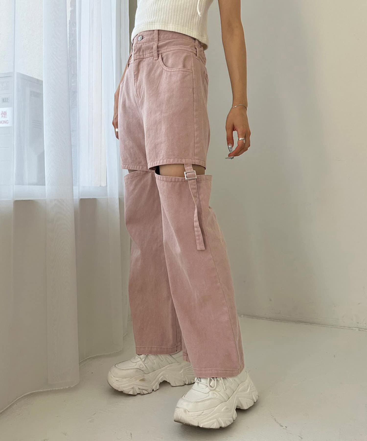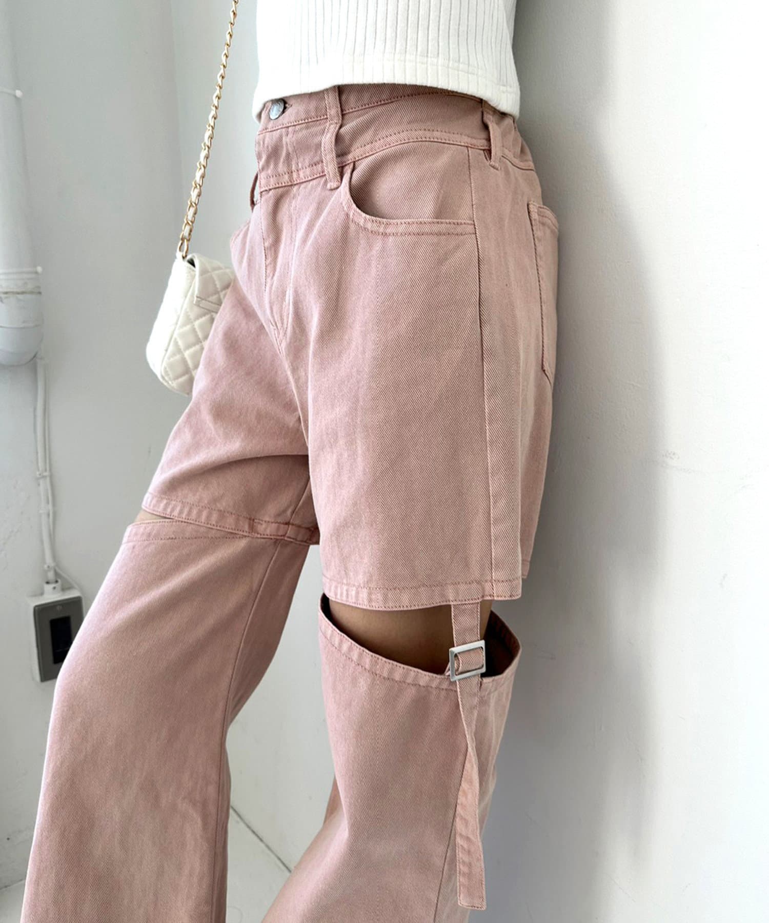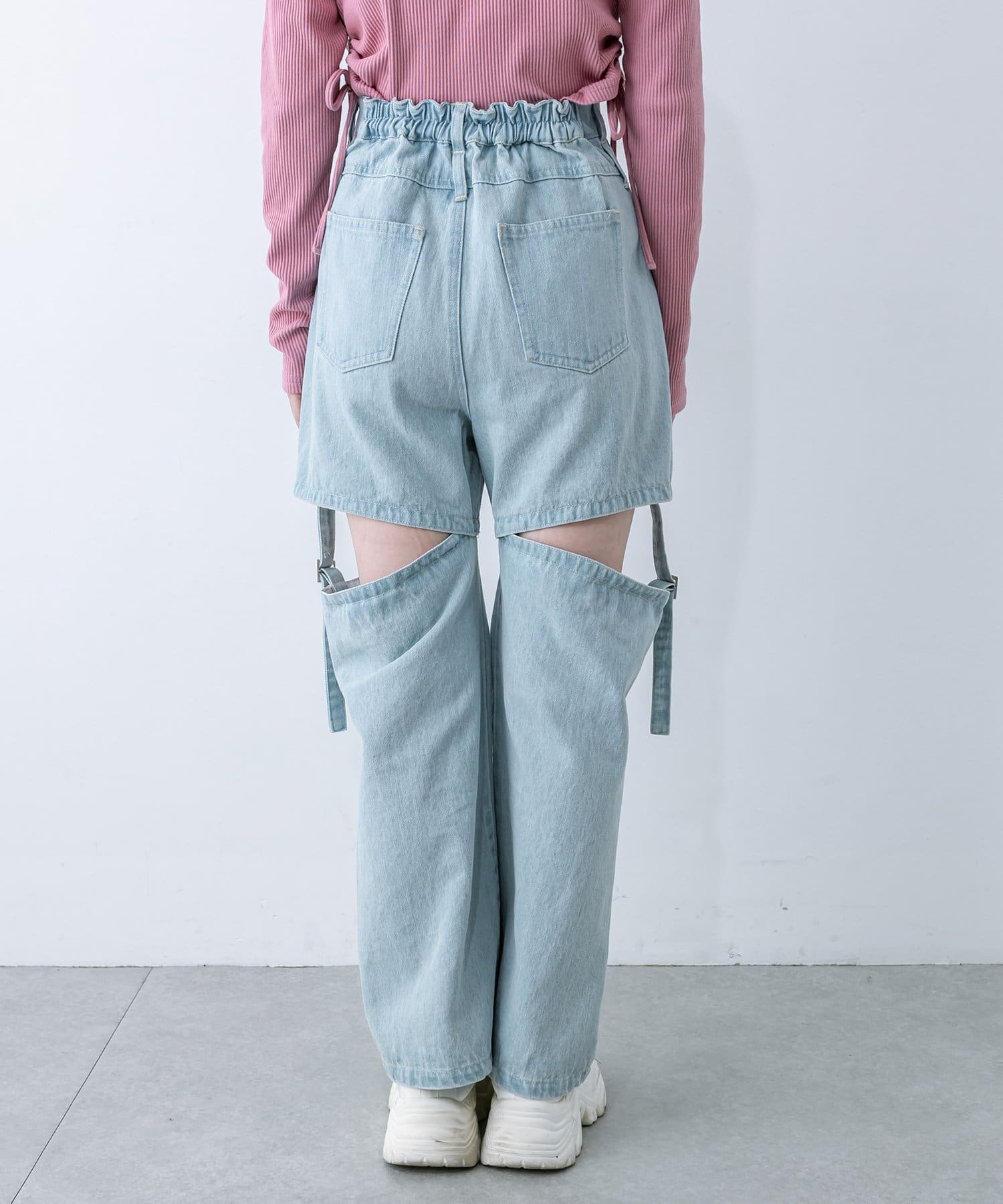 OLIVE des OLIVE(オリーブ デ オリーブ) サイドベルト肌見せデニムパンツ