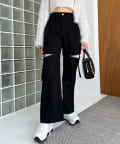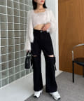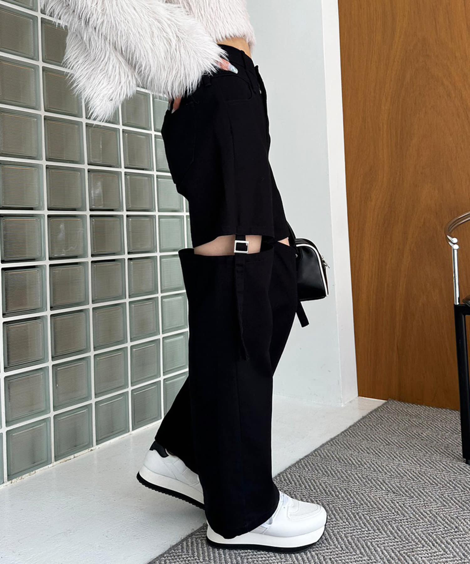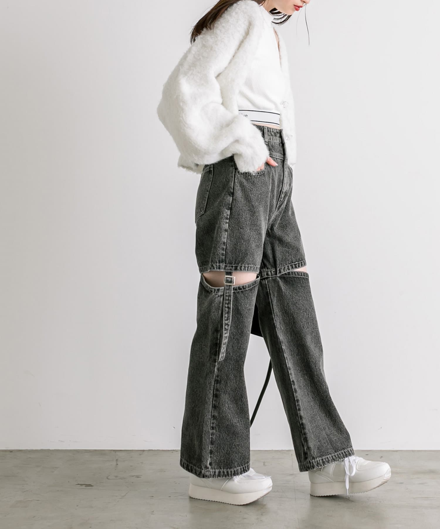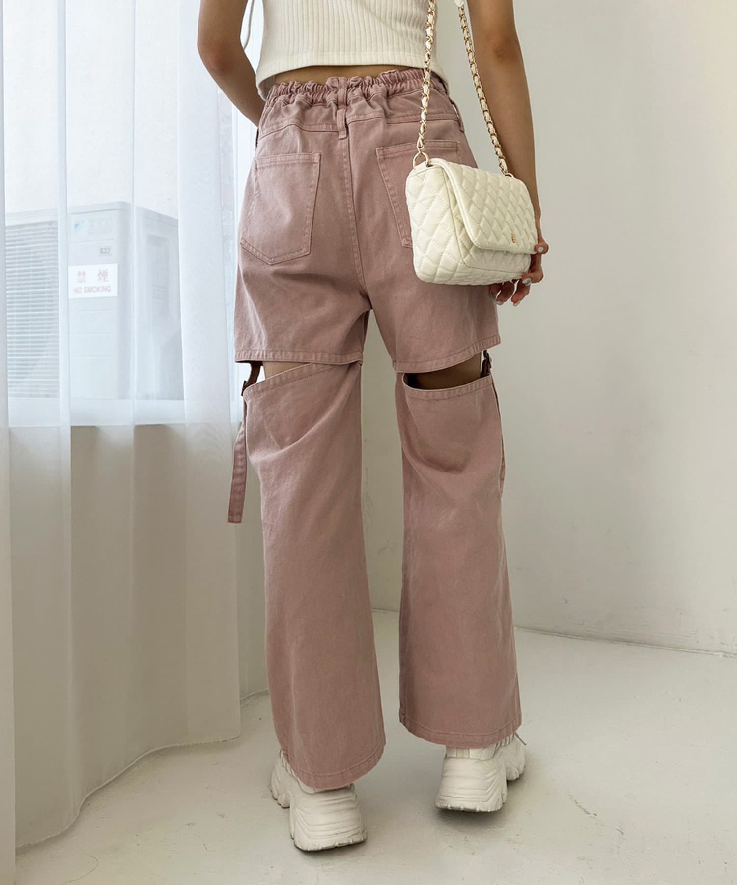 OLIVE des OLIVE(オリーブ デ オリーブ) サイドベルト肌見せデニムパンツ