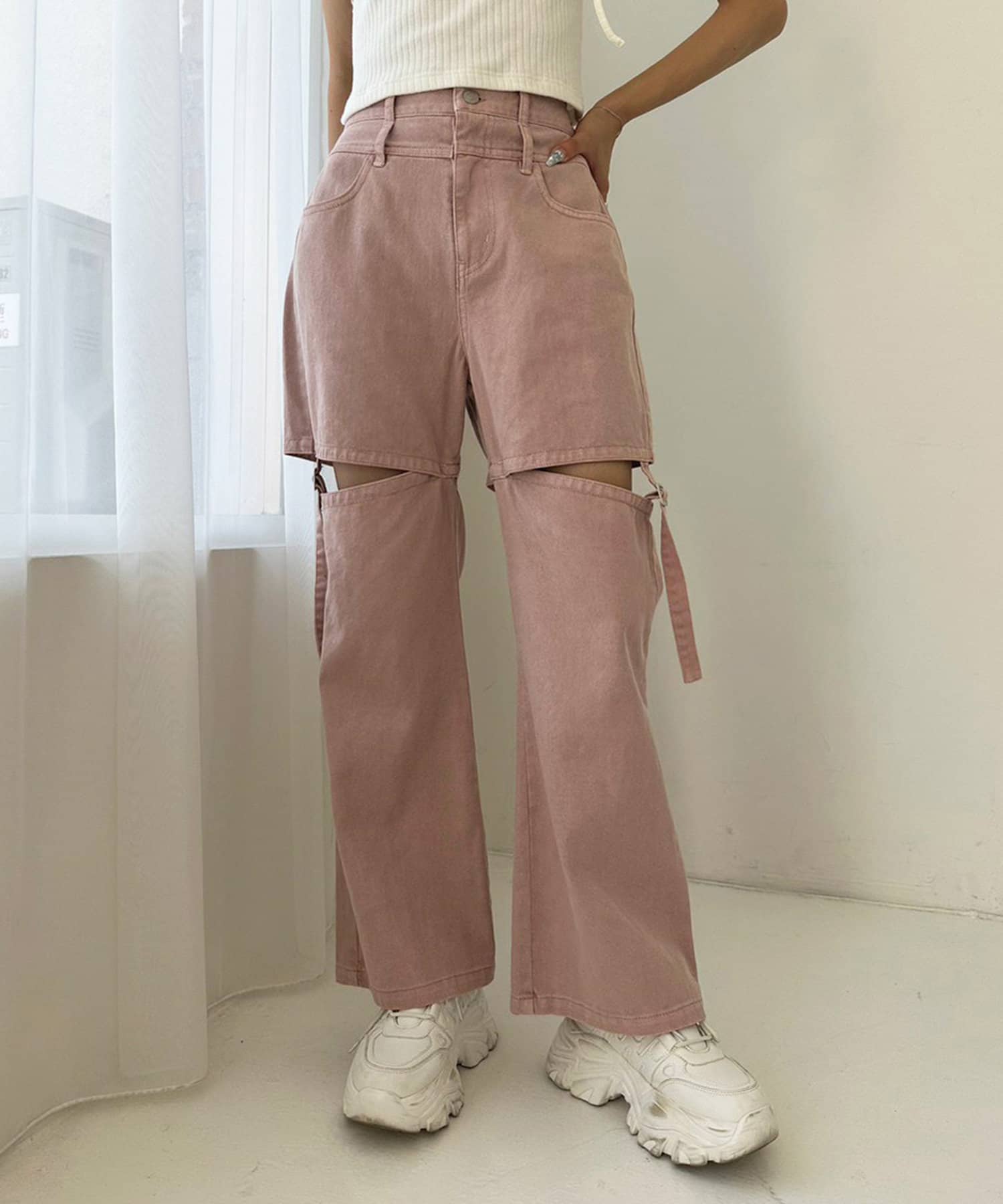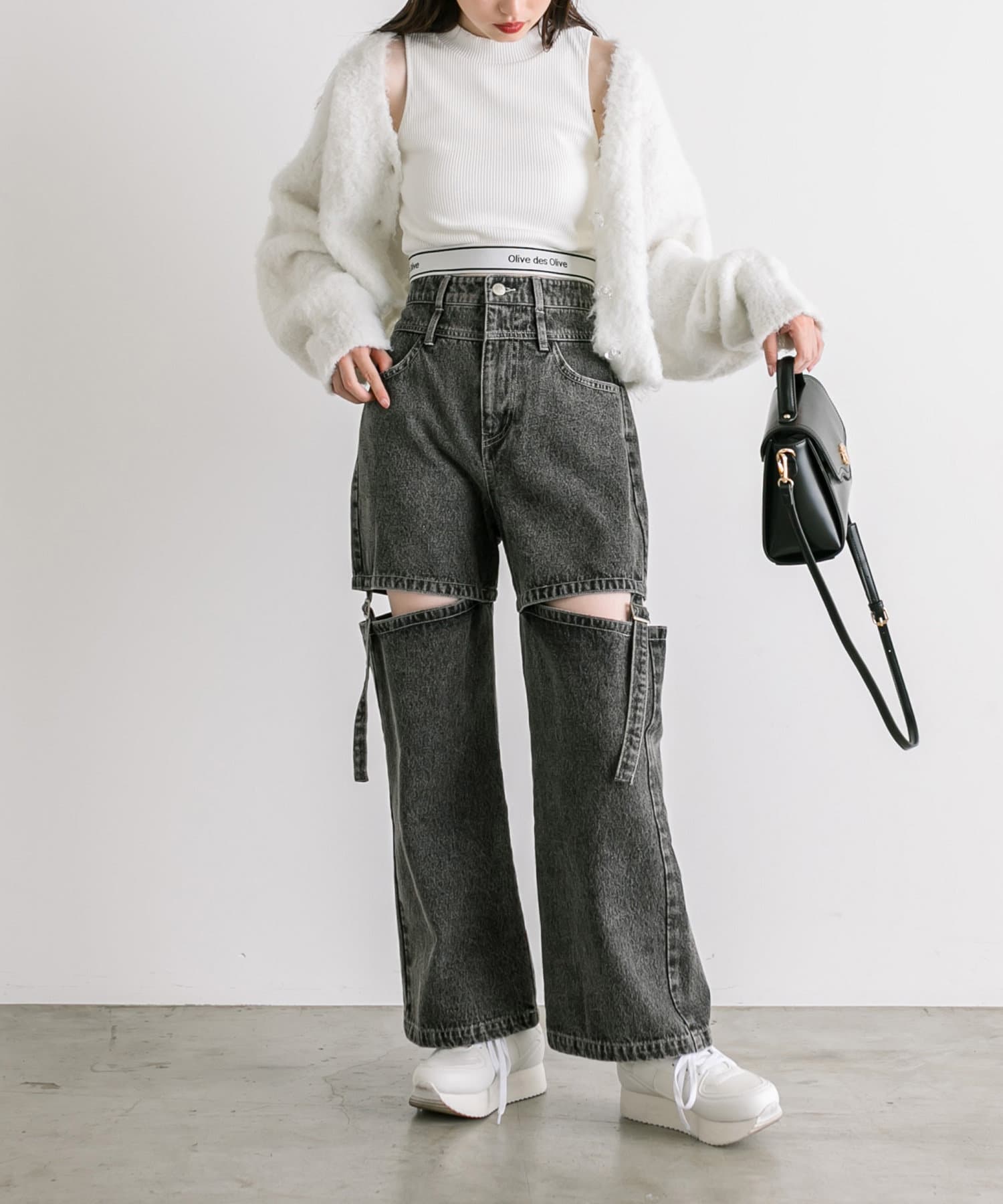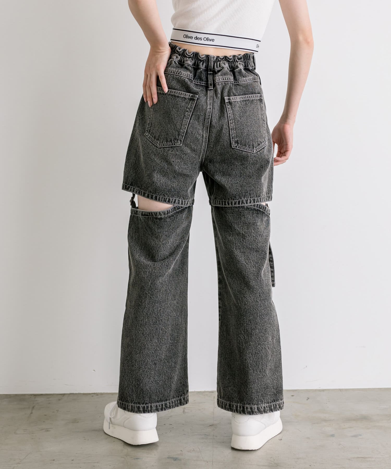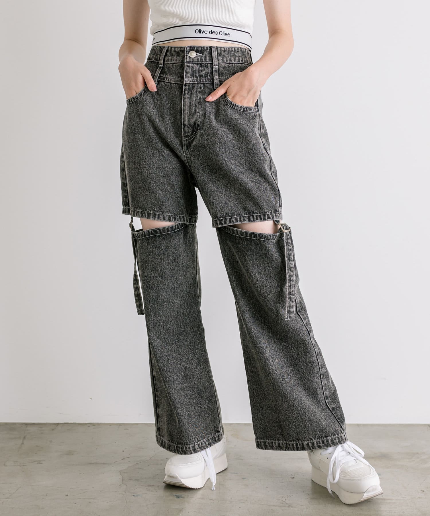 • OLIVE des OLIVE(オリーブ デ オリーブ) サイドベルト肌見せデニムパンツ