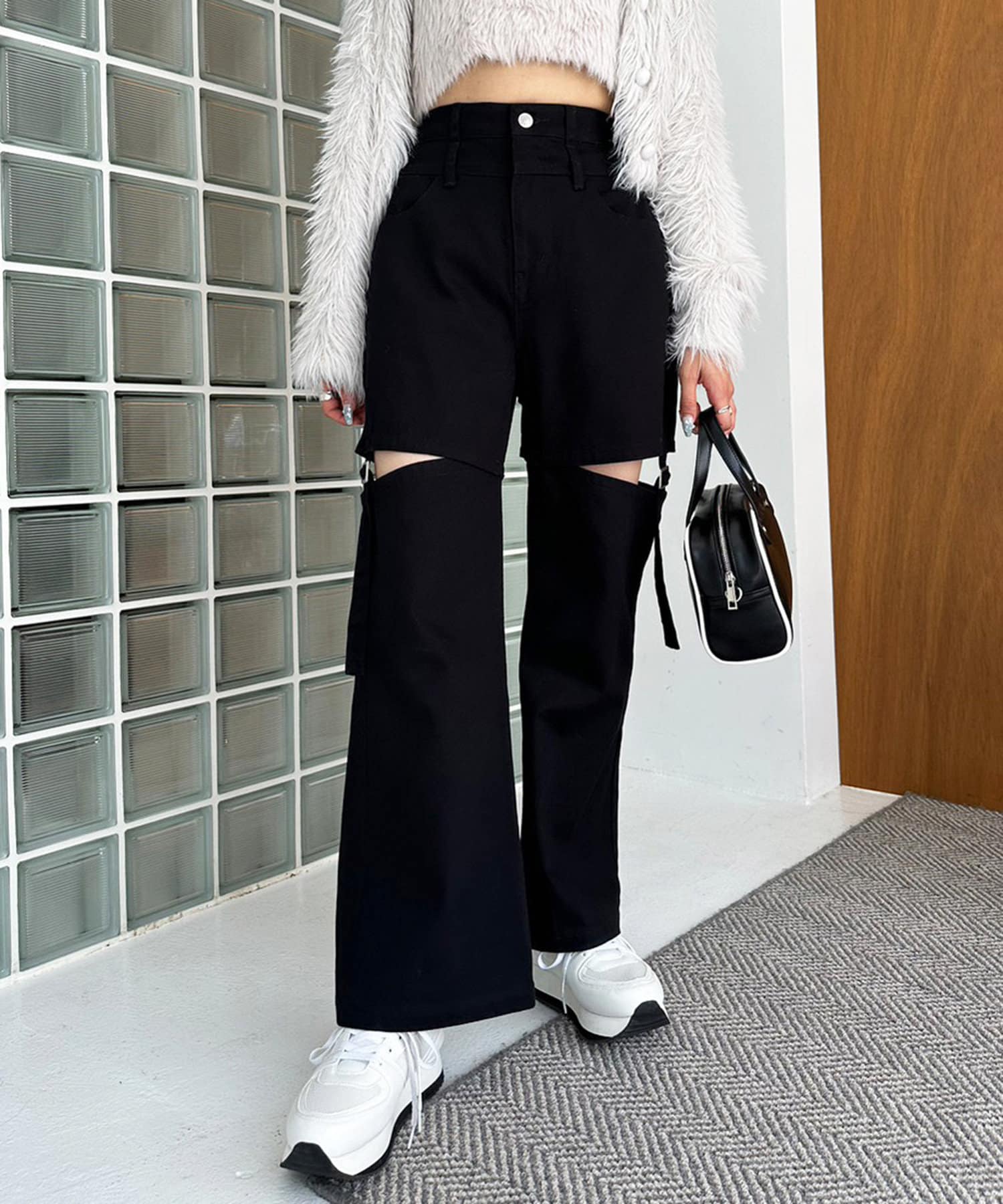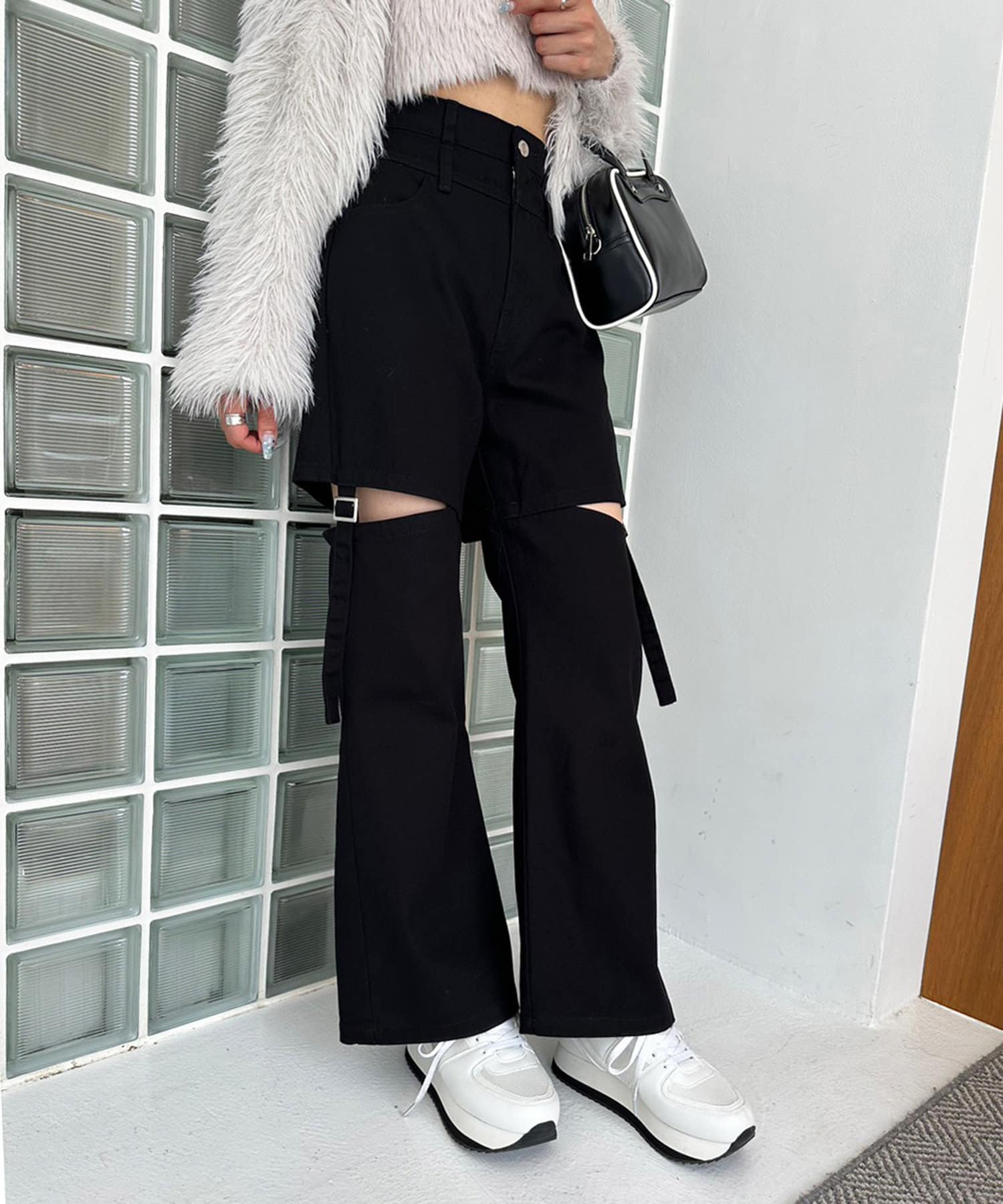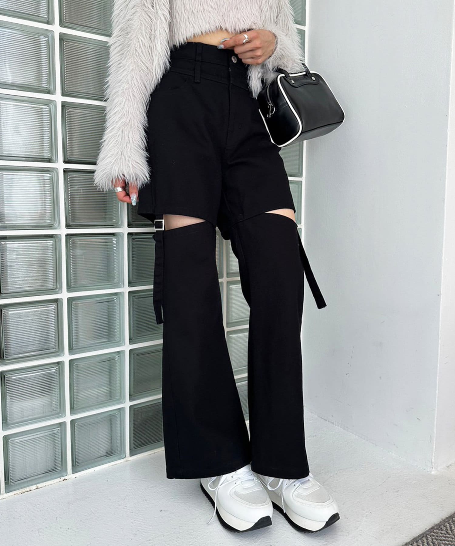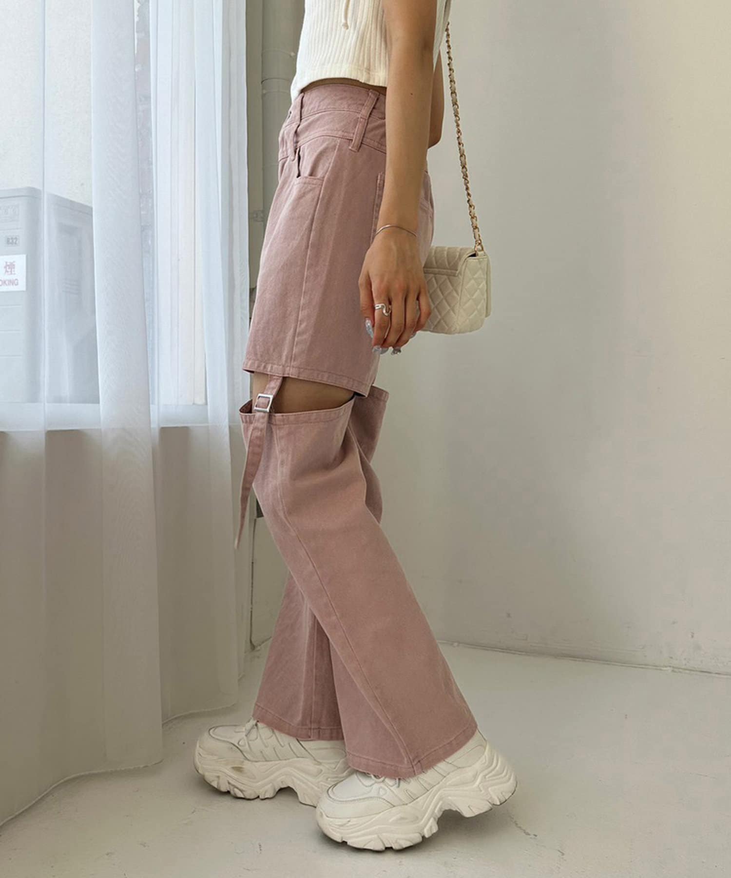 • OLIVE des OLIVE(オリーブ デ オリーブ) サイドベルト肌見せデニムパンツ