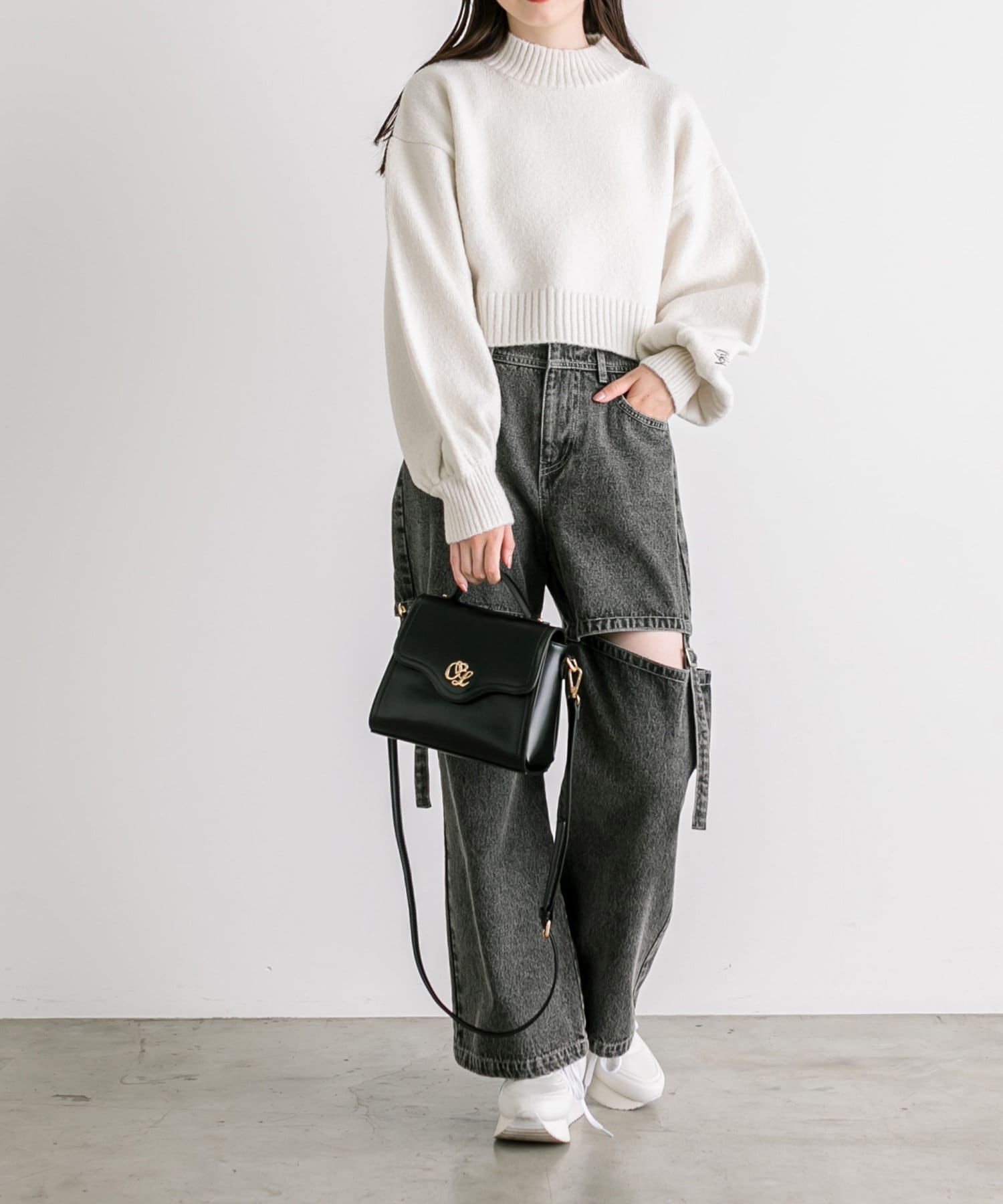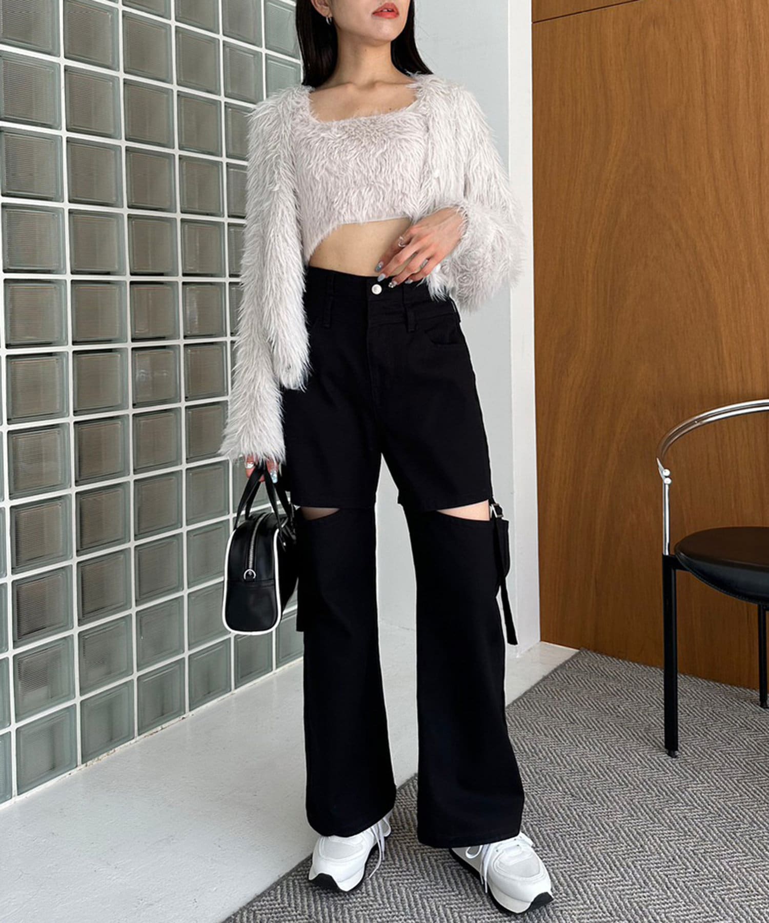 ︎スタイリング・カップ付きインナーにクロップド丈カーディガンを合わせるのがおすすめ。