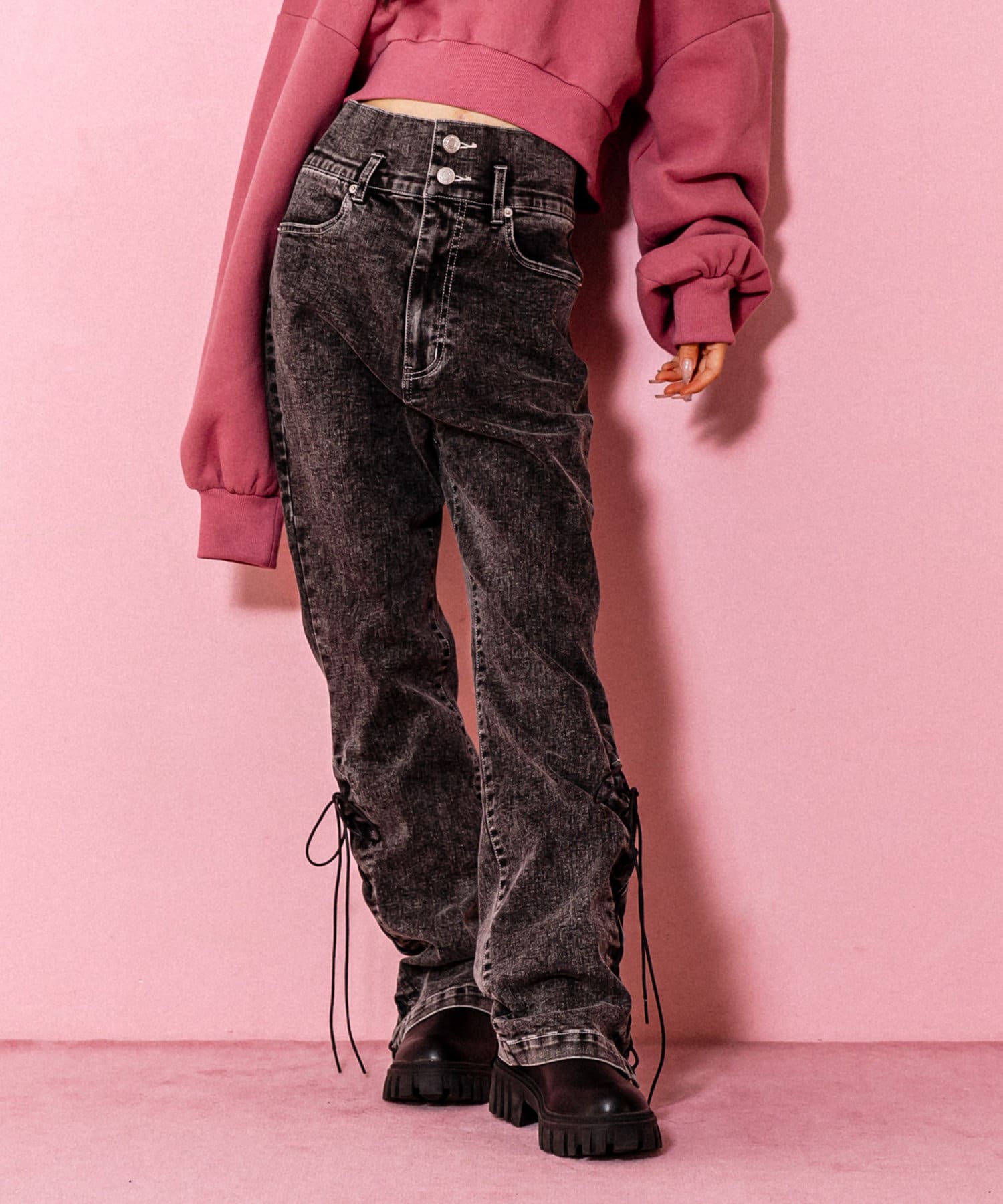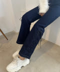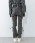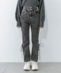 レースアップフレアデニムパンツ