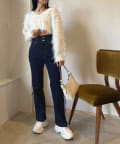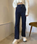 ・膝下から程よく広がるフレアラインで美脚見えするデニムパンツ。