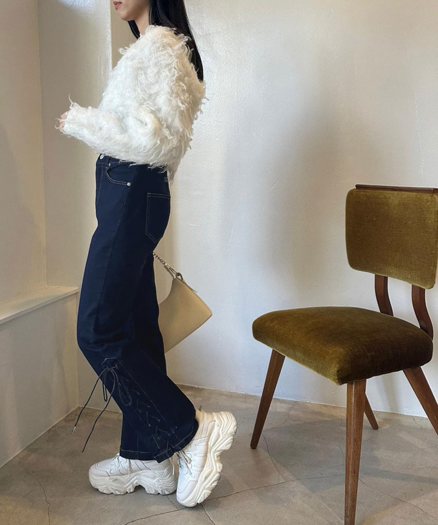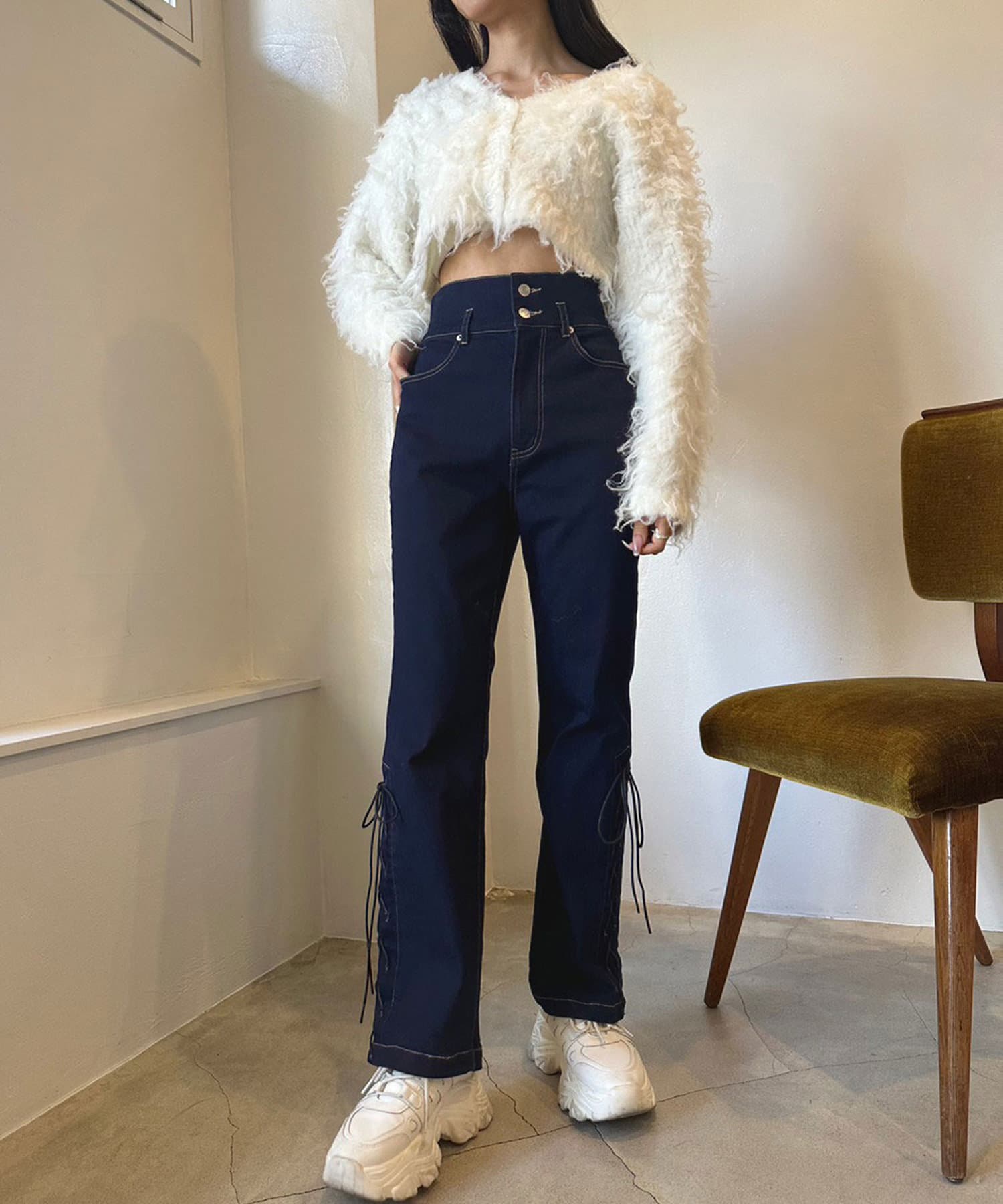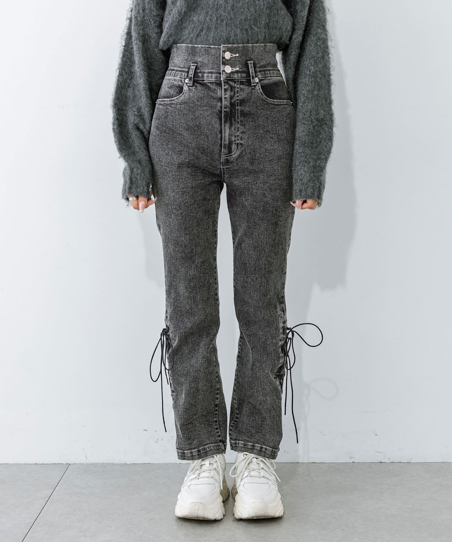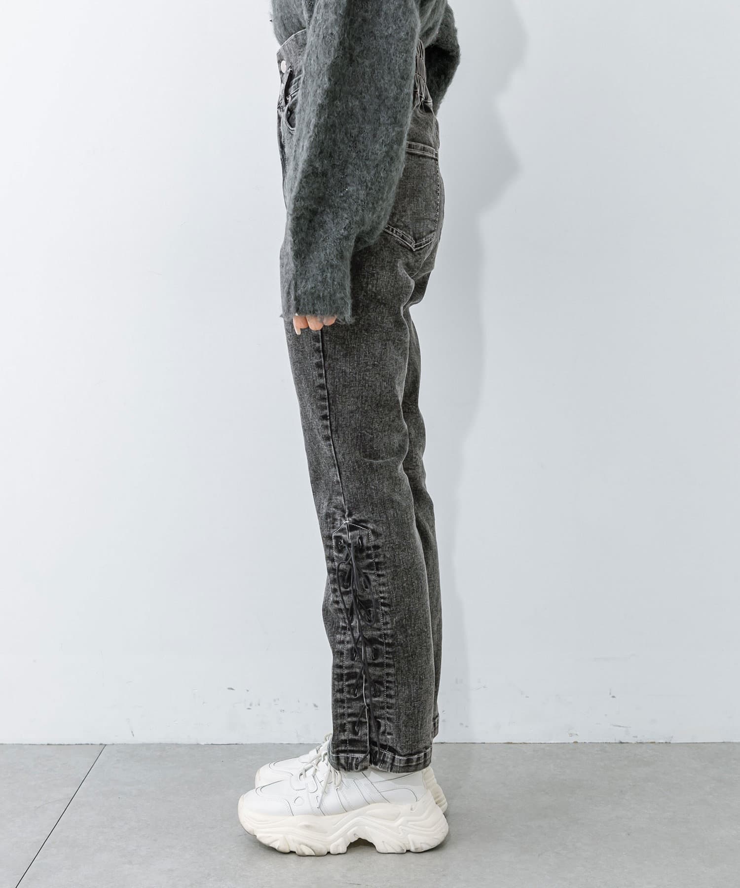 裾レースアップが可愛い美シルエットデニムパンツ
