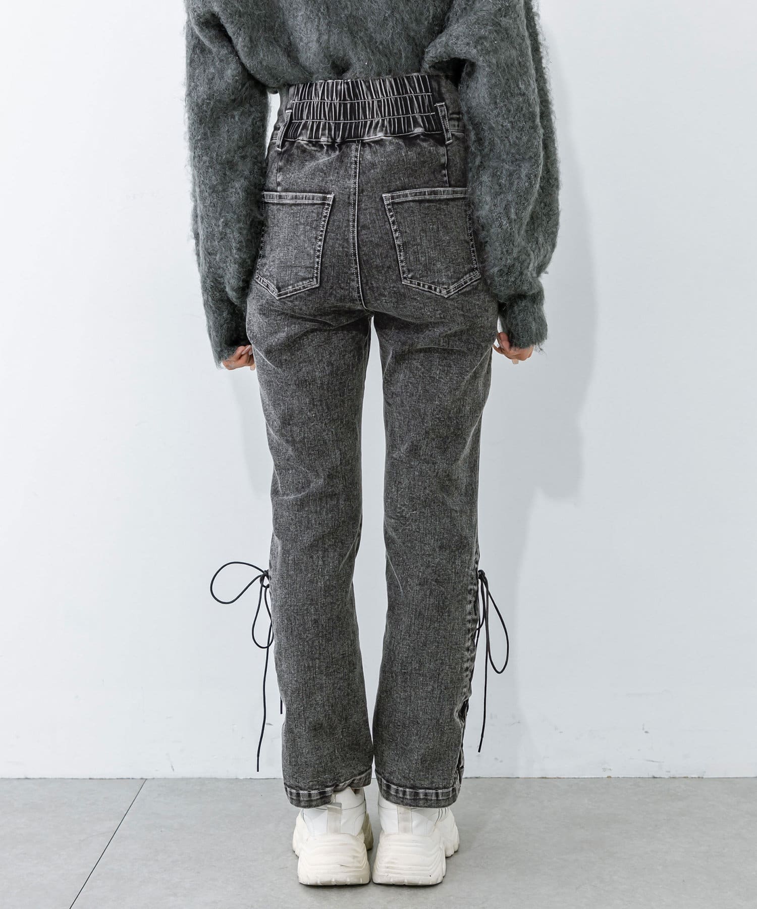 ・裾はレースアップデザインでカジュアルすぎず着こなせます。