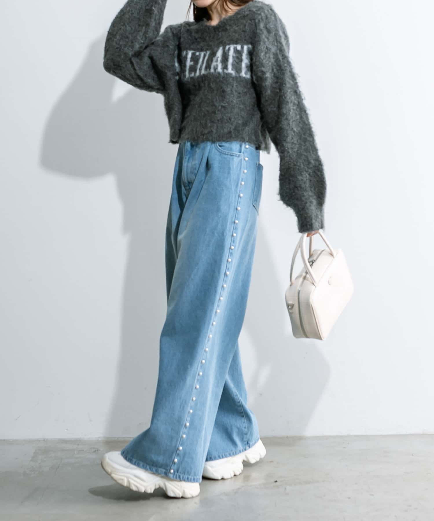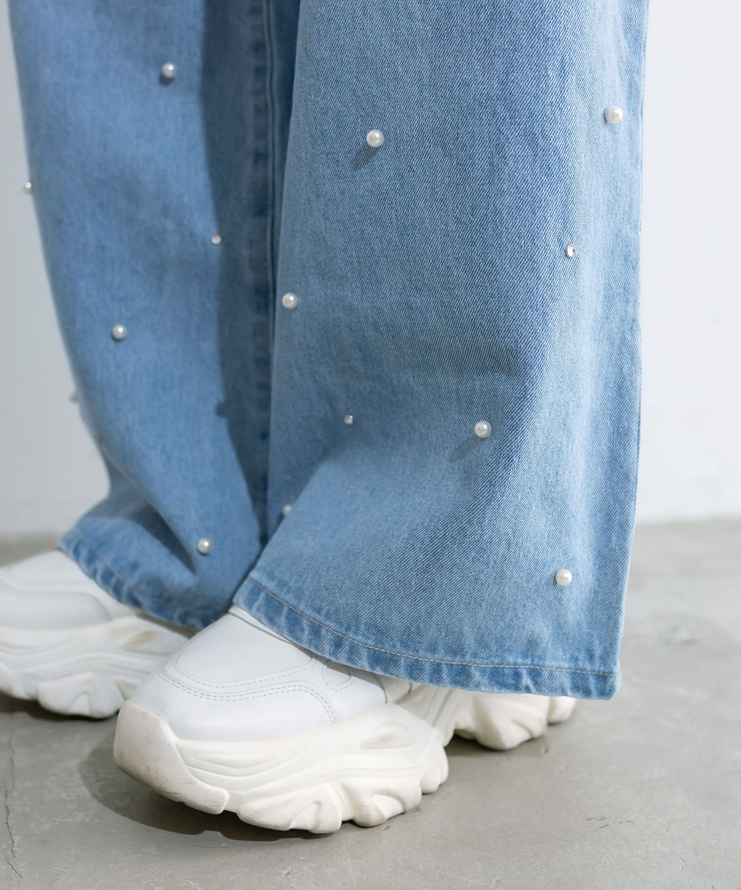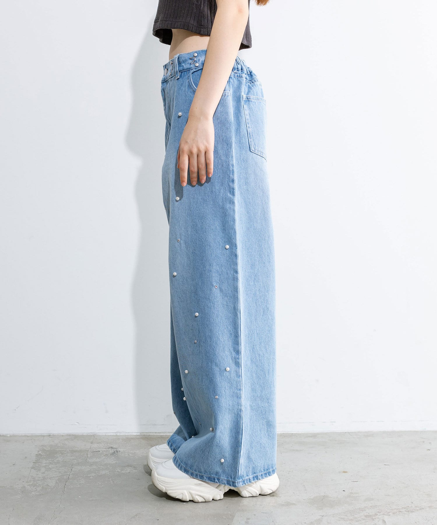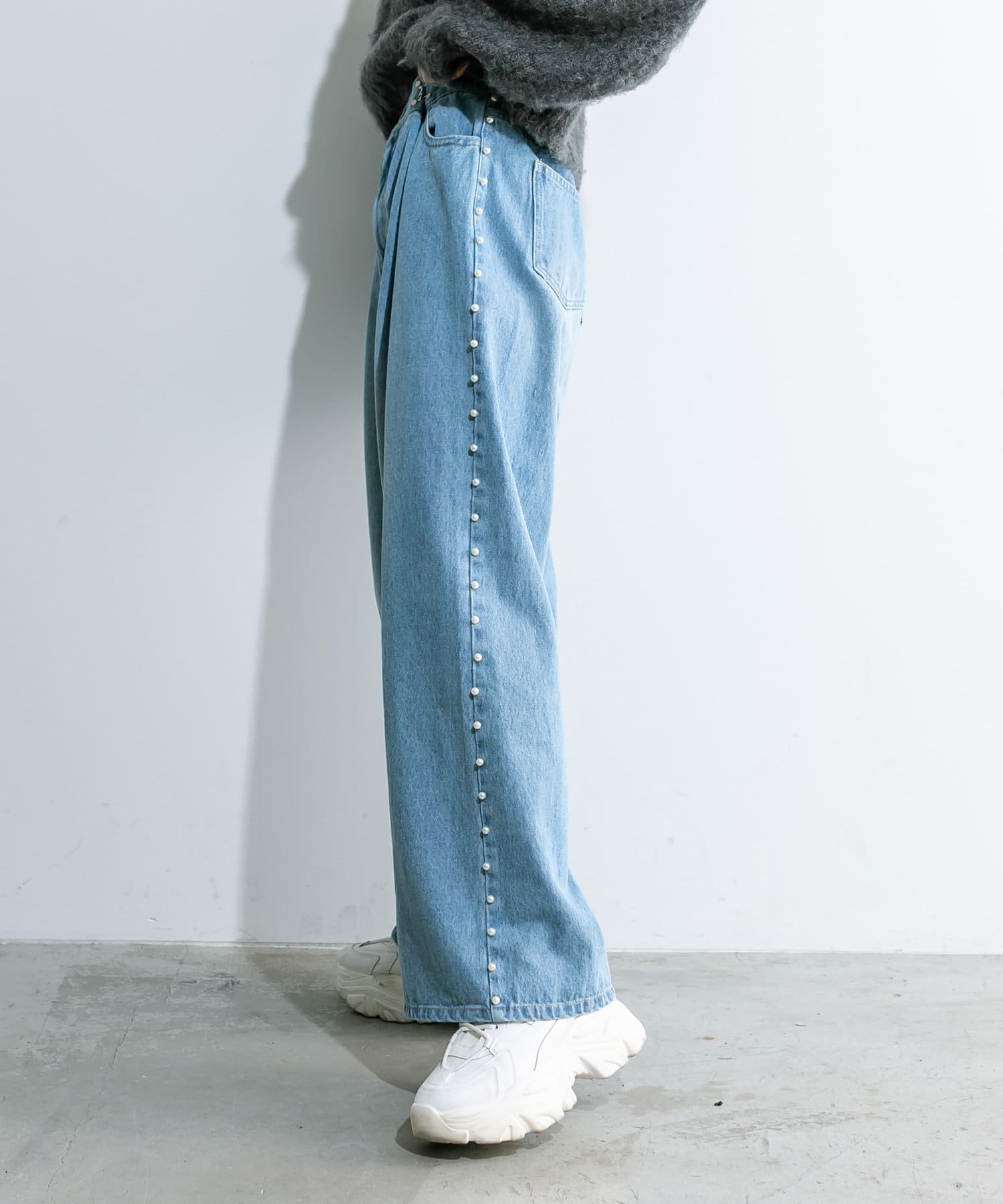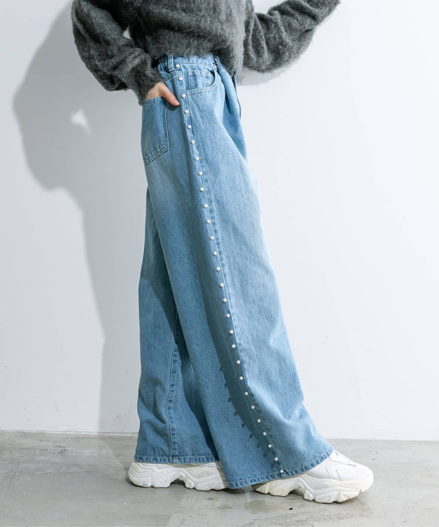 トレンドのパール付きワイドパンツが新たに登場