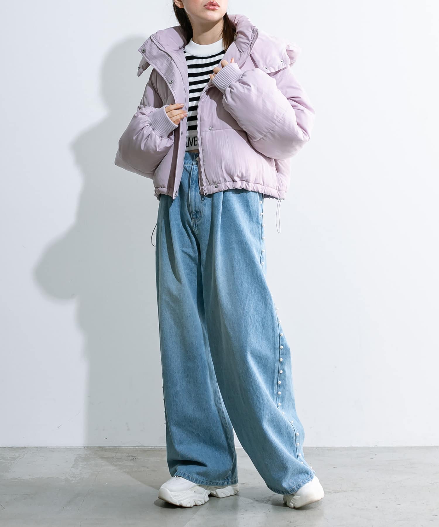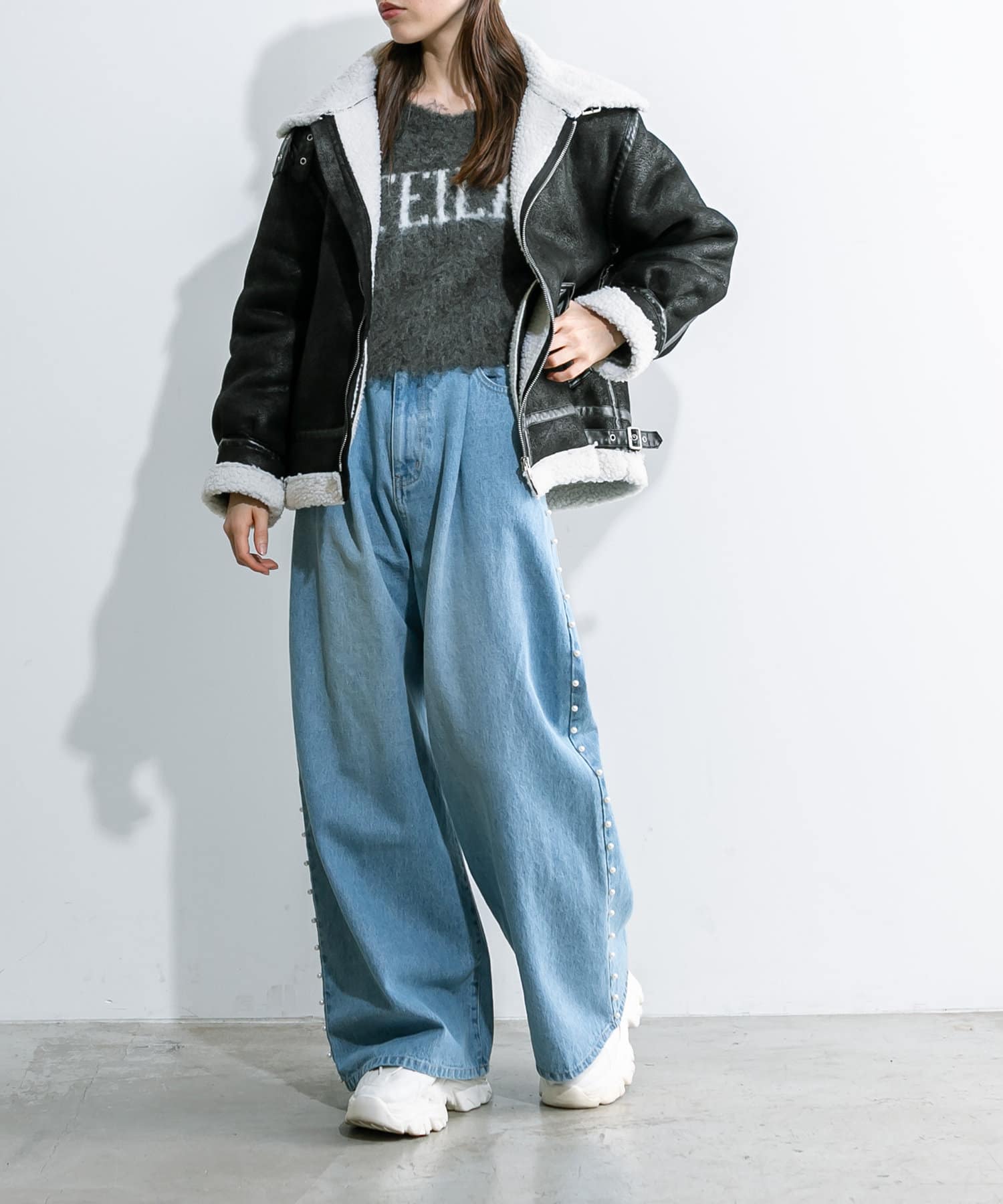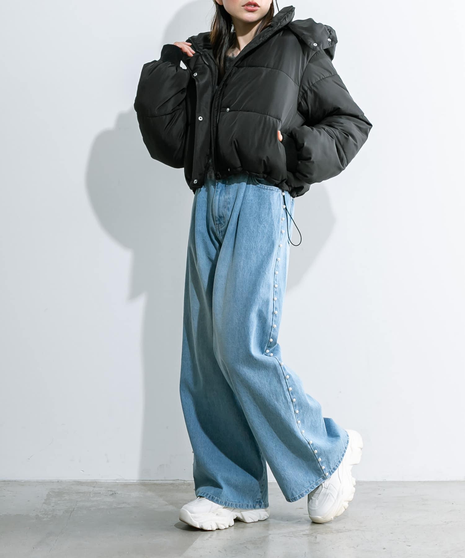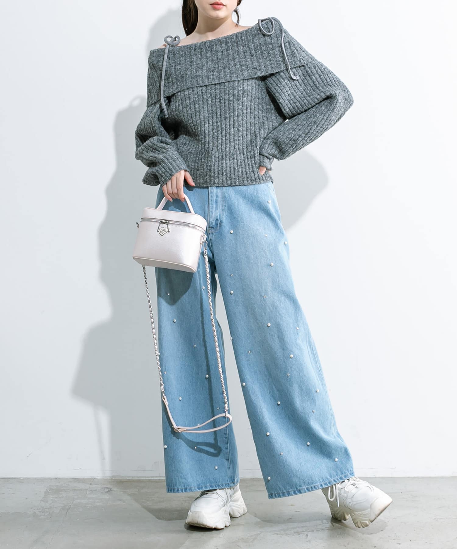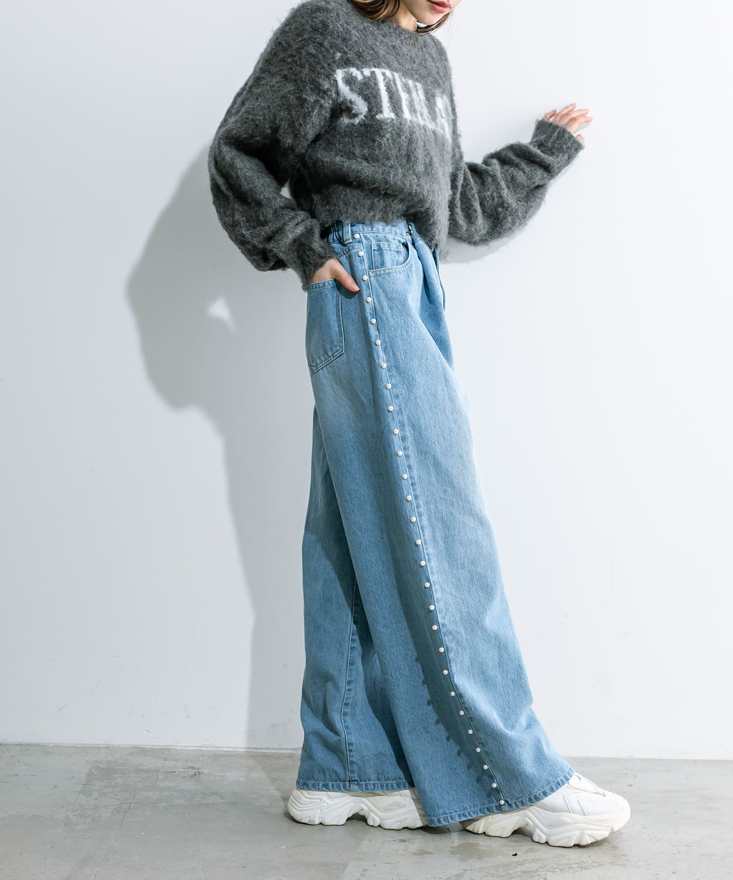 トレンドのパール付きワイドパンツが新たに登場