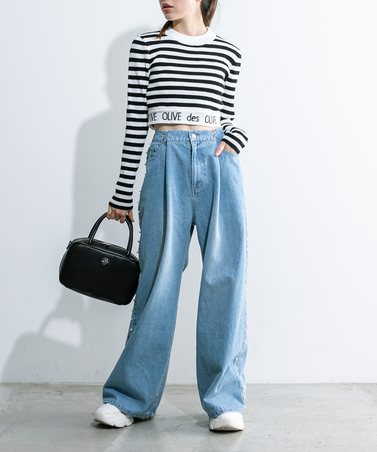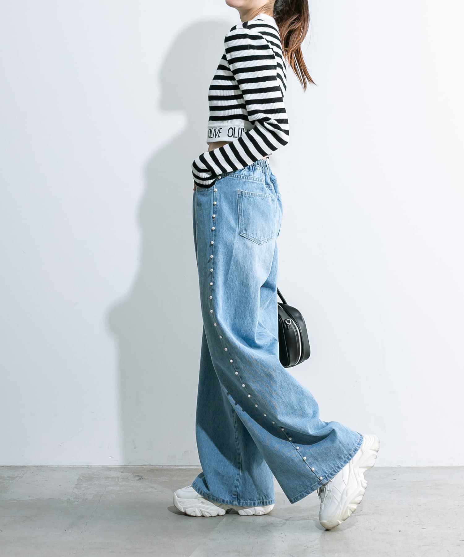 • OLIVE des OLIVE(オリーブ デ オリーブ) 2WAYライズキラキラデニムパンツ