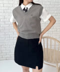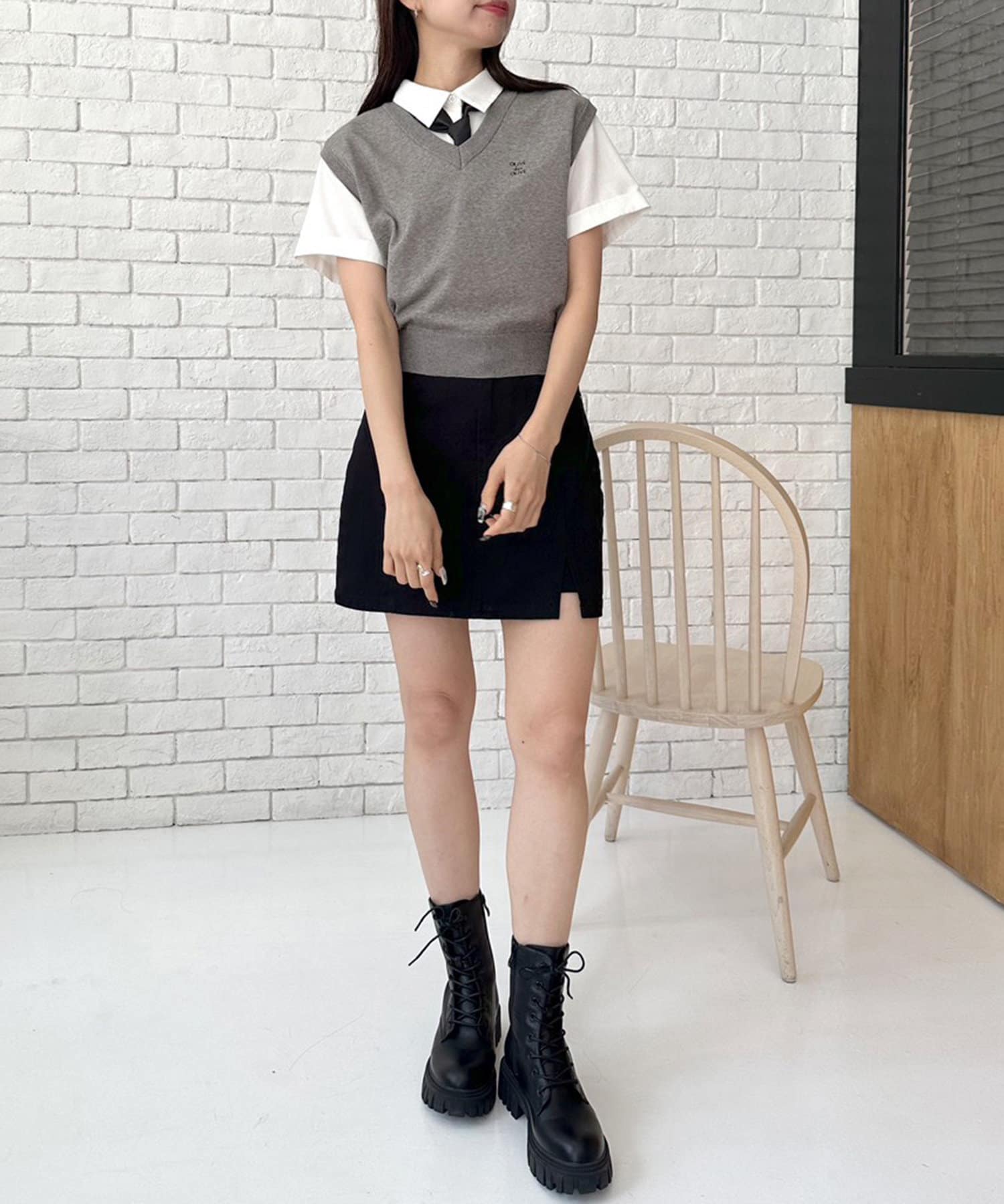 ・ワンポイント刺繍ニットベスト(品番: 1032050070)とのレイヤードもおすすめ。