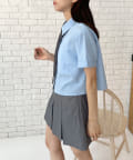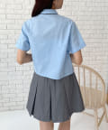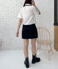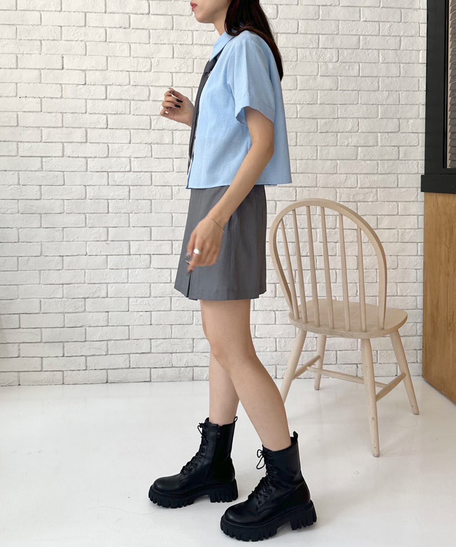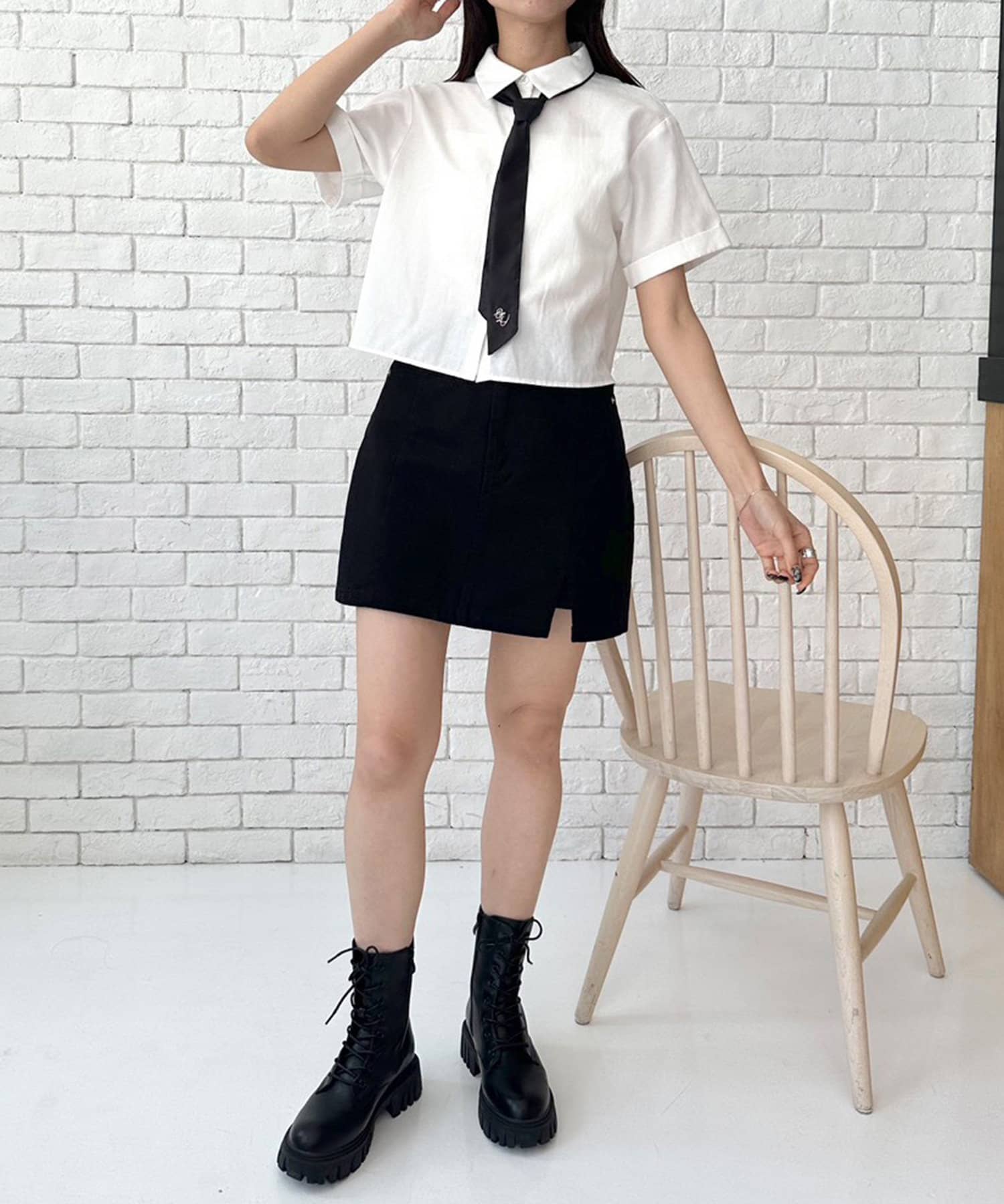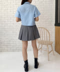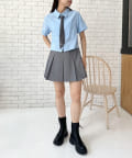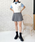 ・プリーツミニスカートを合わせればトレンドスタイルに。