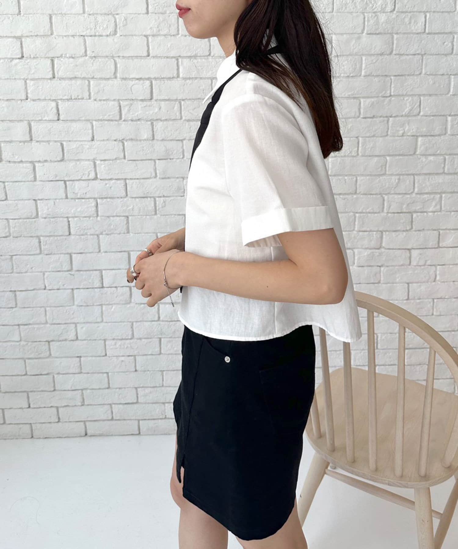 TOP > OLIVE des OLIVE > レディース > トップス > シャツ/ブラウス(ボタン) > タイ付半袖シャツ