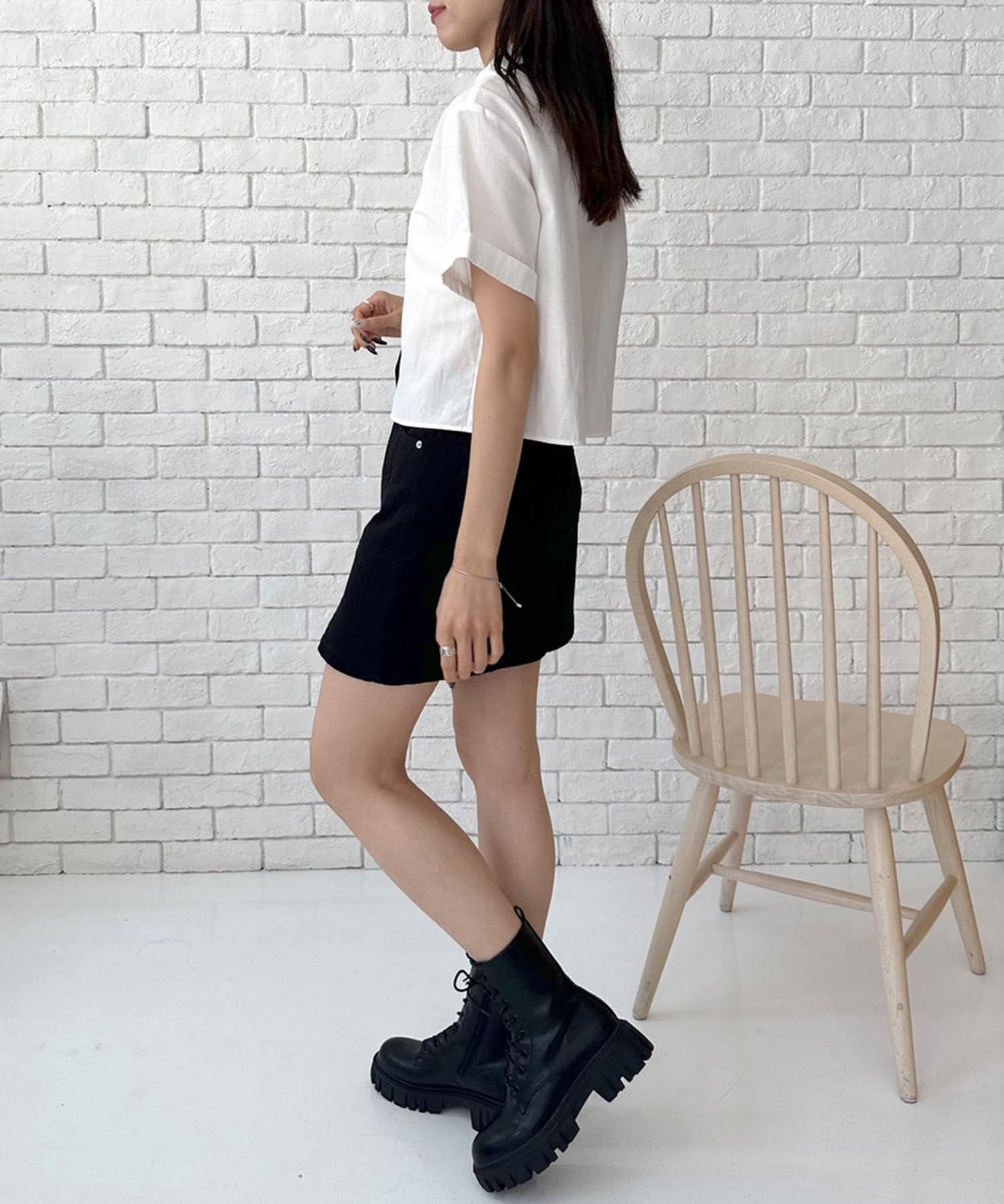 ・足元は厚底スニーカーやショートブーツが相性抜群。