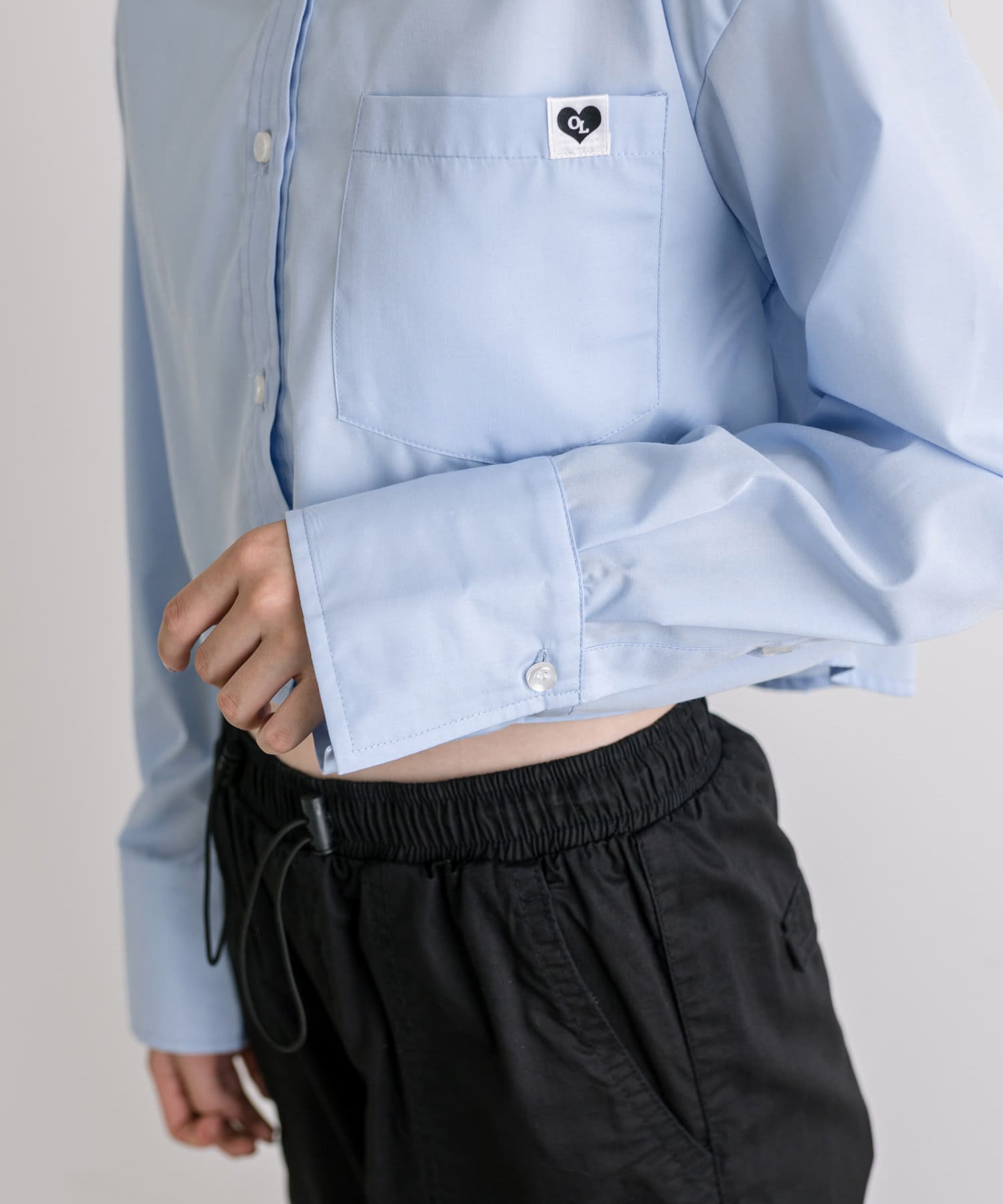 ハートタグ付きクロップドシャツ