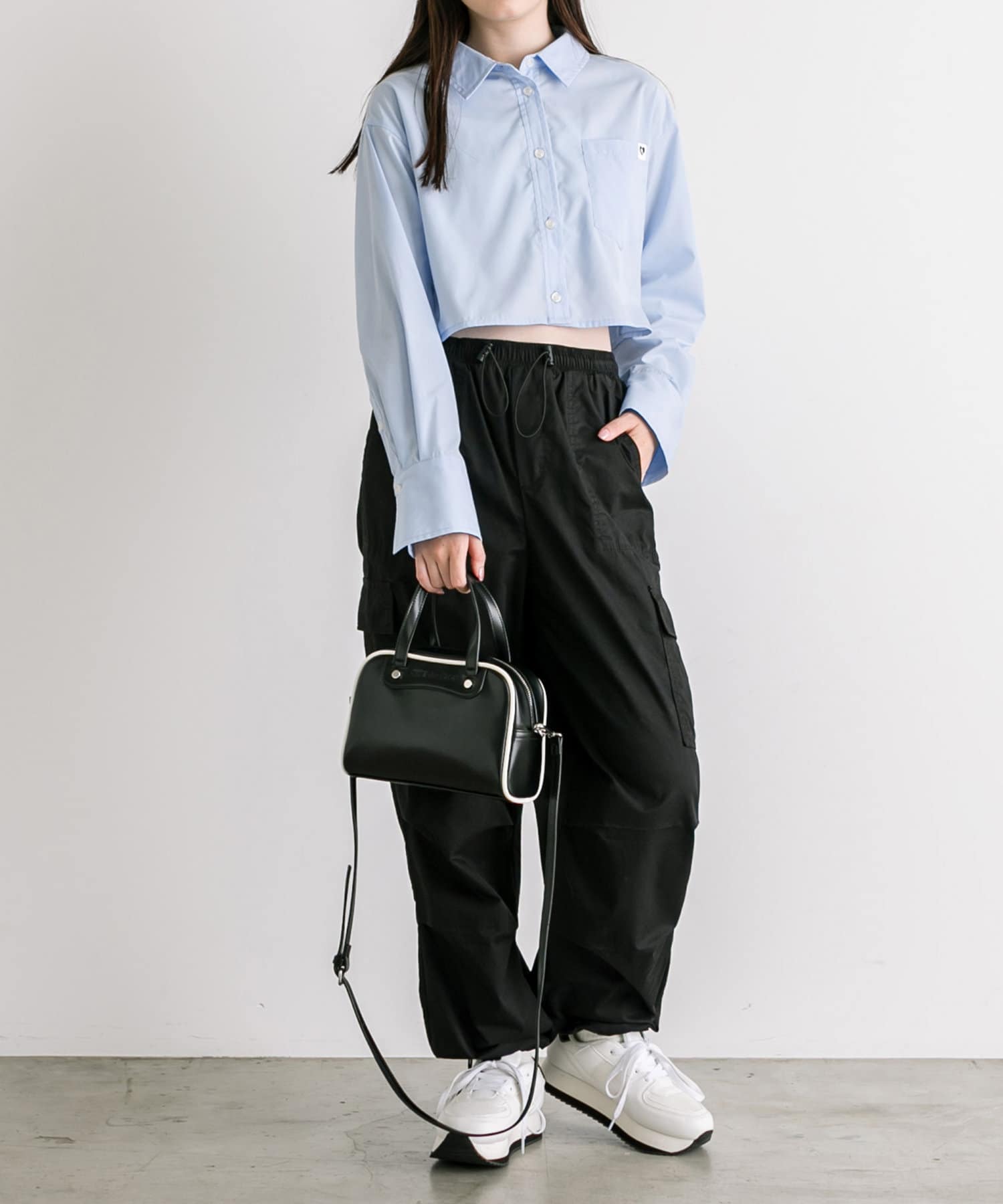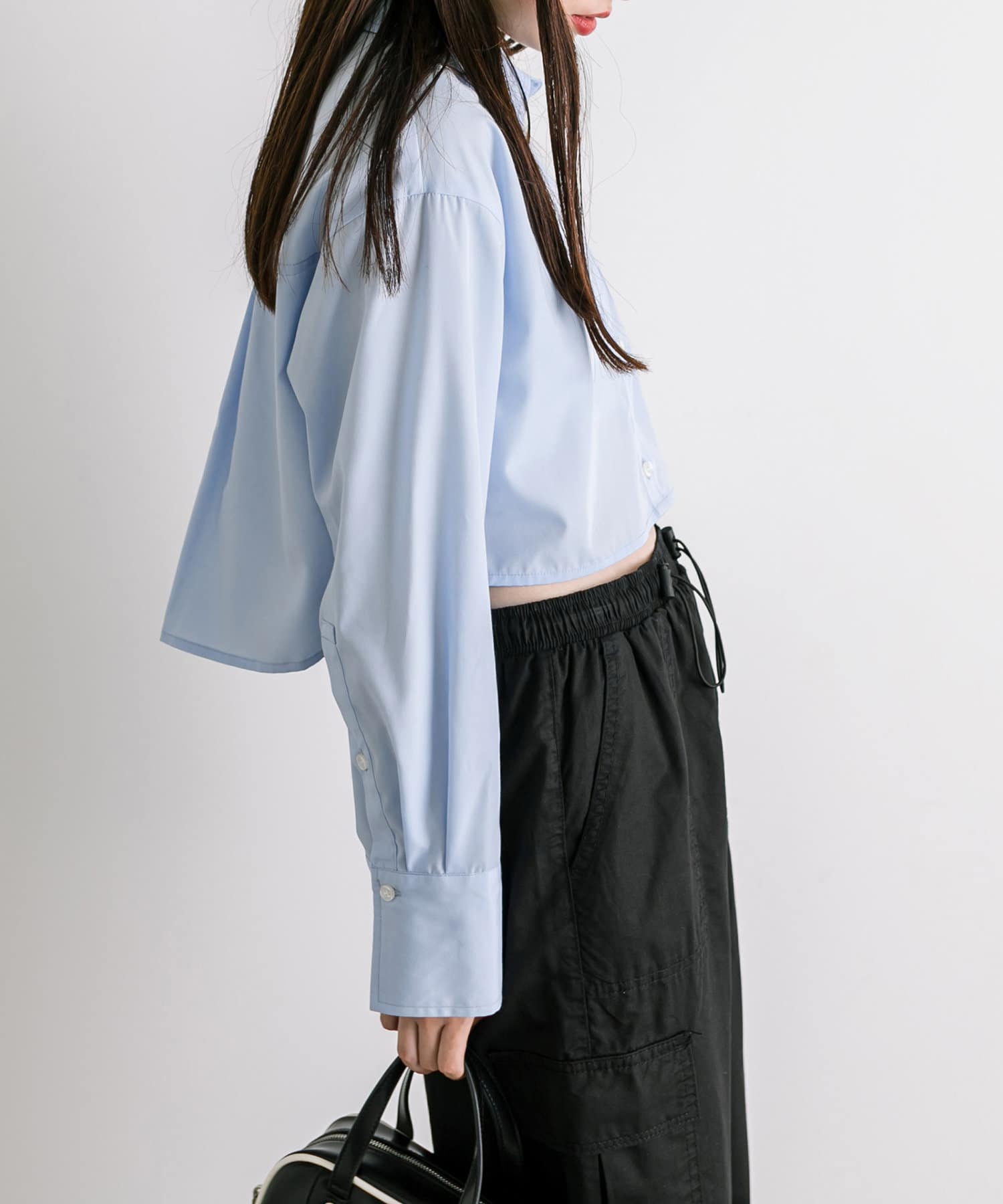 ・旬なレイヤードコーデに欠かせないクロップドシャツ。