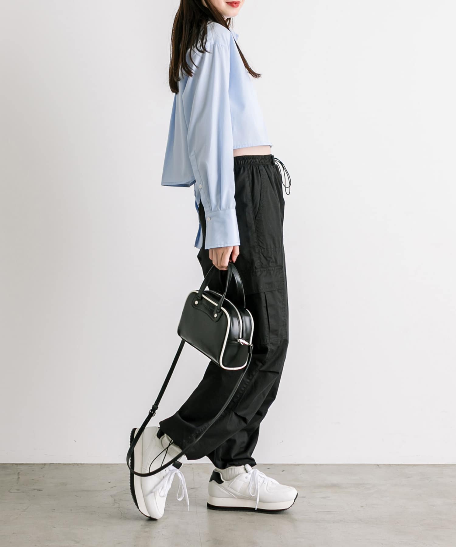 ・クロップド丈なのでミニスカートやパンツスタイルとも相性抜群。