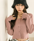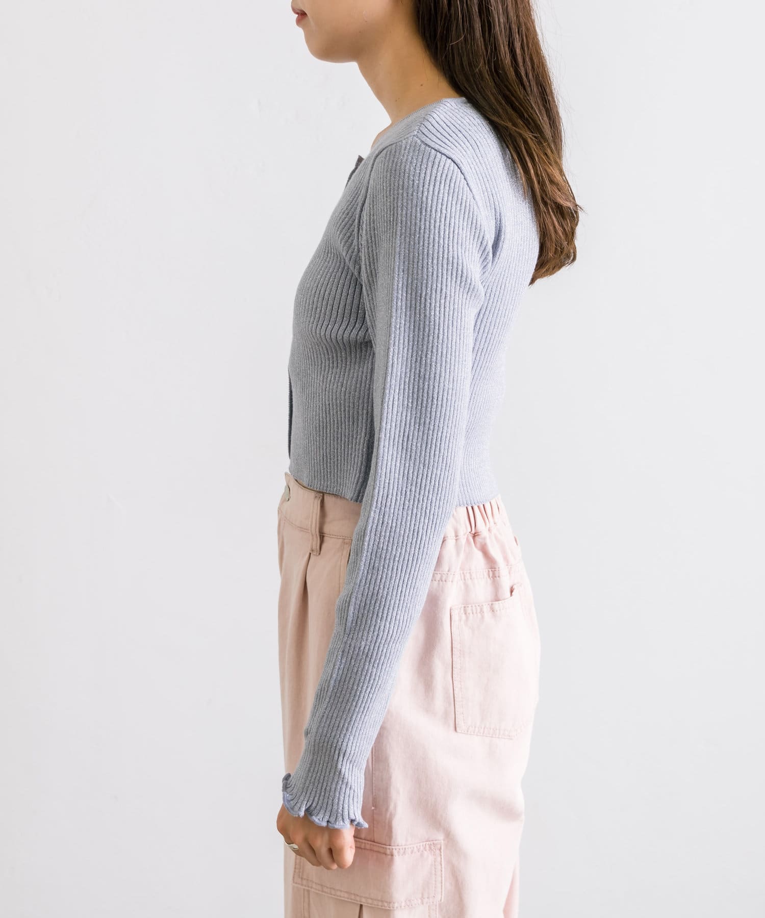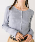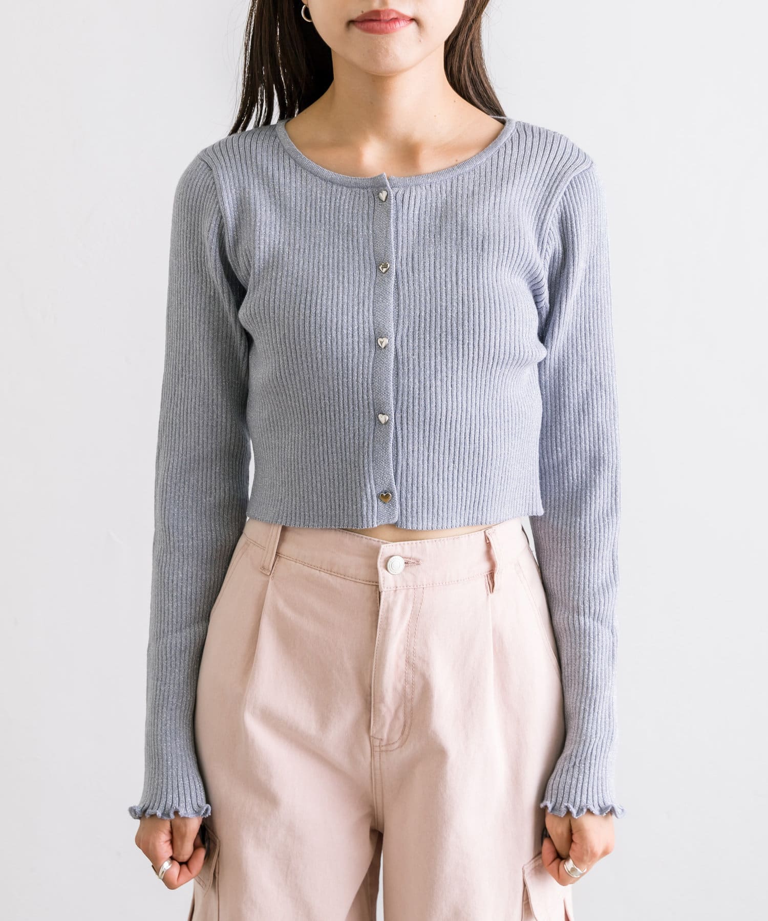 首元がラウンドなので1枚で着やすいカーディガンです。