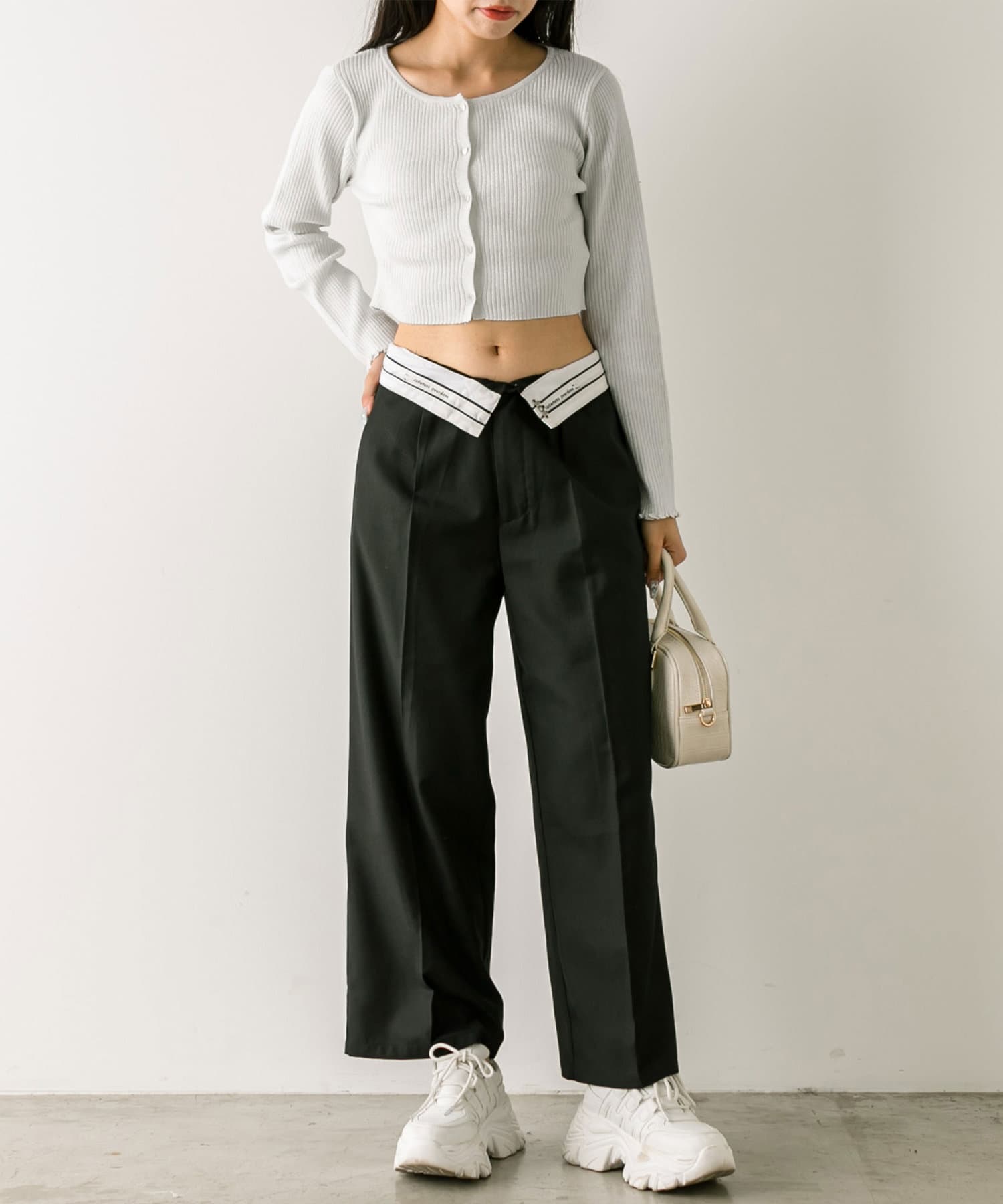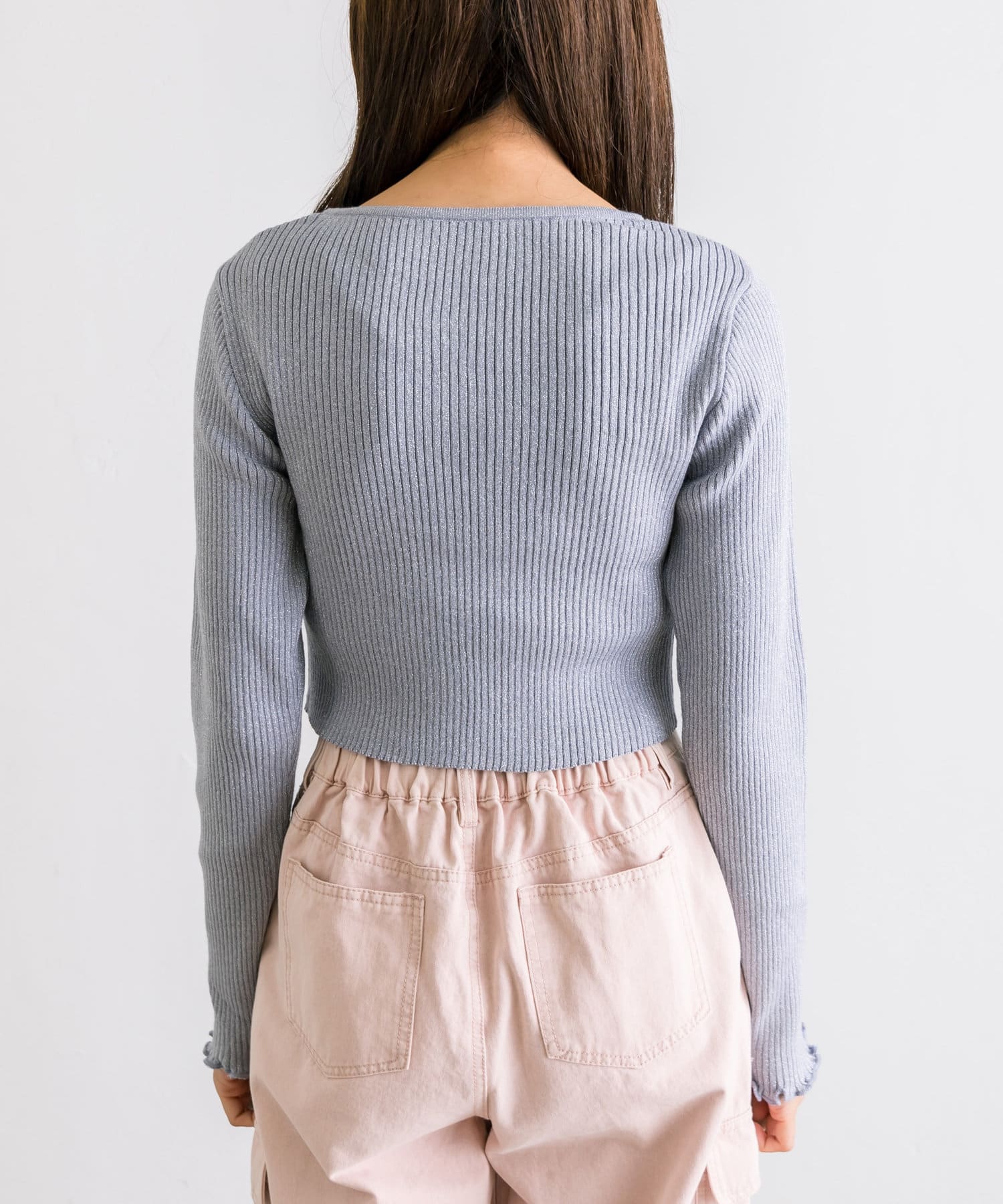 とにかくデザインが可愛いです。クロップド丈なのでスタイルよく見えます。ただし洗濯する時は脱水は2分以内にした方がいいです。5分くらい脱水したら少し形が歪んたりほつれた箇所がありました。