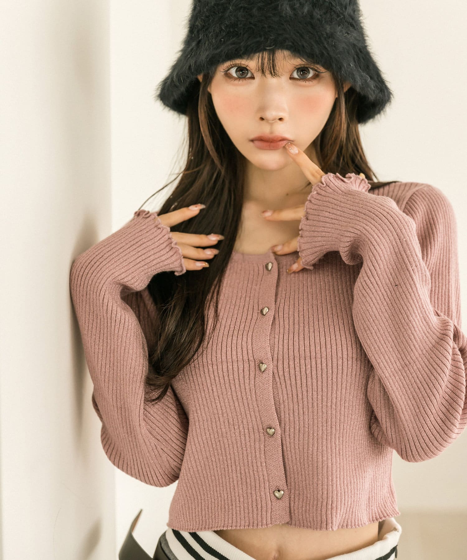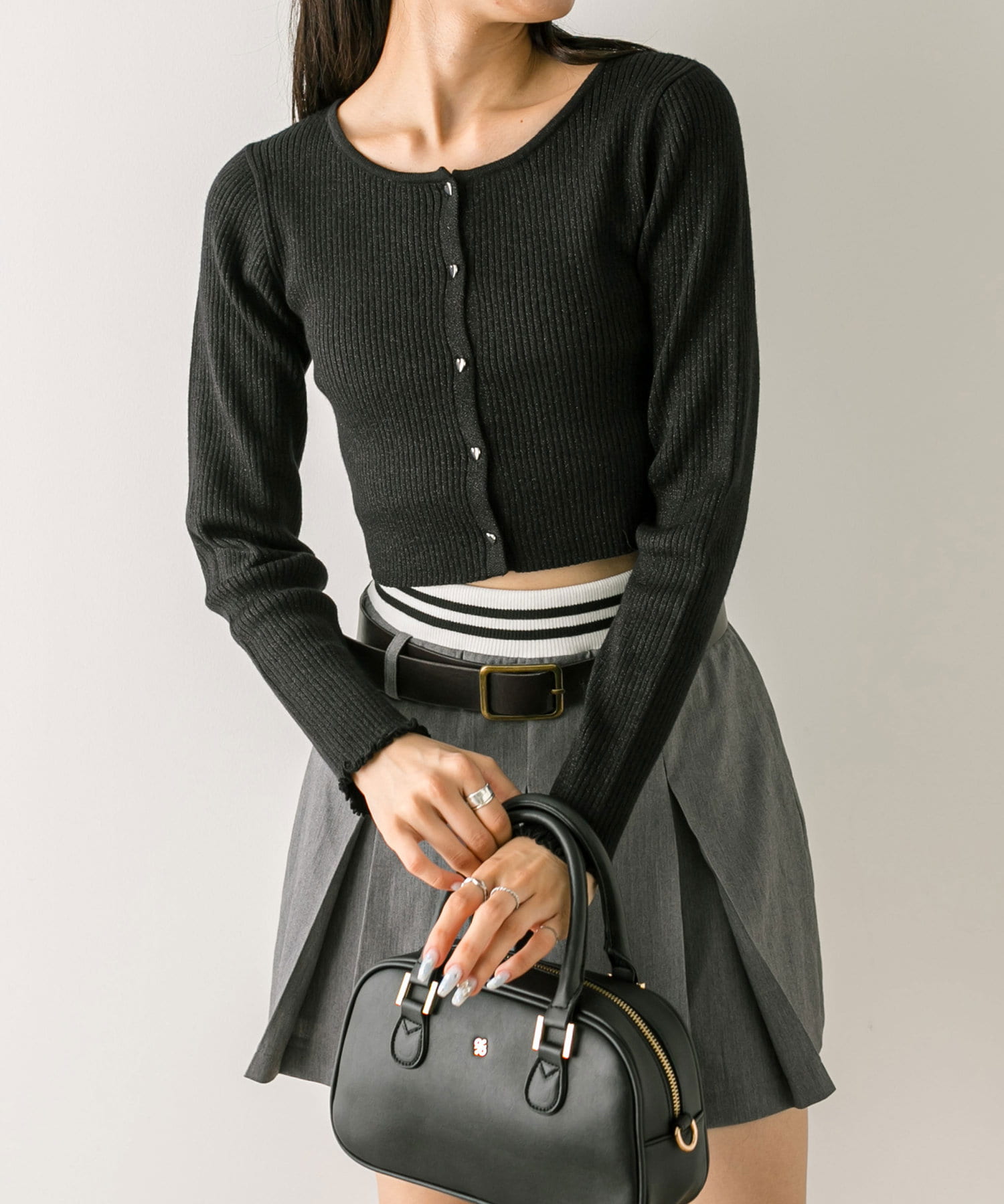 • OLIVE des OLIVE(オリーブ デ オリーブ) ラメkiraハートボタンカーディガン