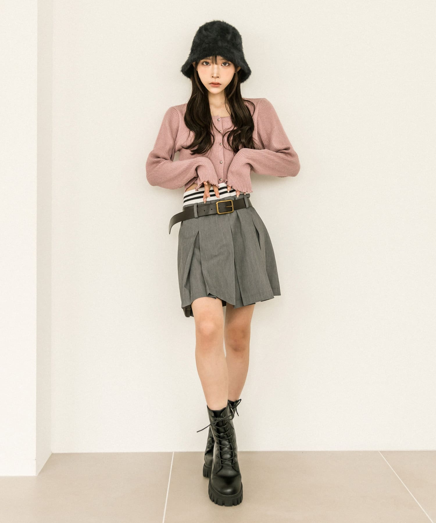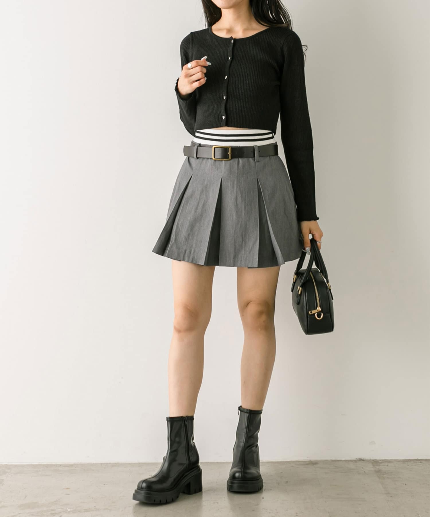 ・ガーリーに着たい方はプリーツミニスカートがおすすめ。