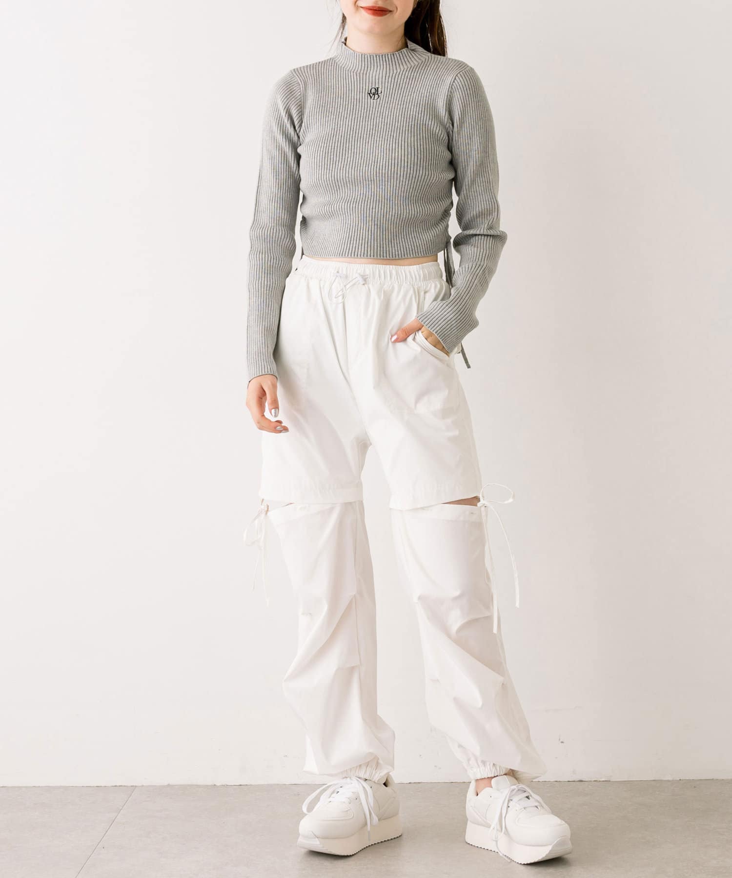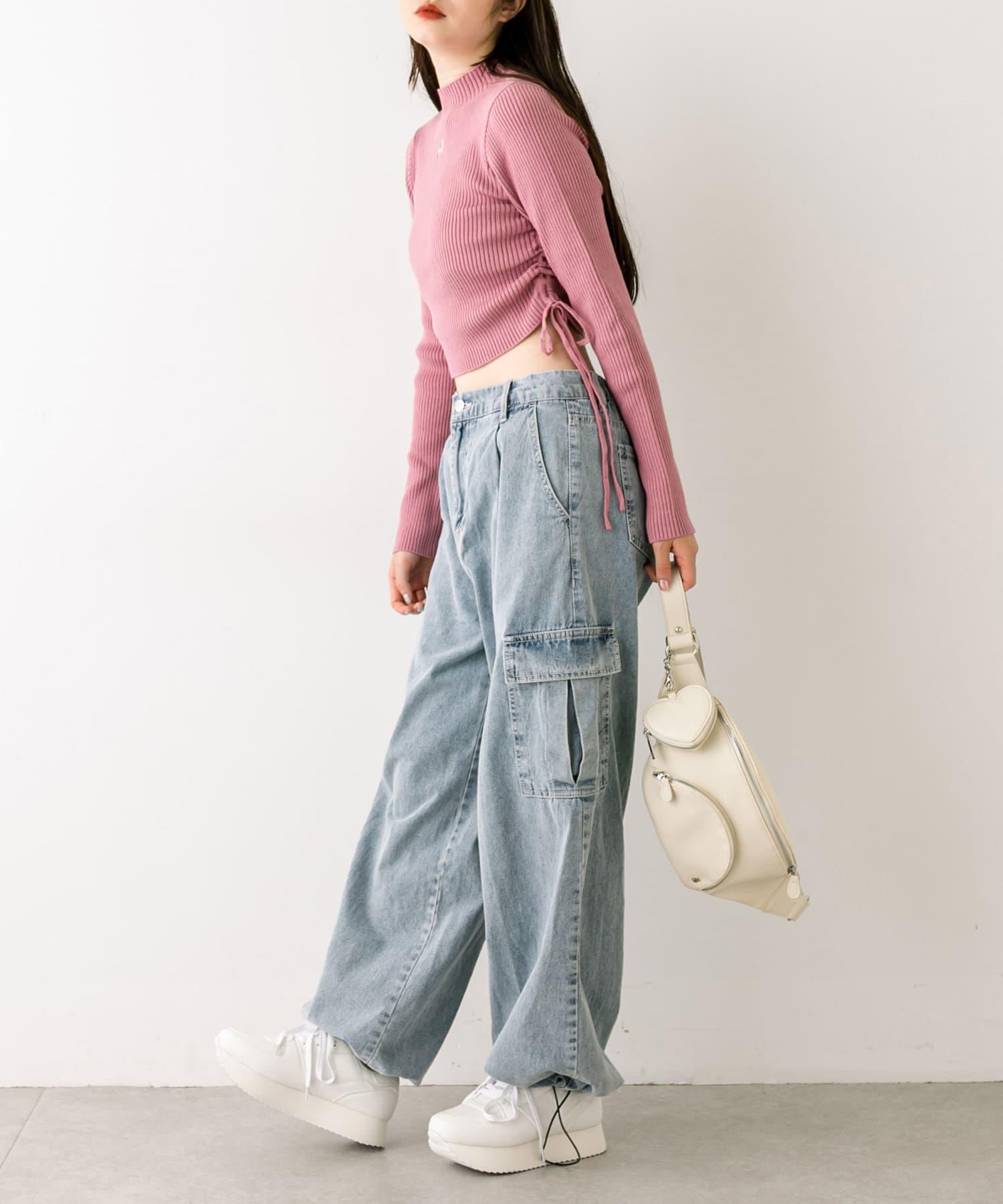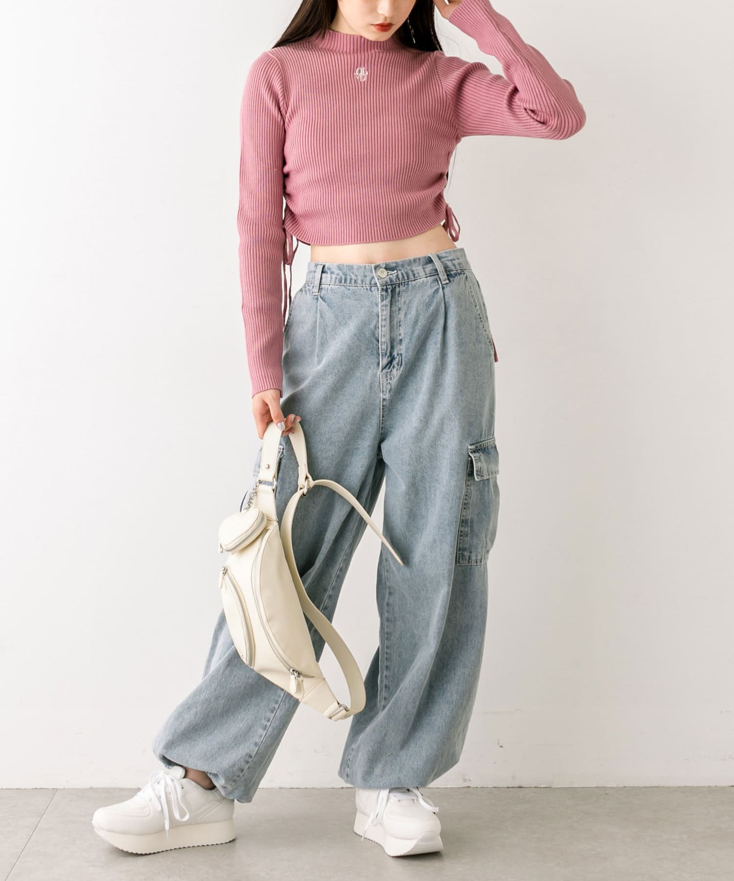 ・タイトめなのでボリュームのあるワイドパンツやカーゴパンツと相性抜群。