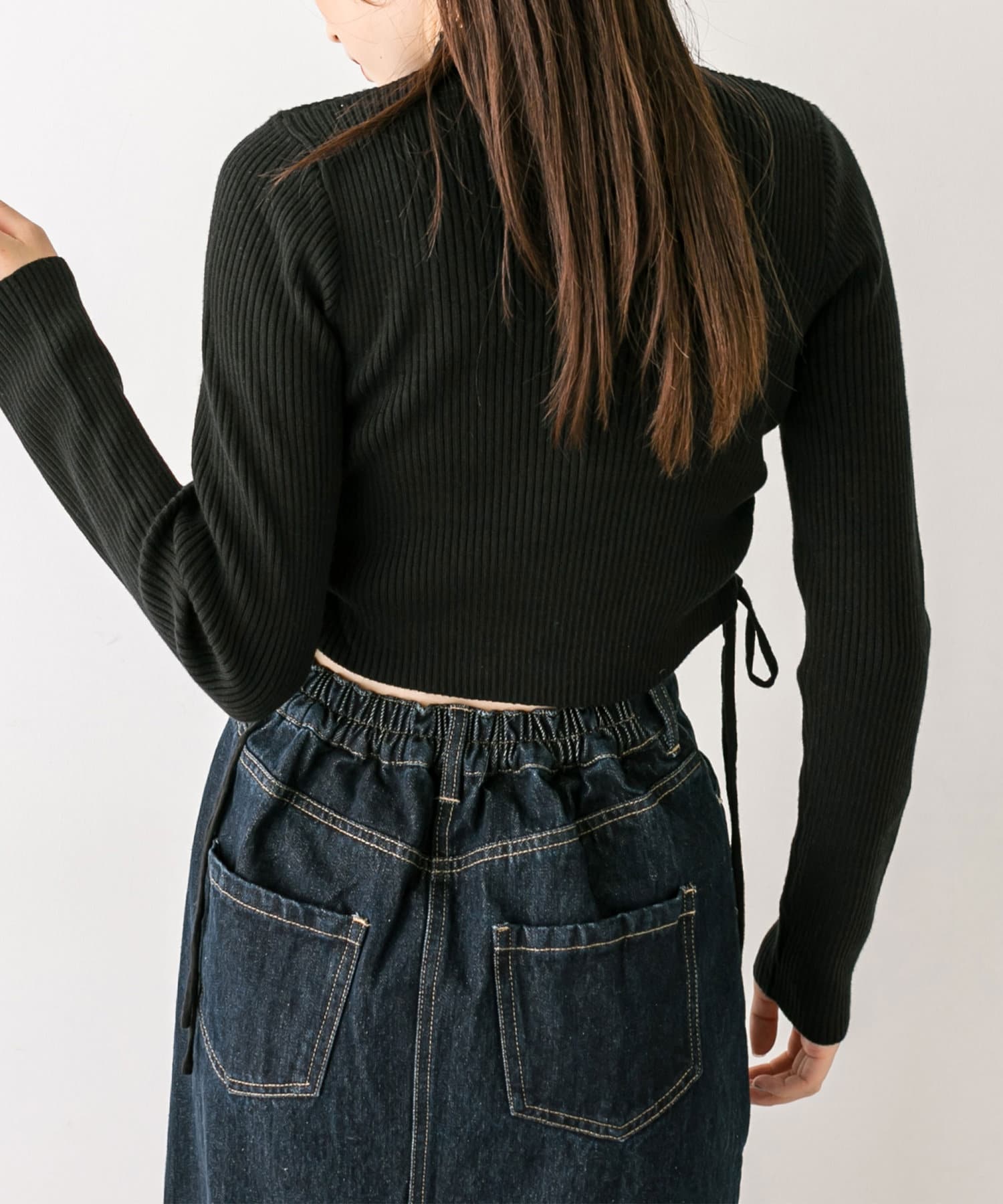 ・ドロストは調節可能。肌見せしたい方は強めに絞ったり、肌見せを押さえたい方は下げて着ていただけます。