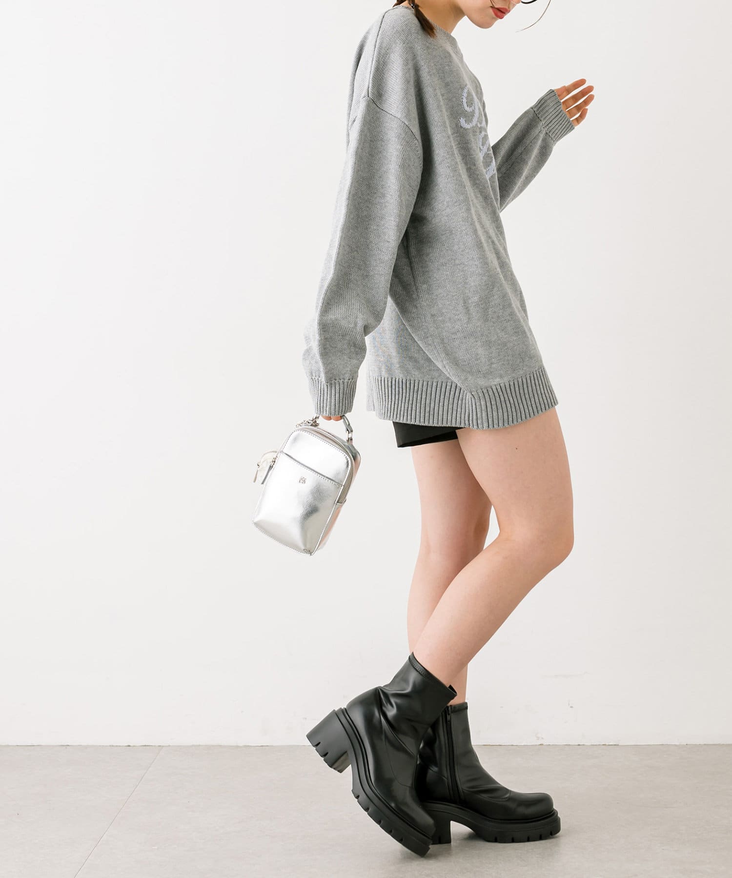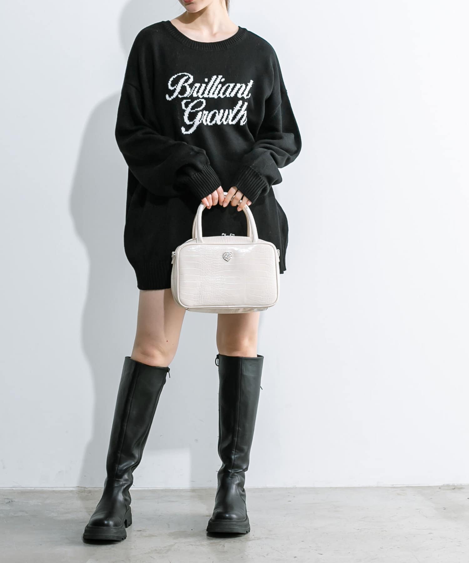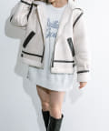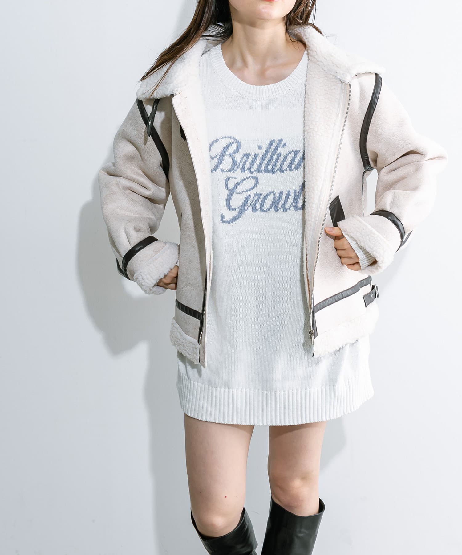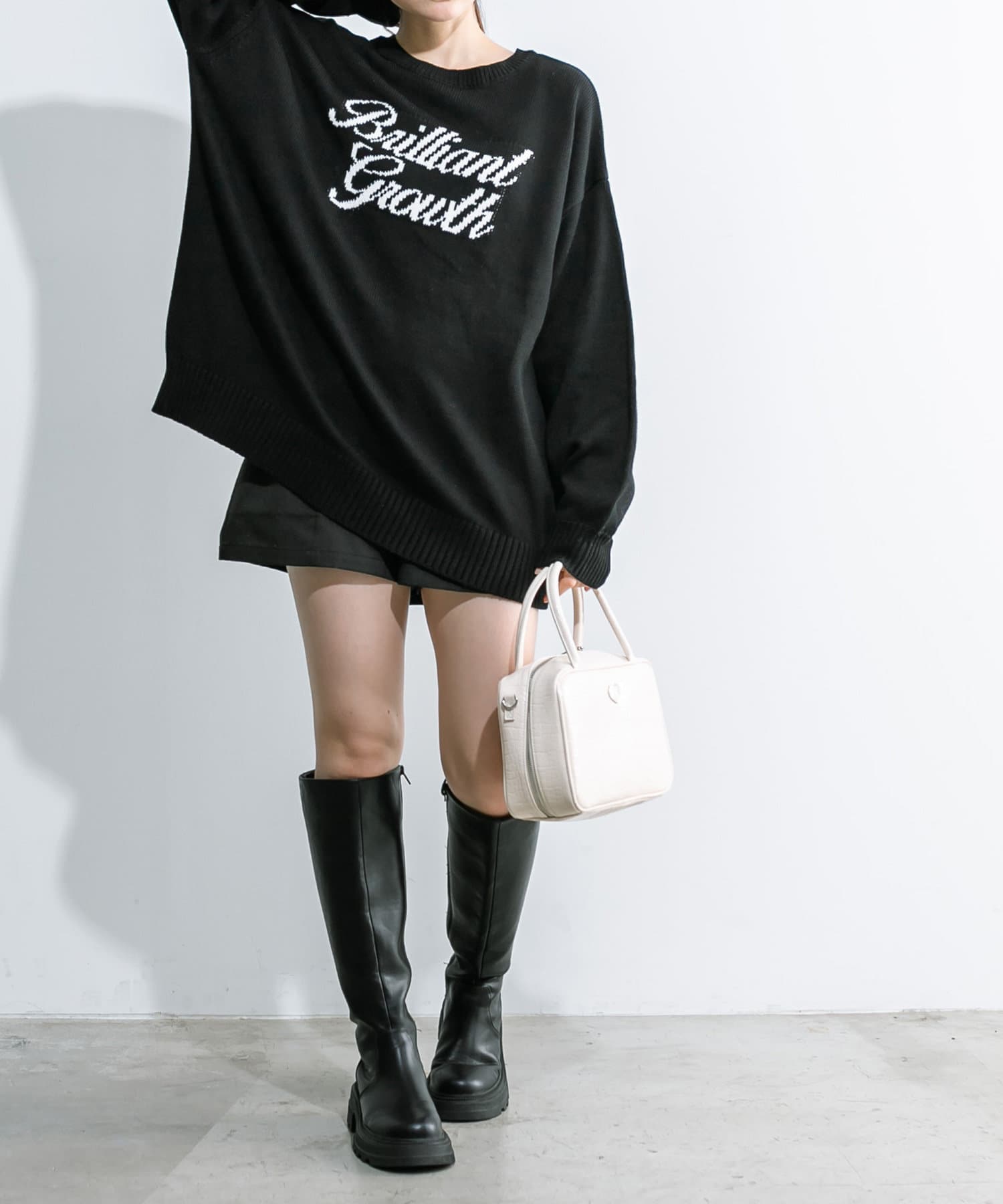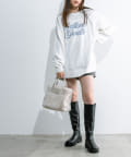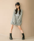 ・ミニボトムを合わせてワンピース風の着こなしがおすすめ。
